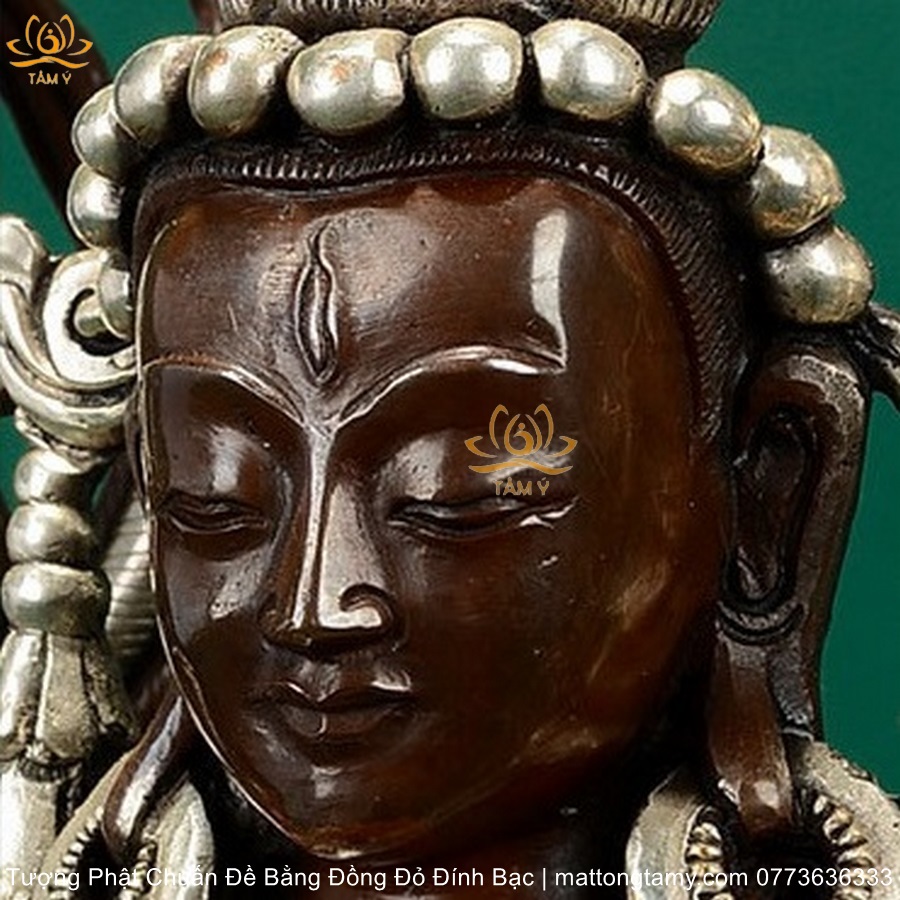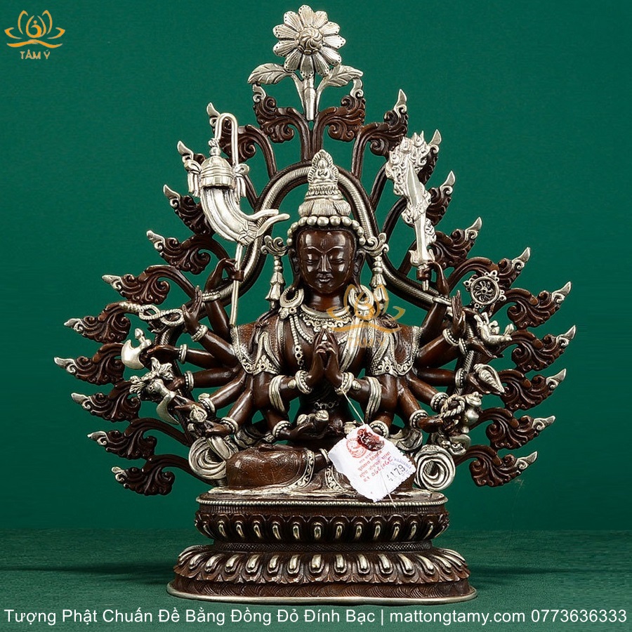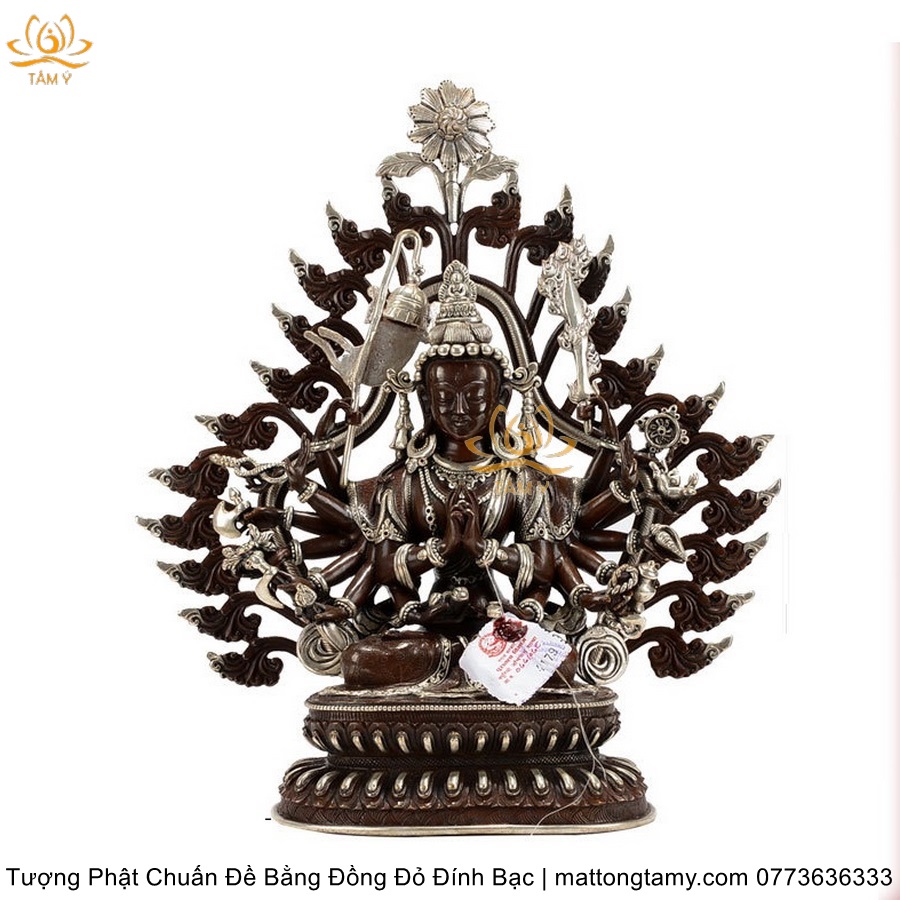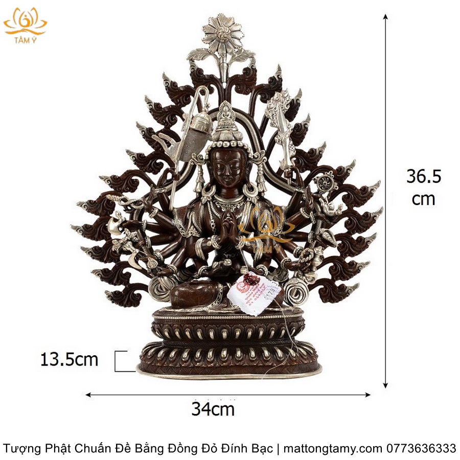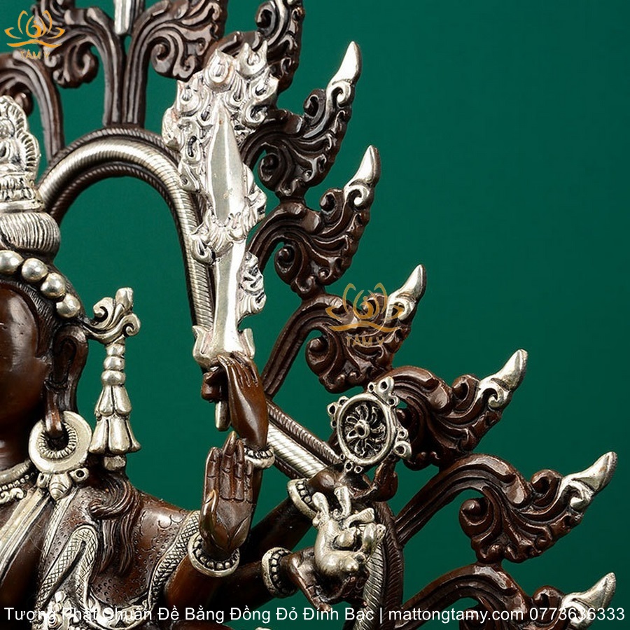 |Cao 36.5cm| Tượng Phật Chuẩn Đề Bằng Đồng Đỏ Nguyên Chất Có Đính Bạc, Thiết Kế Sang Trọng TP98