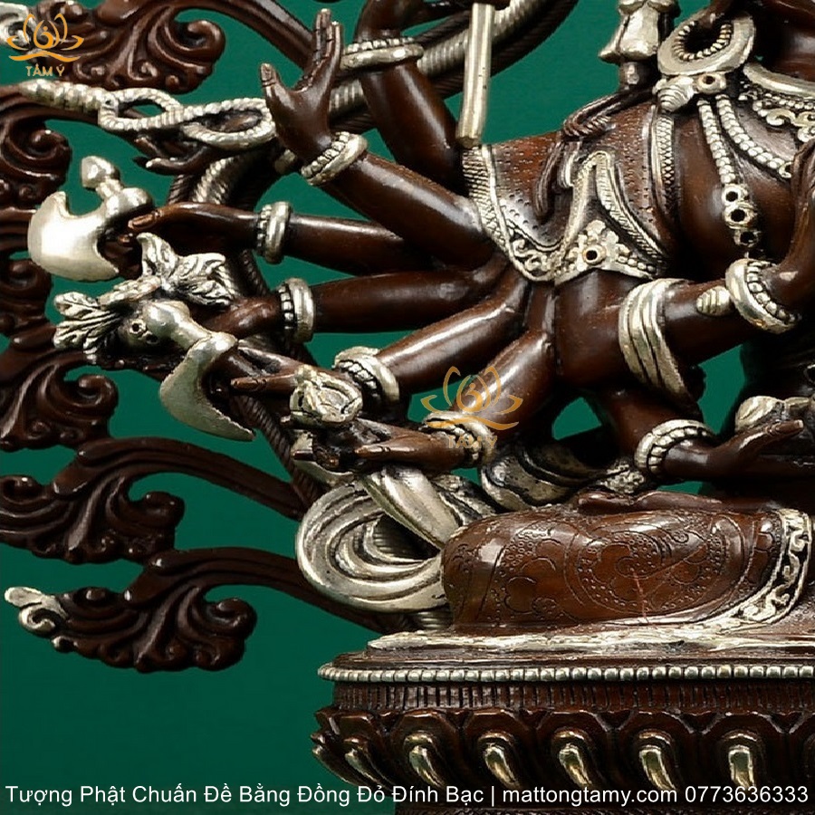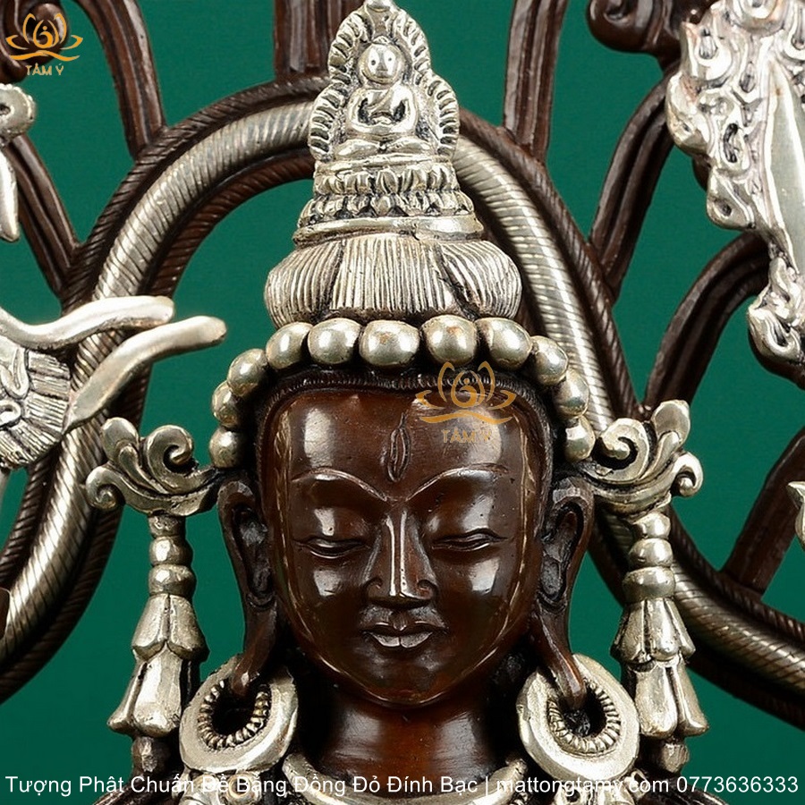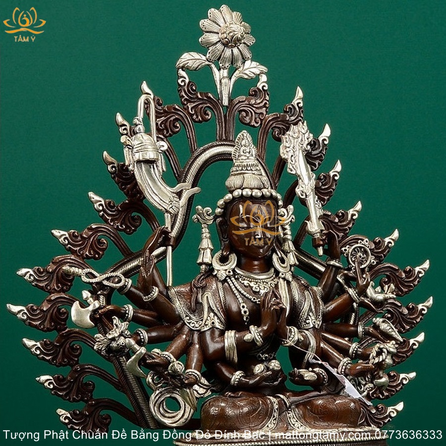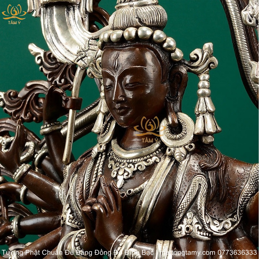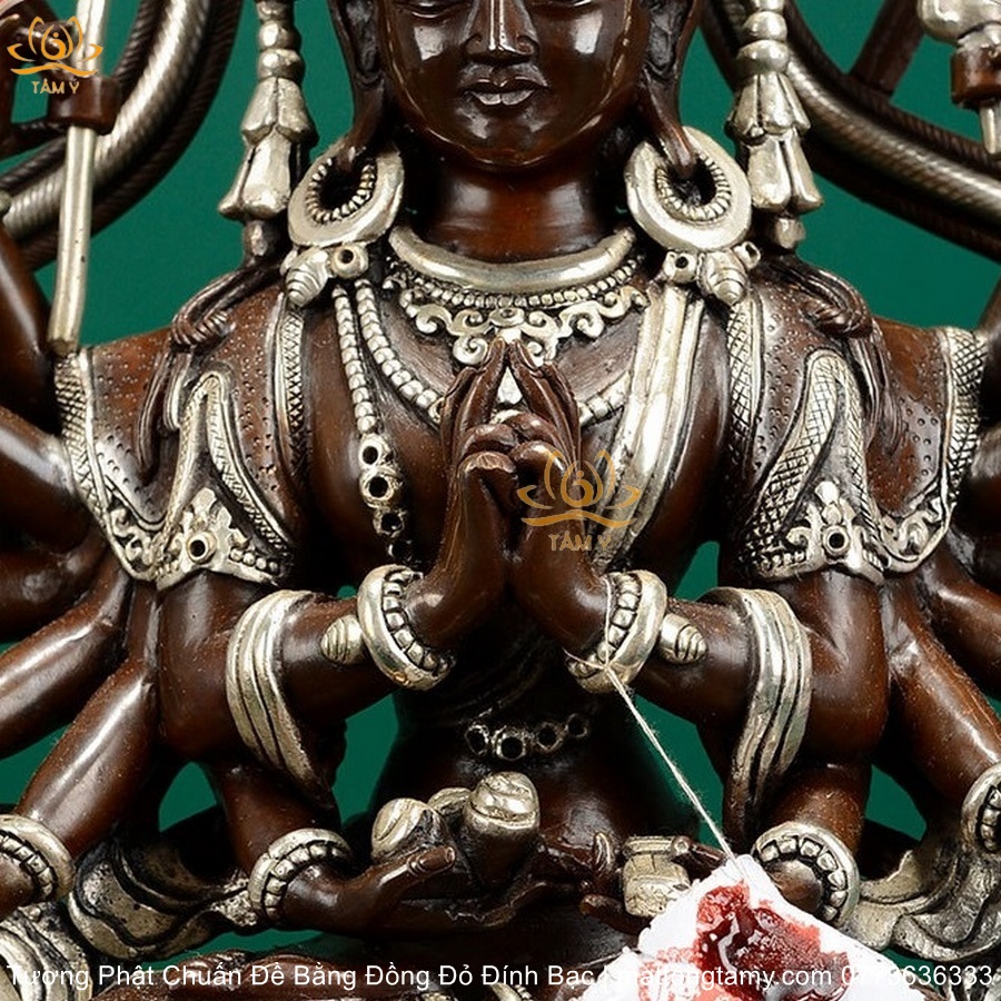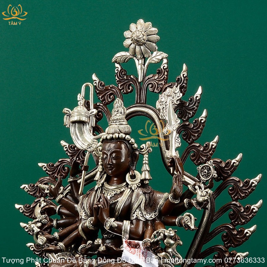 |Cao 36.5cm| Tượng Phật Chuẩn Đề Bằng Đồng Đỏ Nguyên Chất Có Đính Bạc, Thiết Kế Sang Trọng TP98