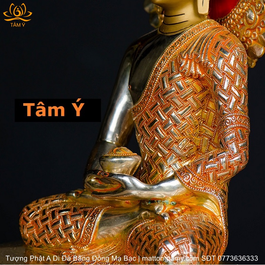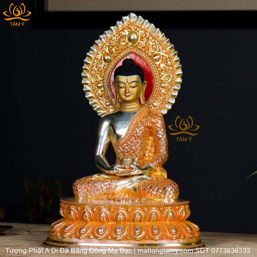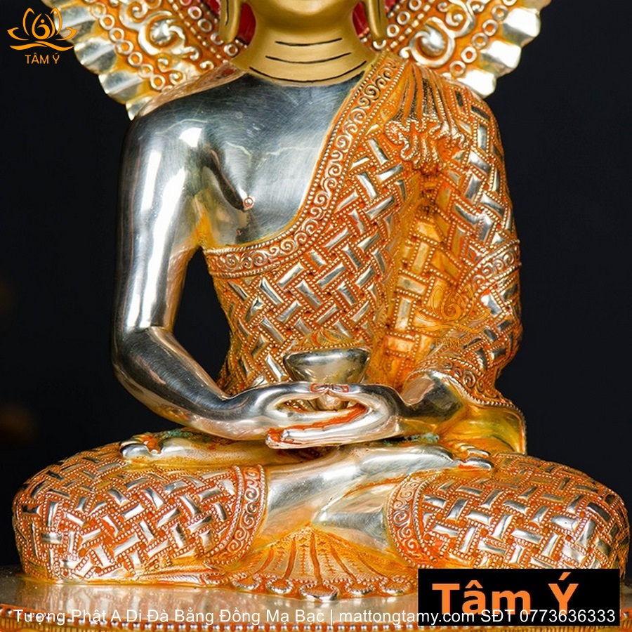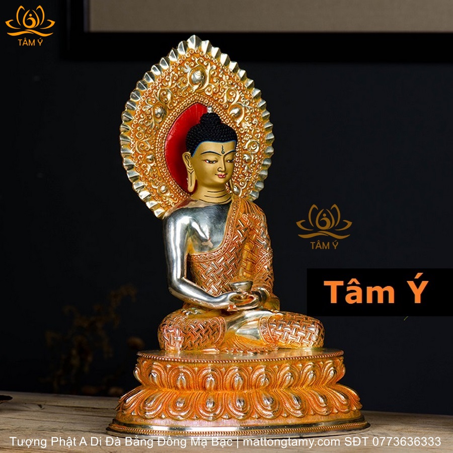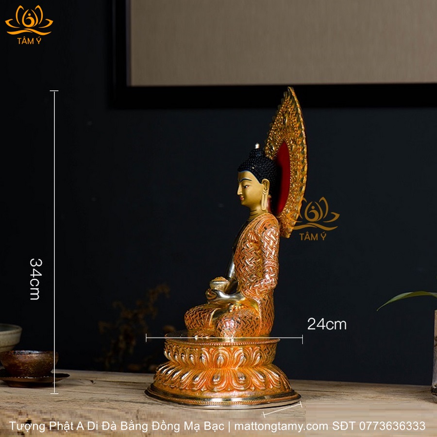 |Cao 34cm| Tượng Phật A Di Đà Bằng Đồng Nguyên Chất Mạ Bạc Thiết Kế Sang Trọng TP94