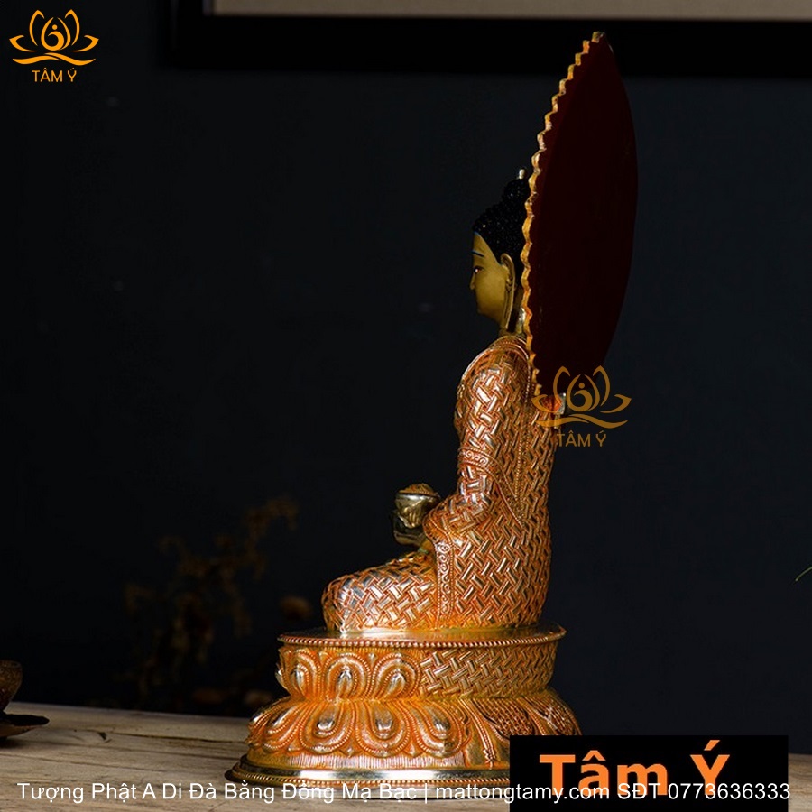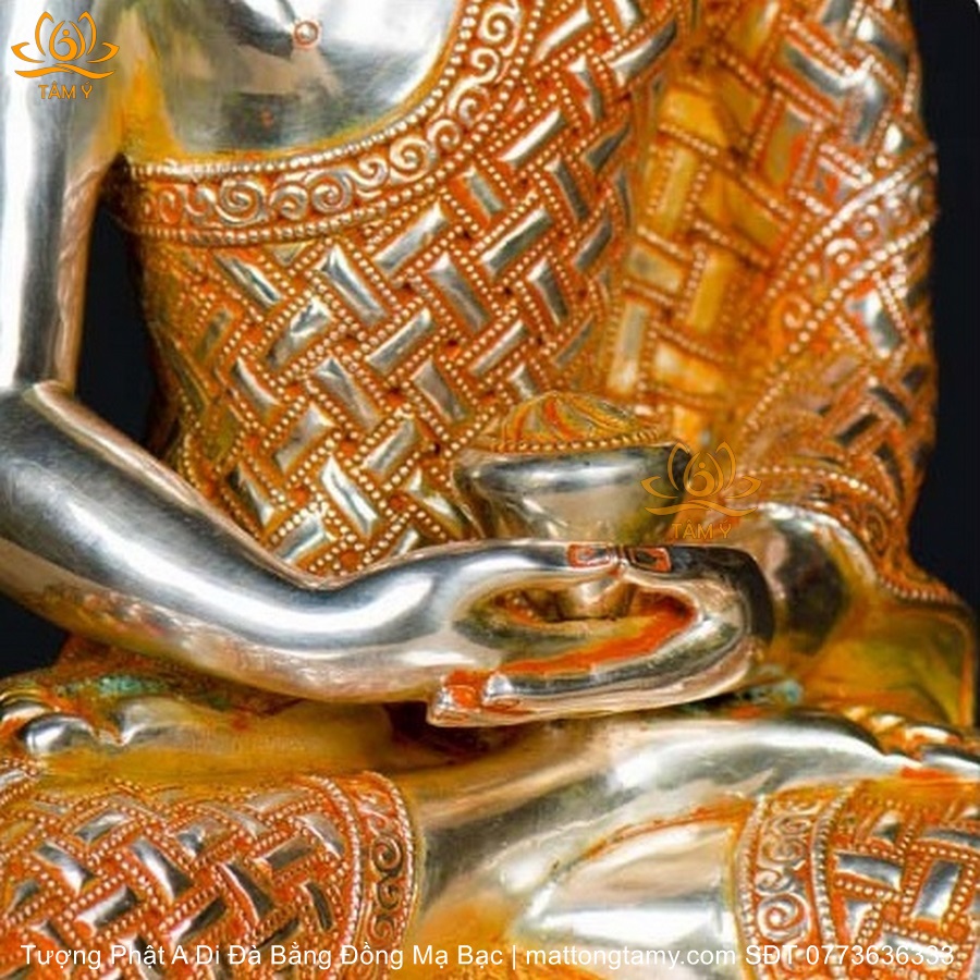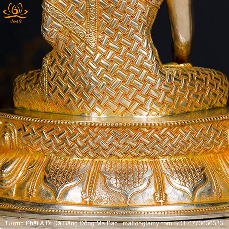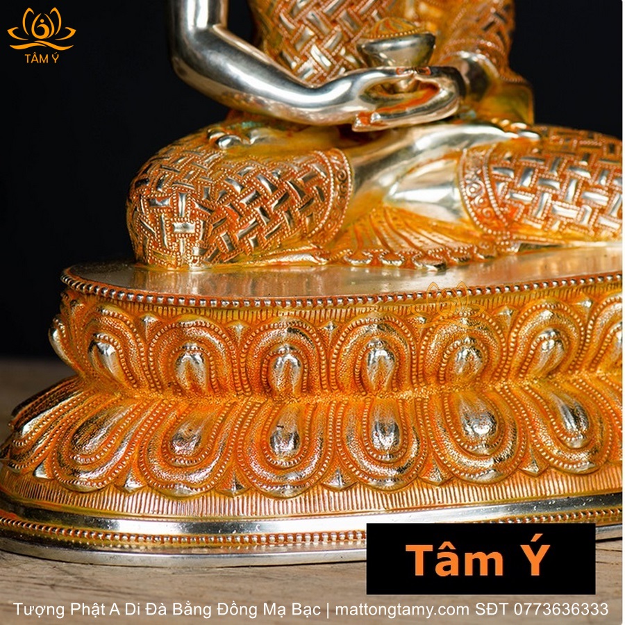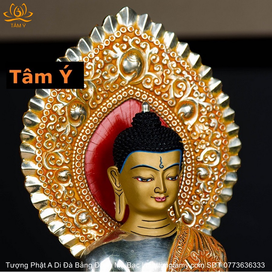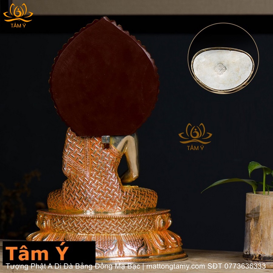 |Cao 34cm| Tượng Phật A Di Đà Bằng Đồng Nguyên Chất Mạ Bạc Thiết Kế Sang Trọng TP94