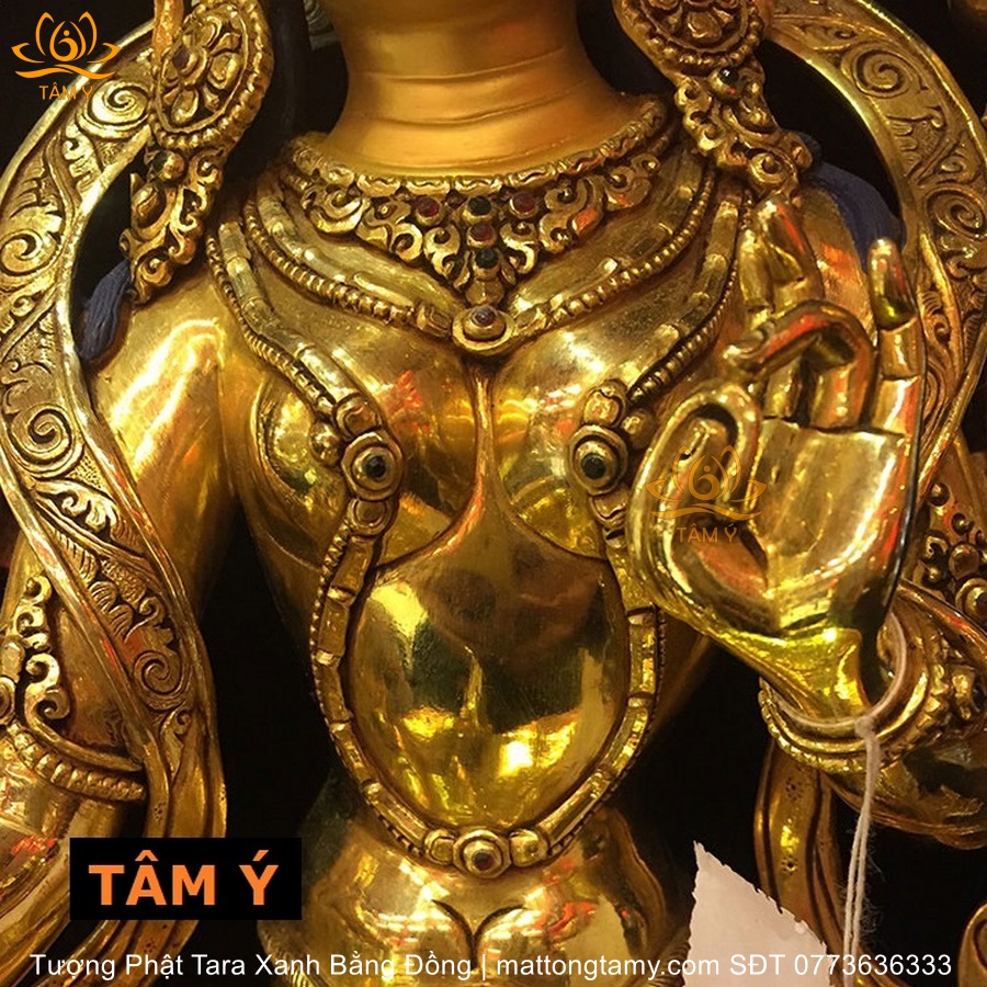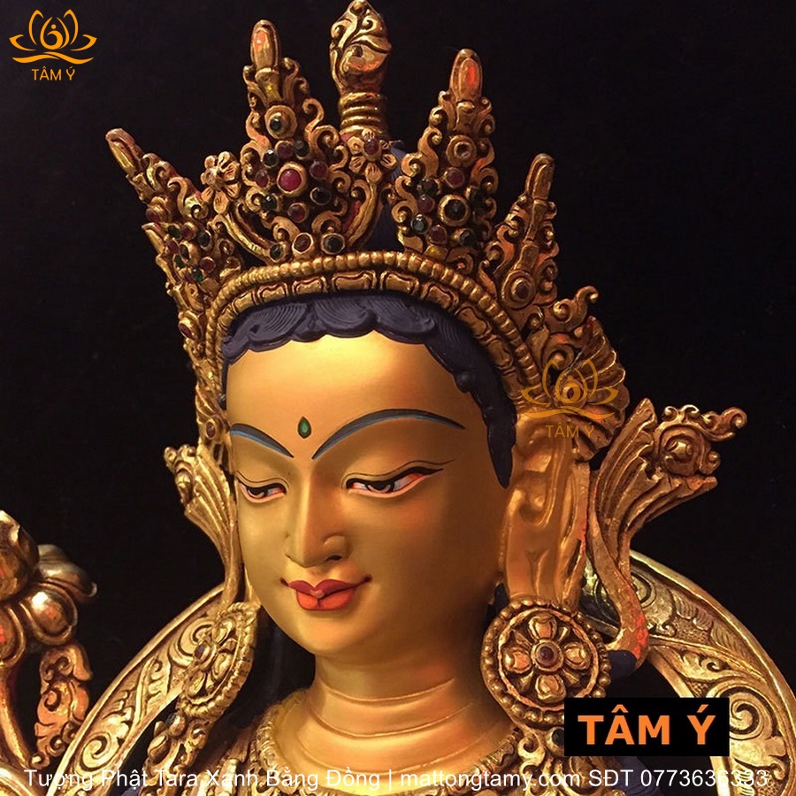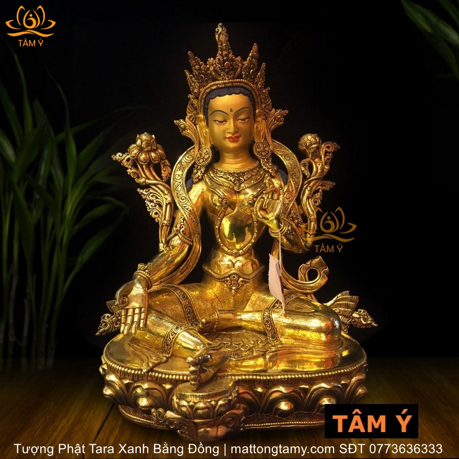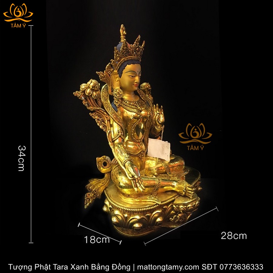 |Cao 34cm| Tượng Phật Tara Xanh Bằng Đồng Nguyên Chất TP39