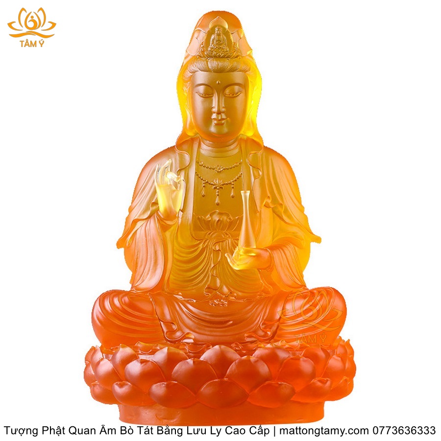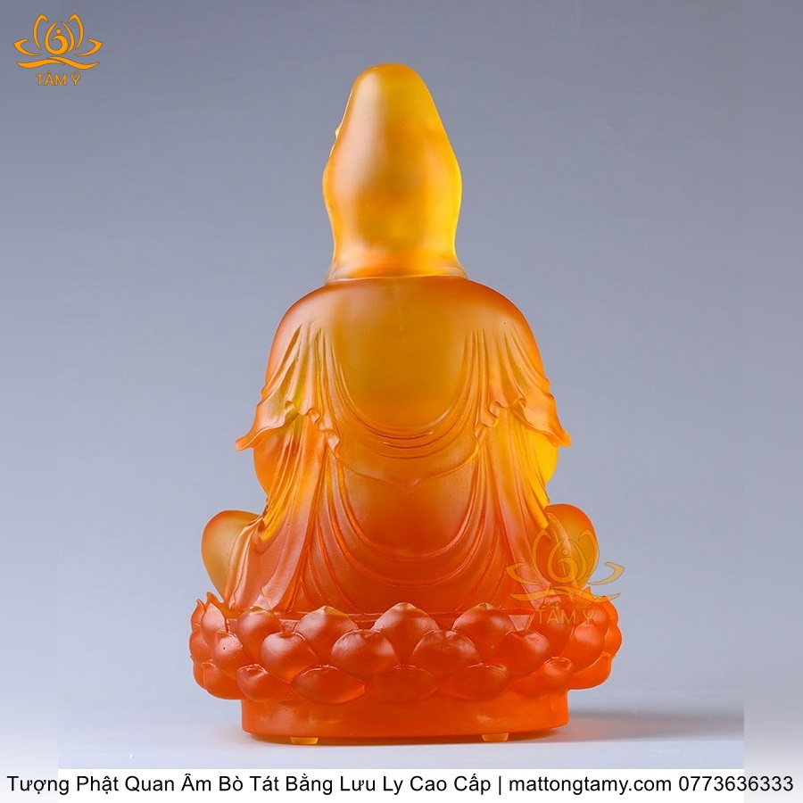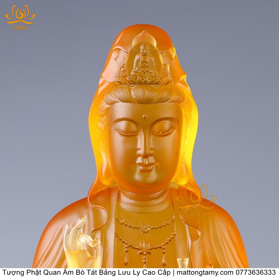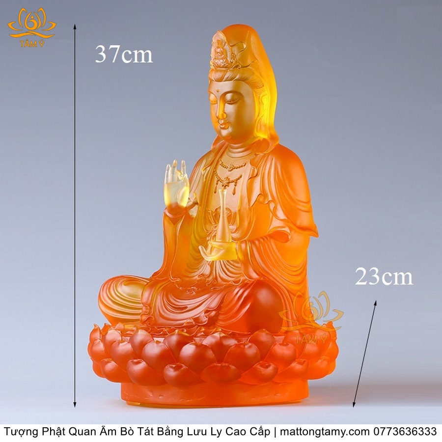 |Cao 37cm| Tượng Phật Quan Âm Bồ Tát Bằng Lưu Ly Cao Cấp Màu Hổ Phách Thiết Kế Sang Trọng TP111