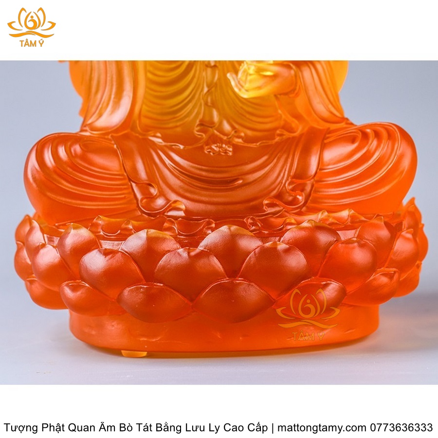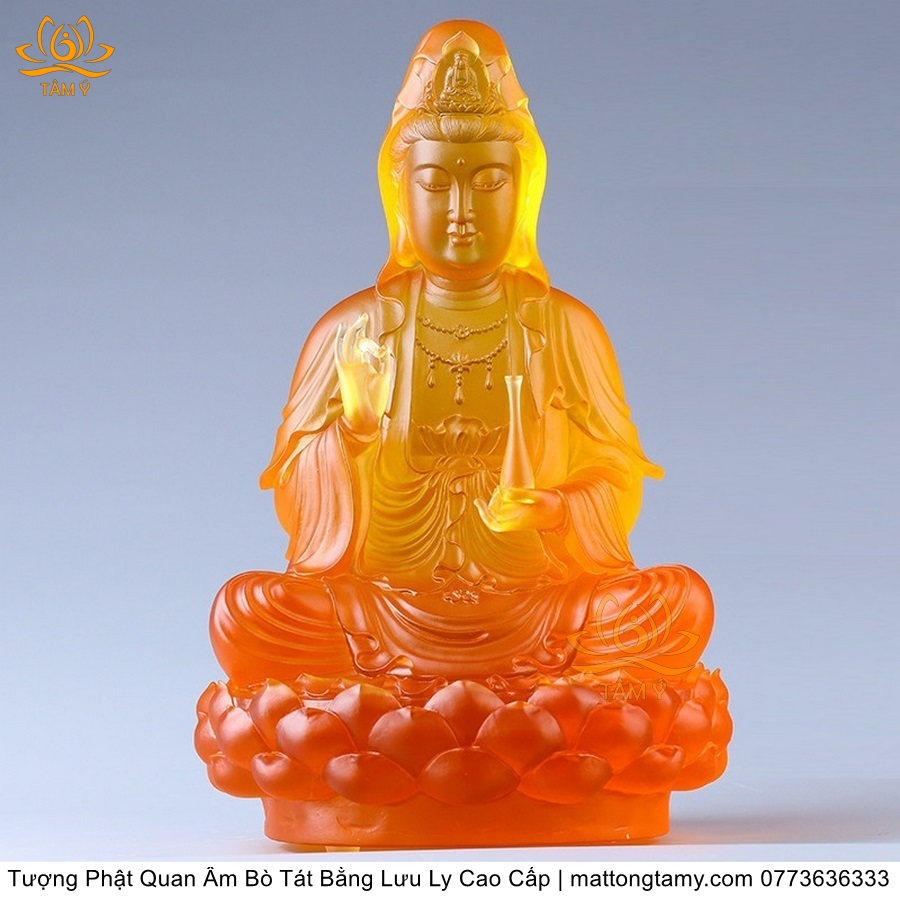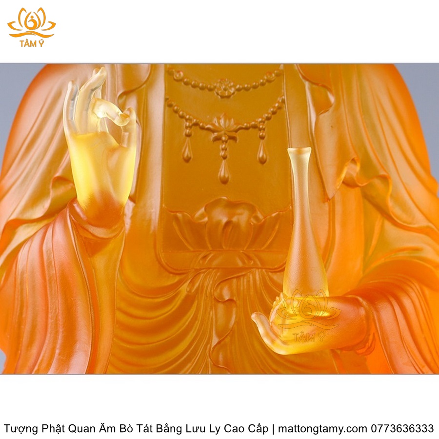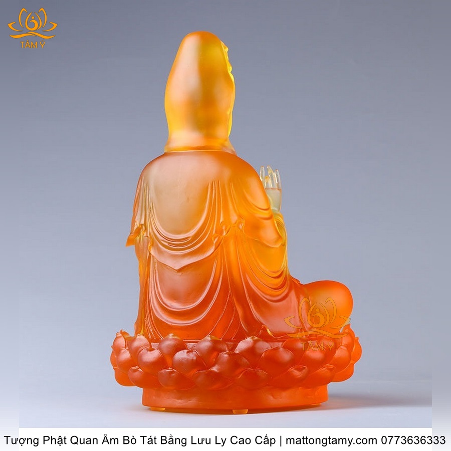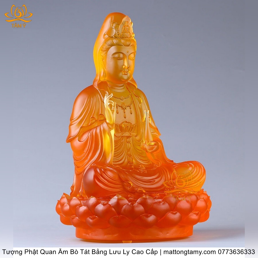 |Cao 37cm| Tượng Phật Quan Âm Bồ Tát Bằng Lưu Ly Cao Cấp Màu Hổ Phách Thiết Kế Sang Trọng TP111