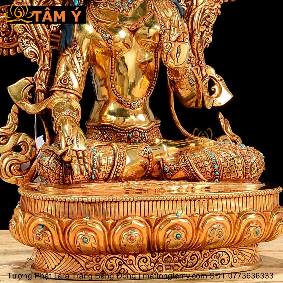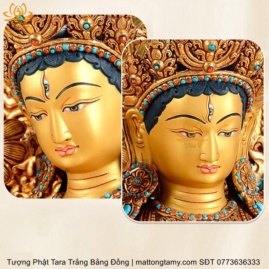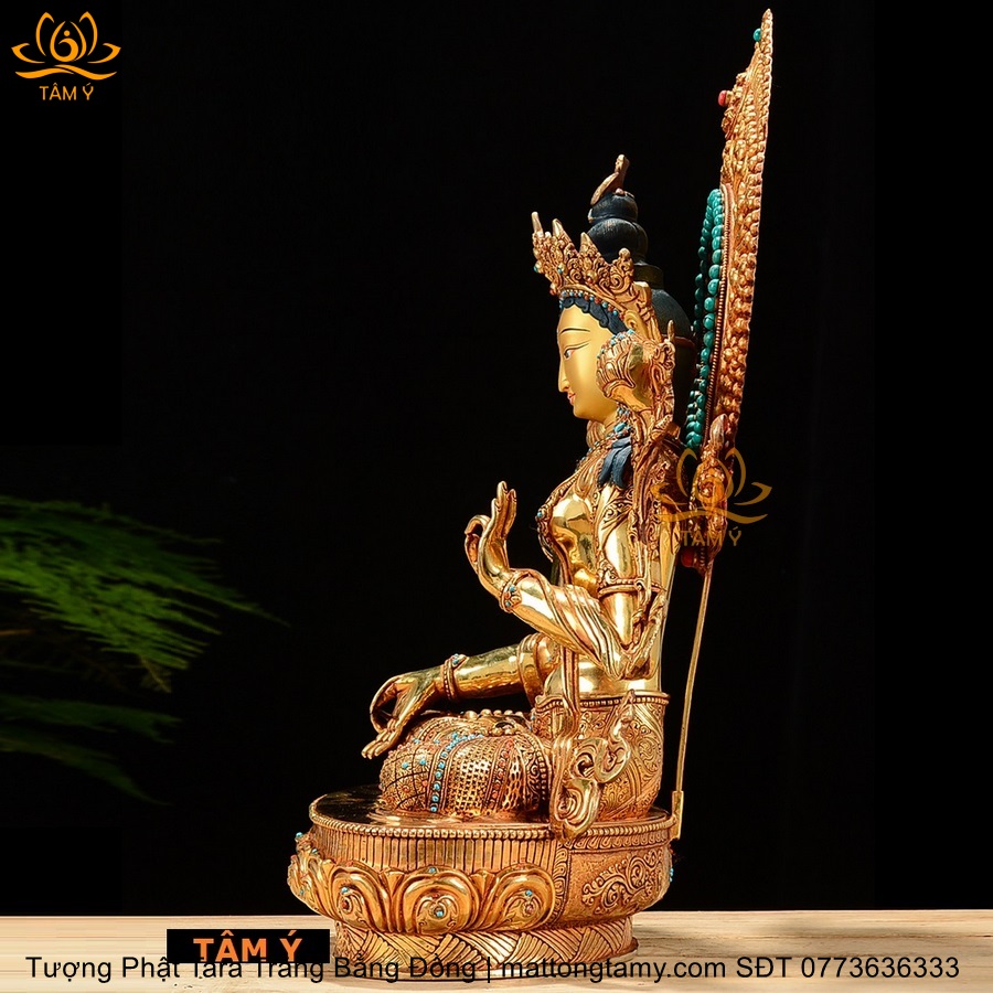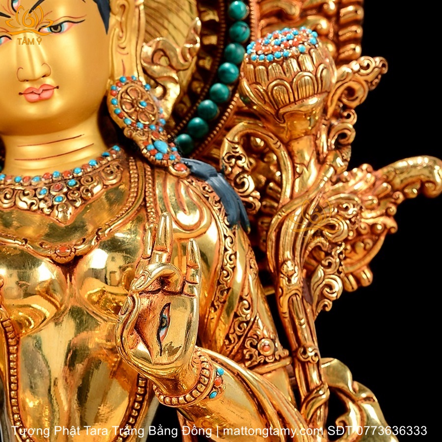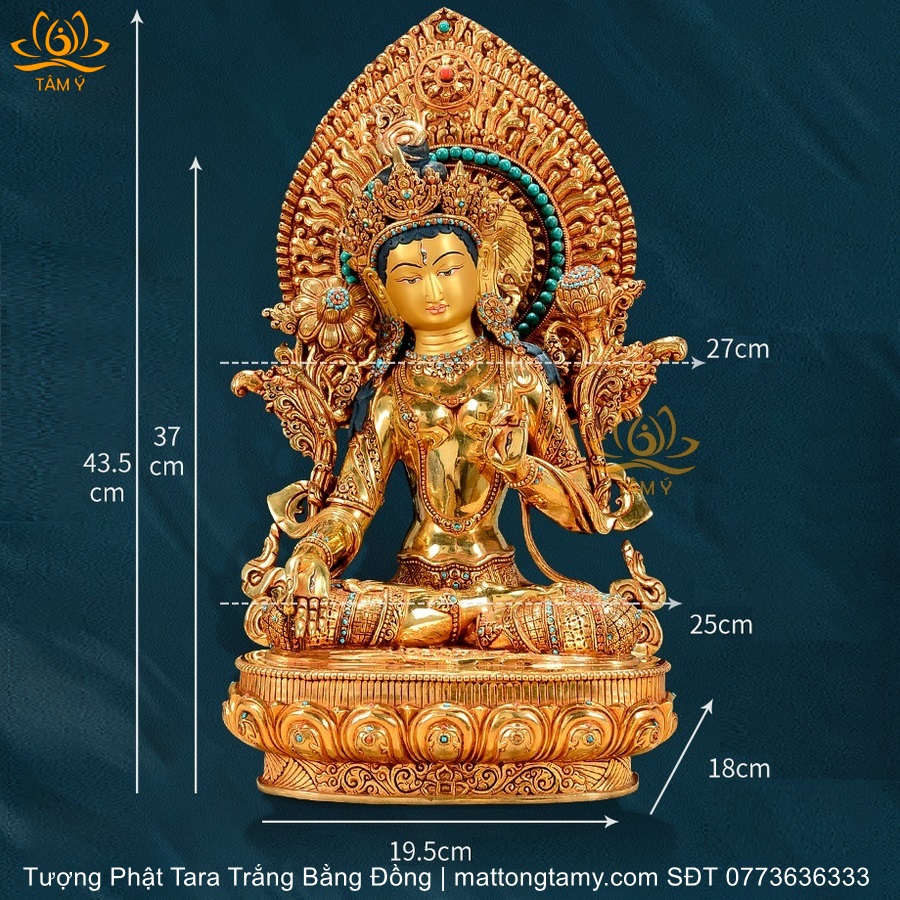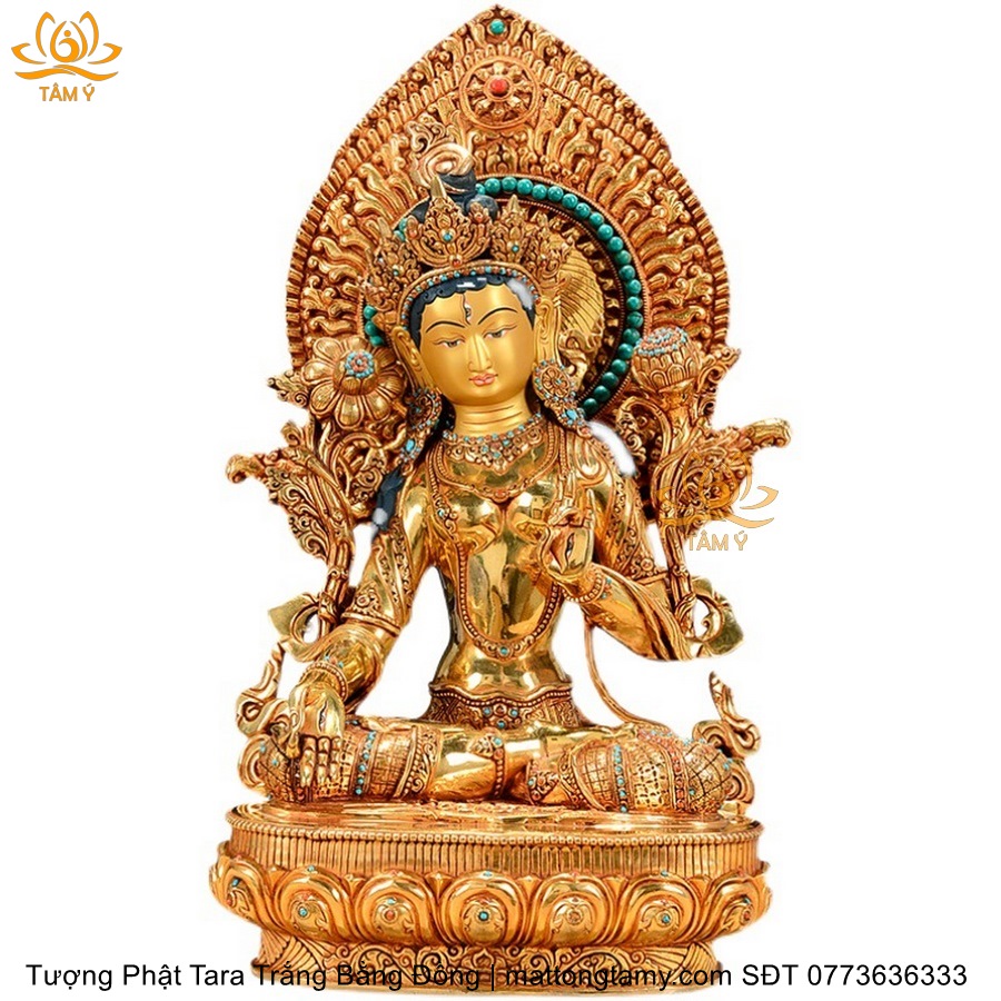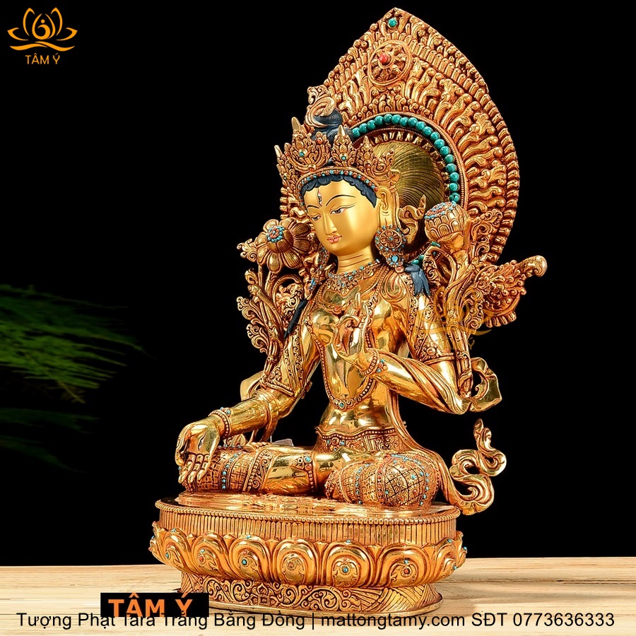 |Cao 43cm| Tượng Phật Tara Trắng Bằng Đồng Nguyên Chất, Dát Vàng 24K TP36