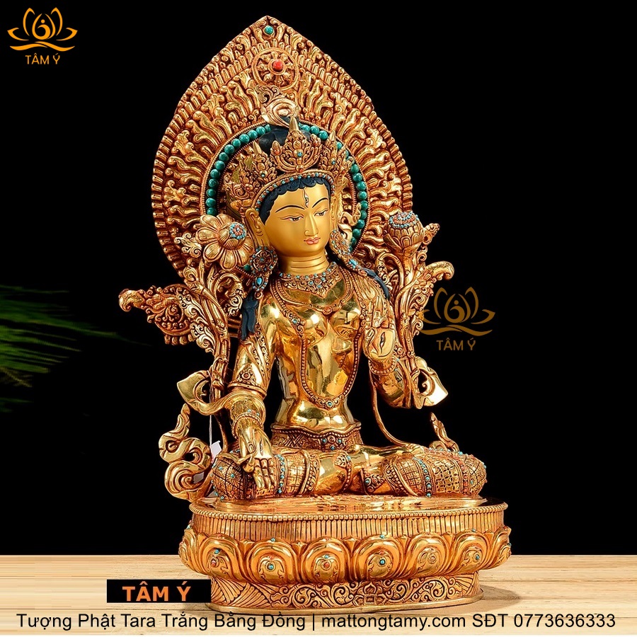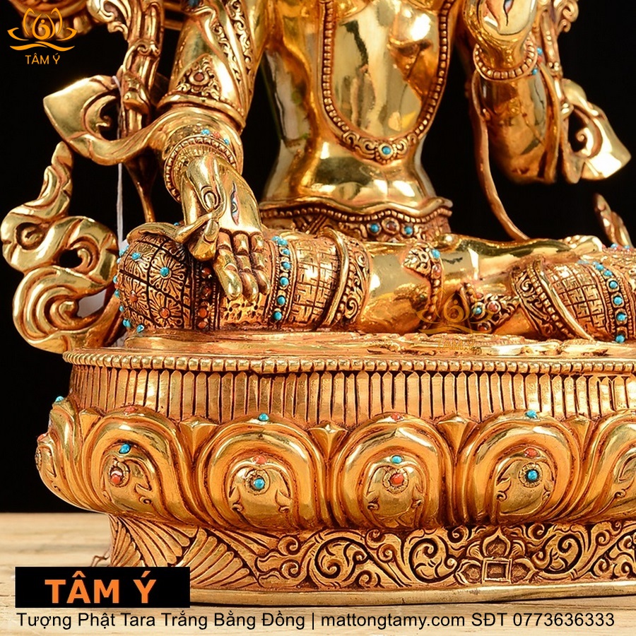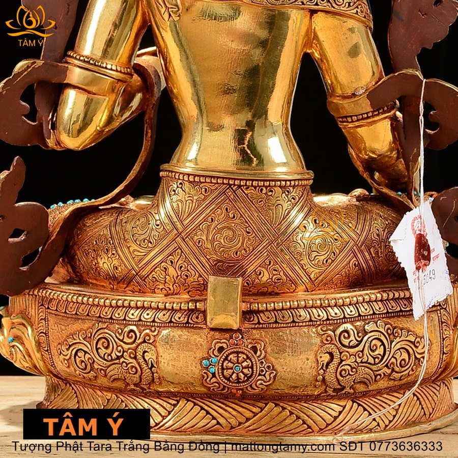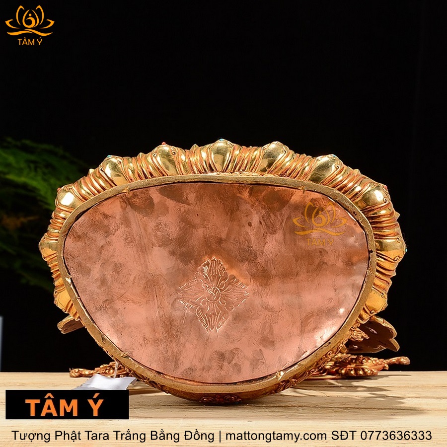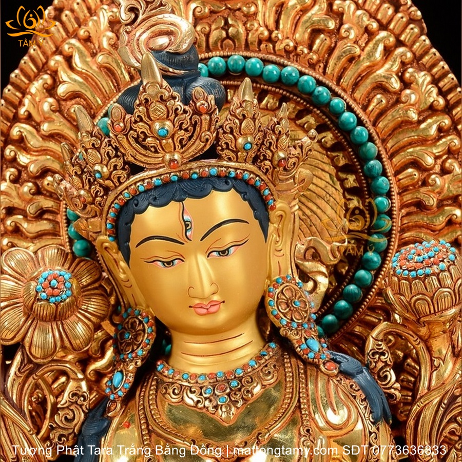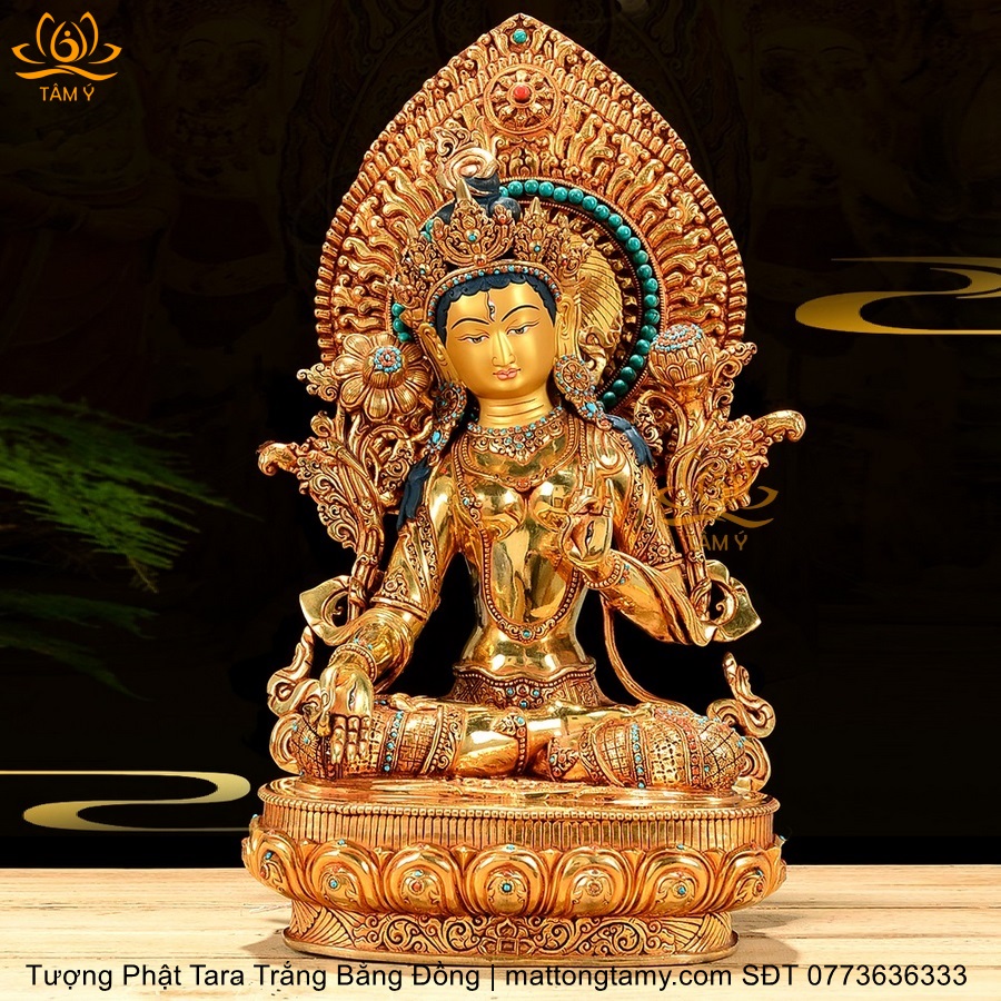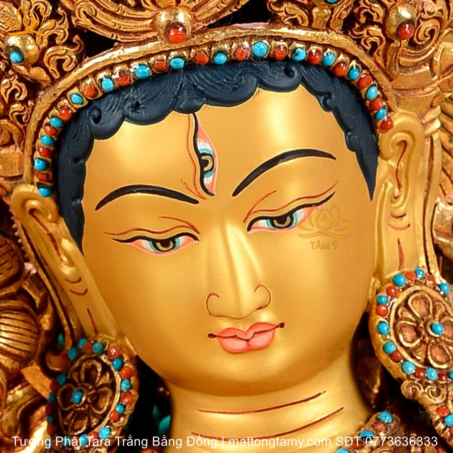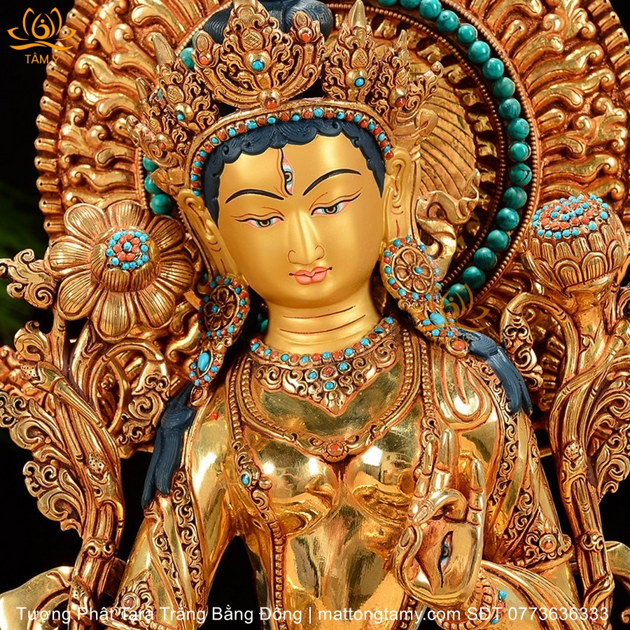 |Cao 43cm| Tượng Phật Tara Trắng Bằng Đồng Nguyên Chất, Dát Vàng 24K TP36