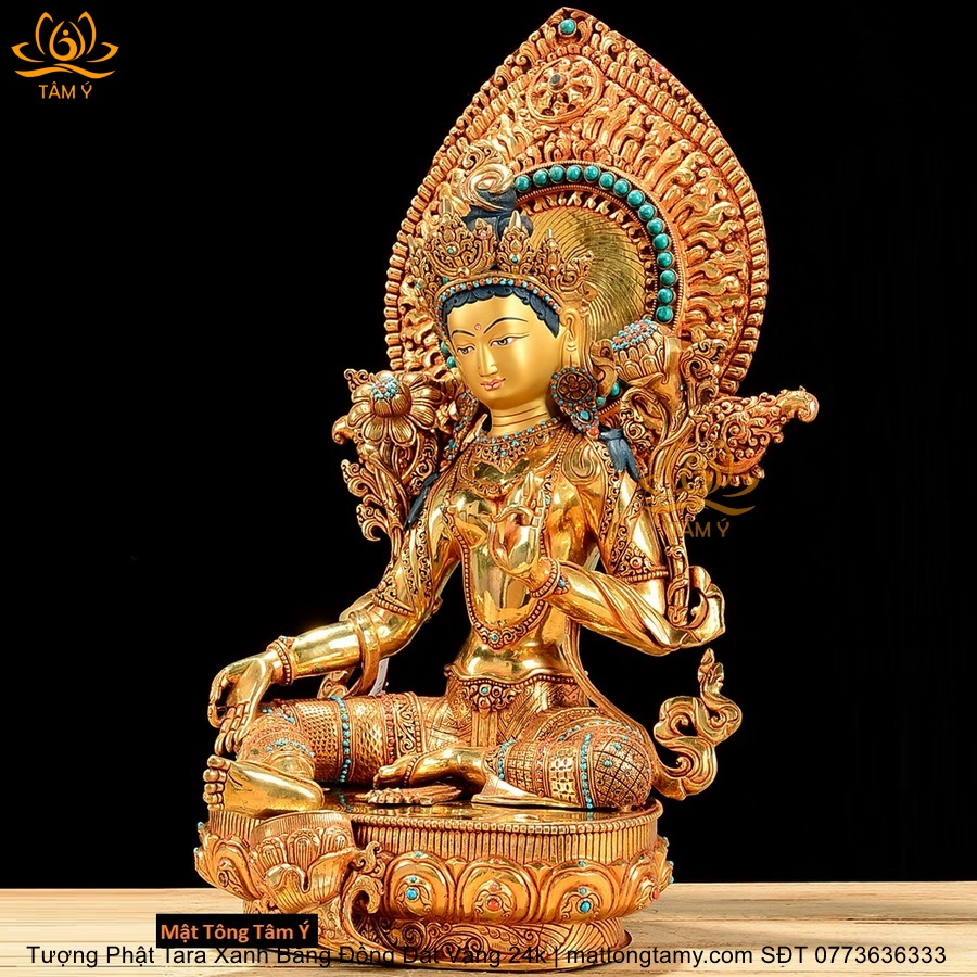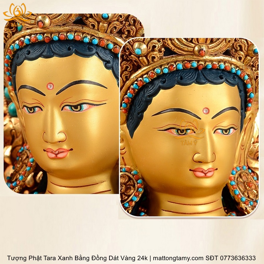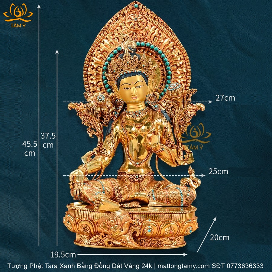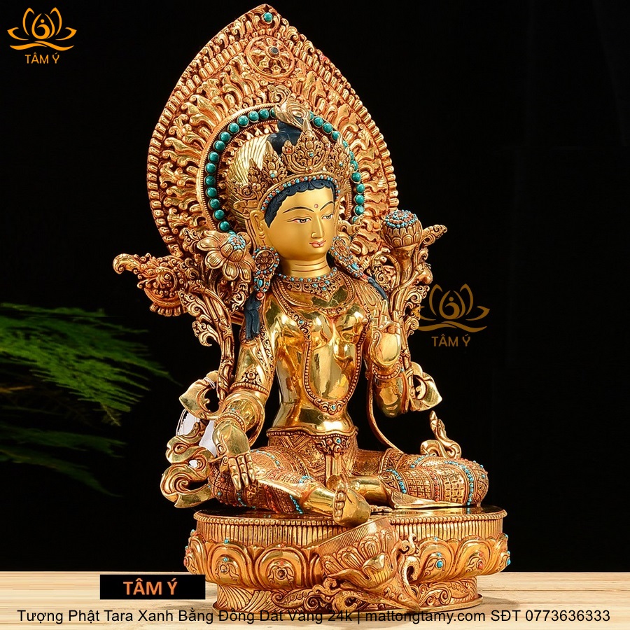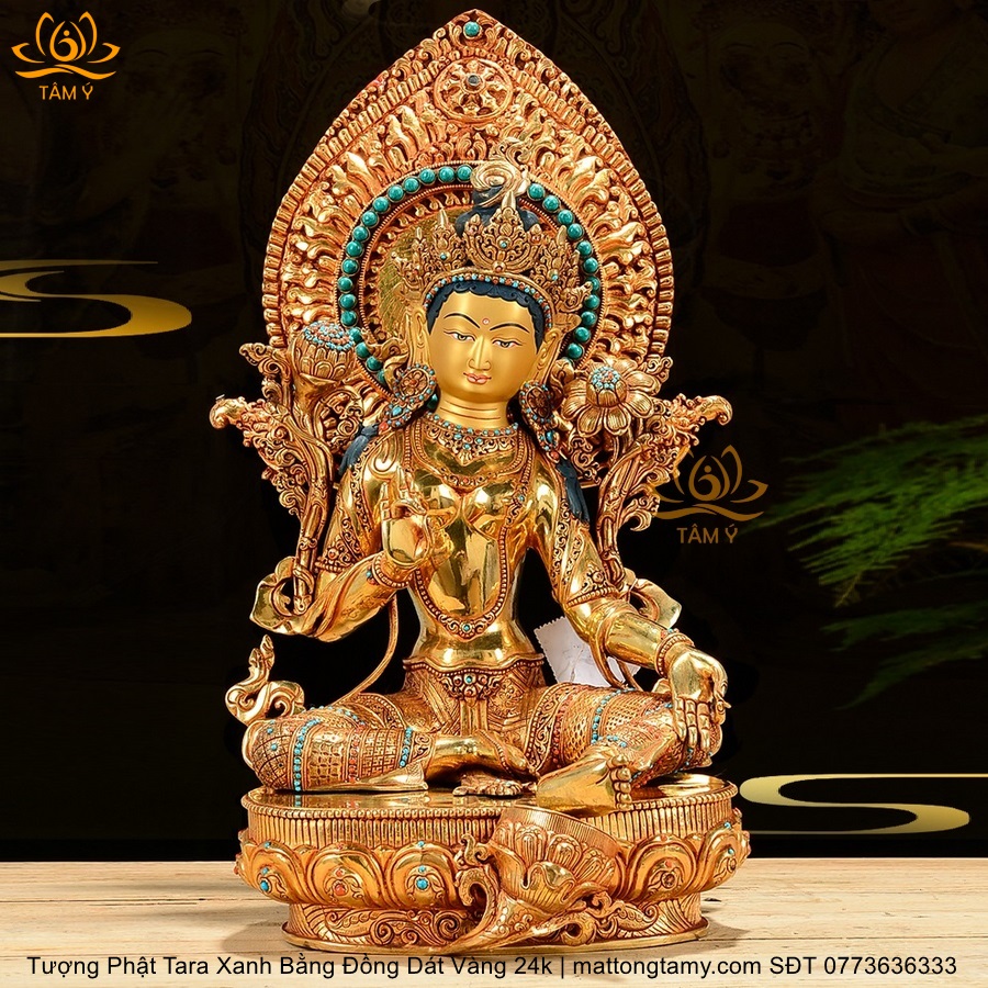 |Cao 45cm| Tượng Tara Xanh Bằng Đồng Nguyên Chất, Dát Vàng 24K TP24