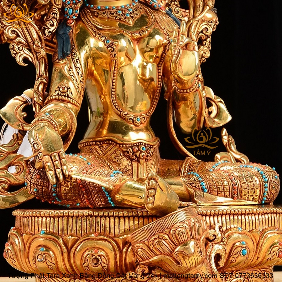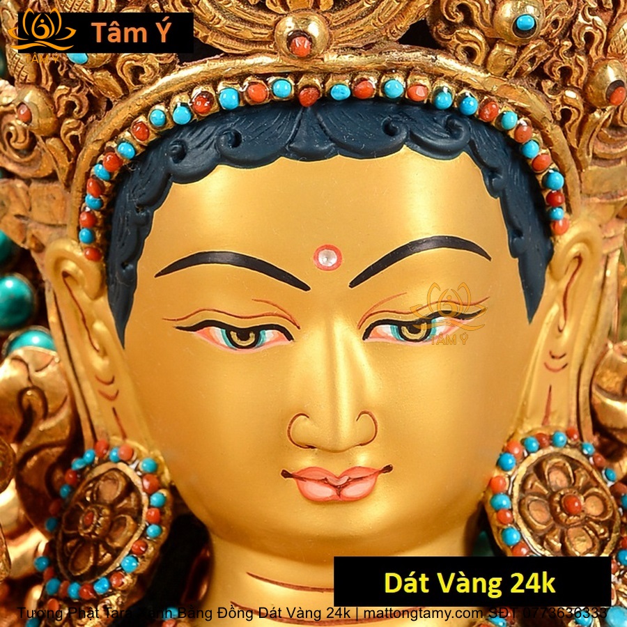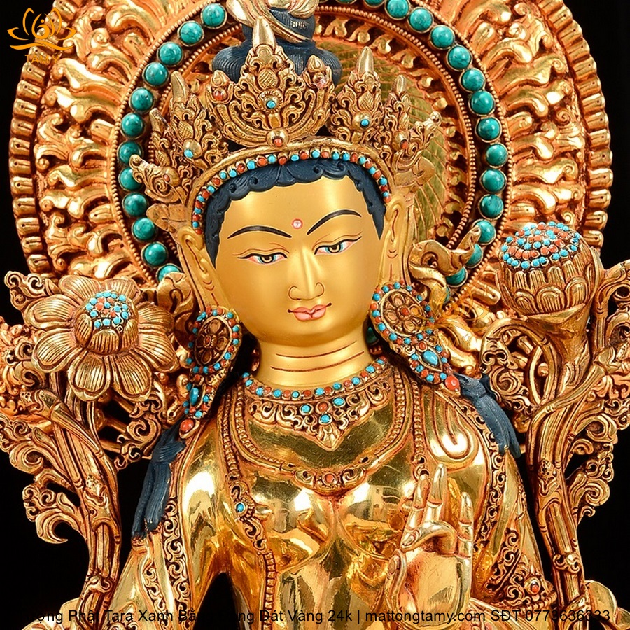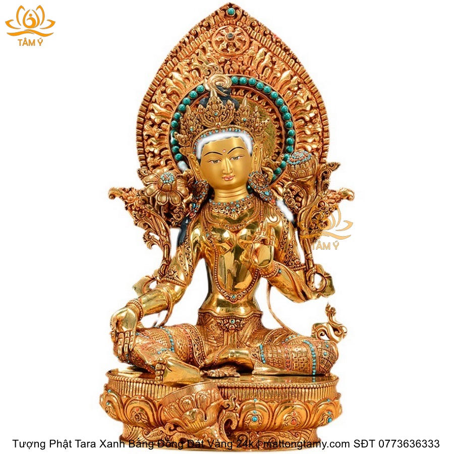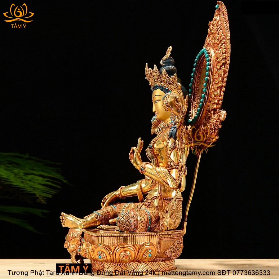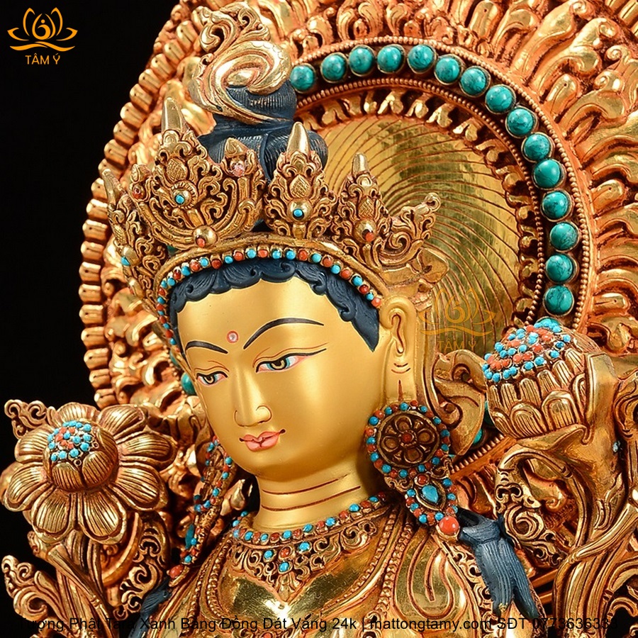 |Cao 45cm| Tượng Tara Xanh Bằng Đồng Nguyên Chất, Dát Vàng 24K TP24