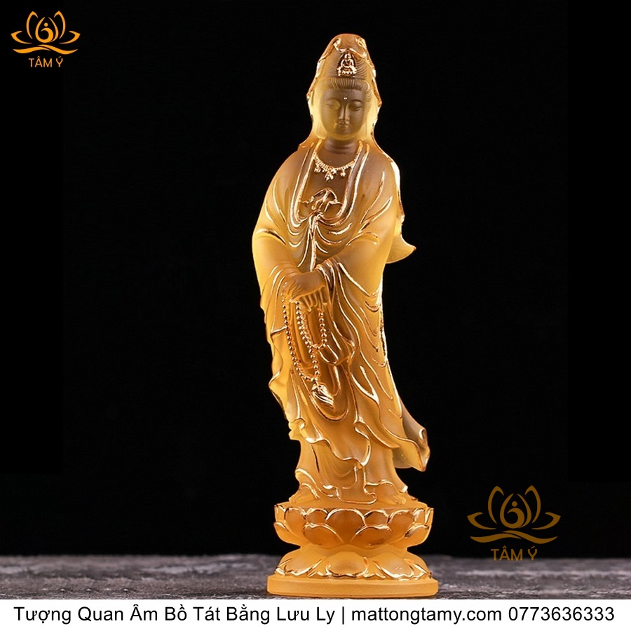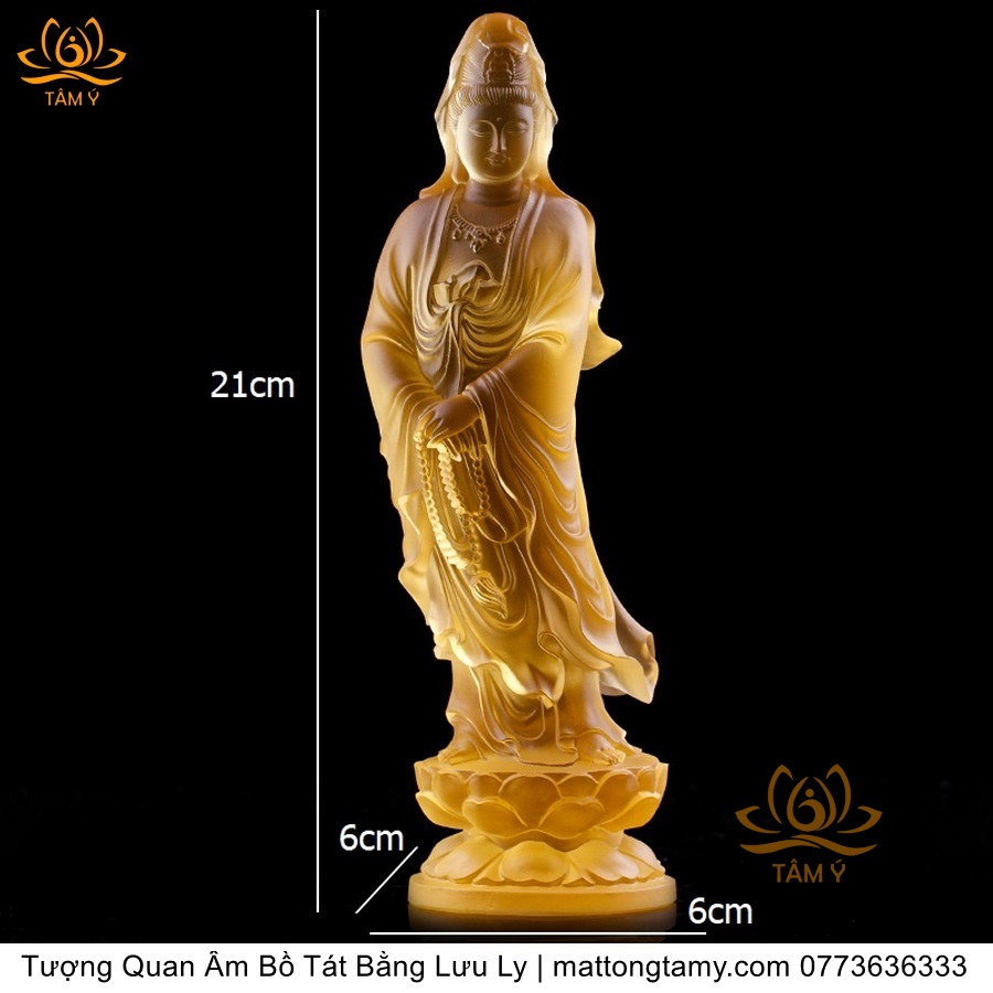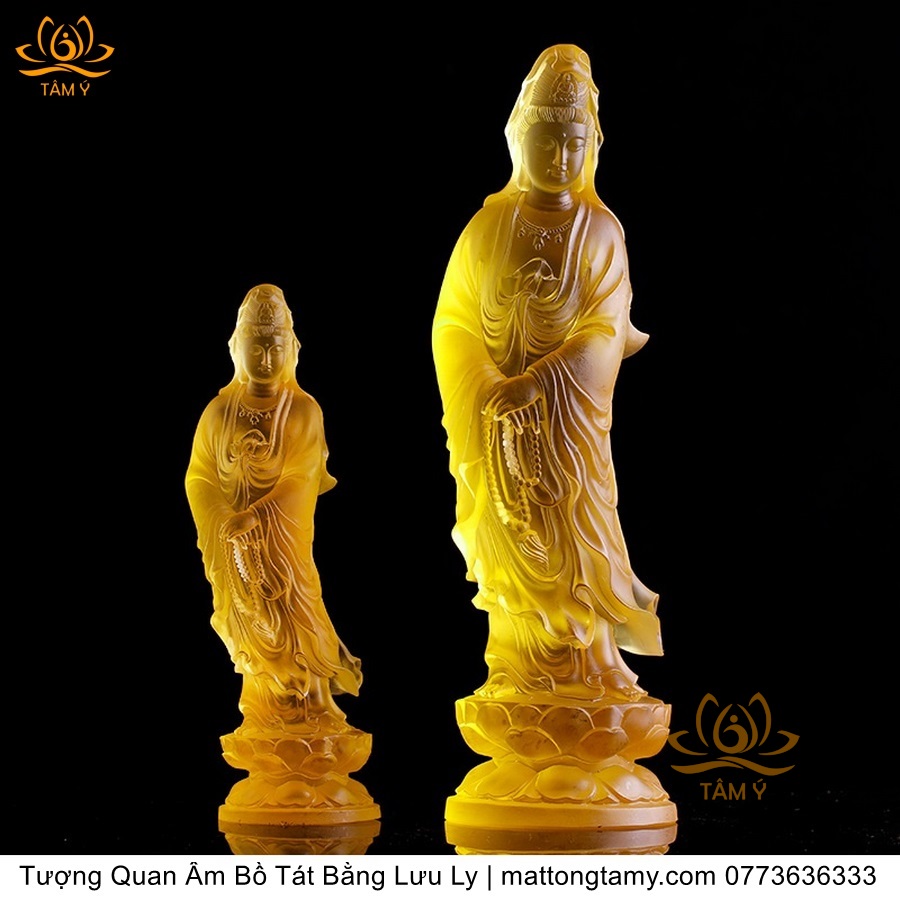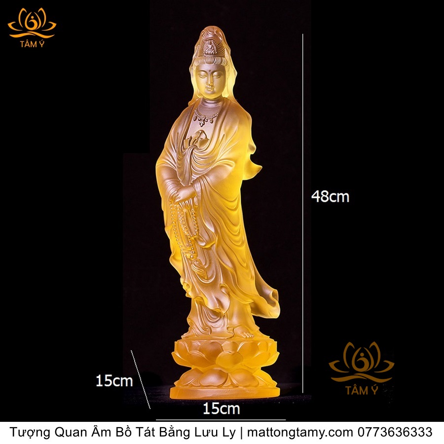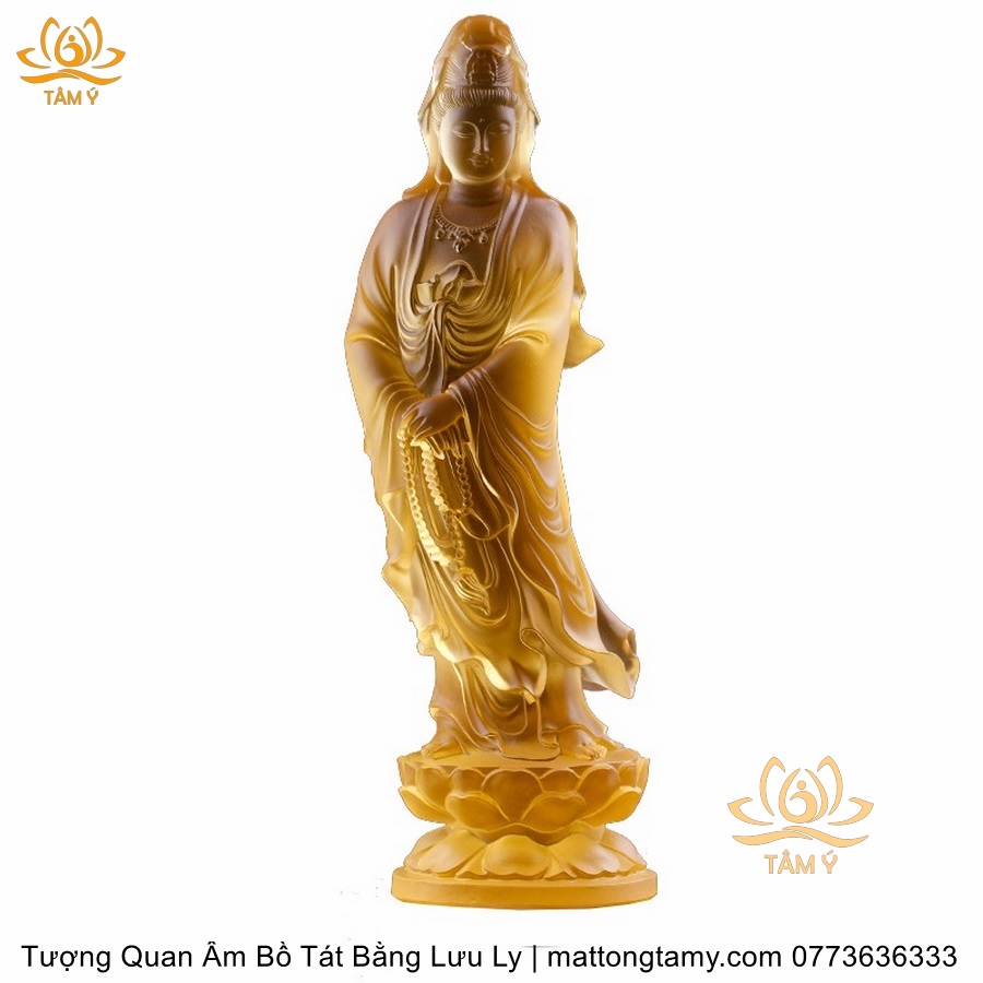 |Cao 46cm| Tượng Phật Quan Thế Âm Bồ Tát(Dáng Đứng) Bằng Lưu Ly Cao Cấp Màu Vàng Thiết Kế Sang Trọng TP208