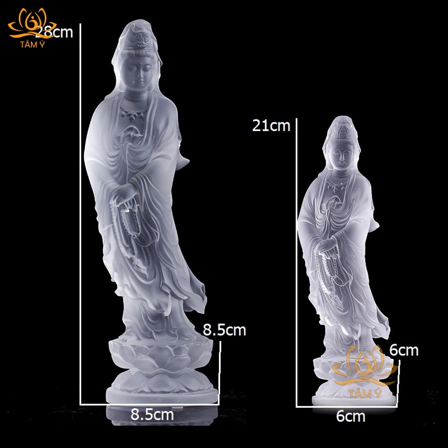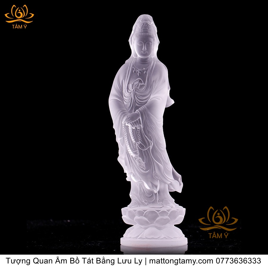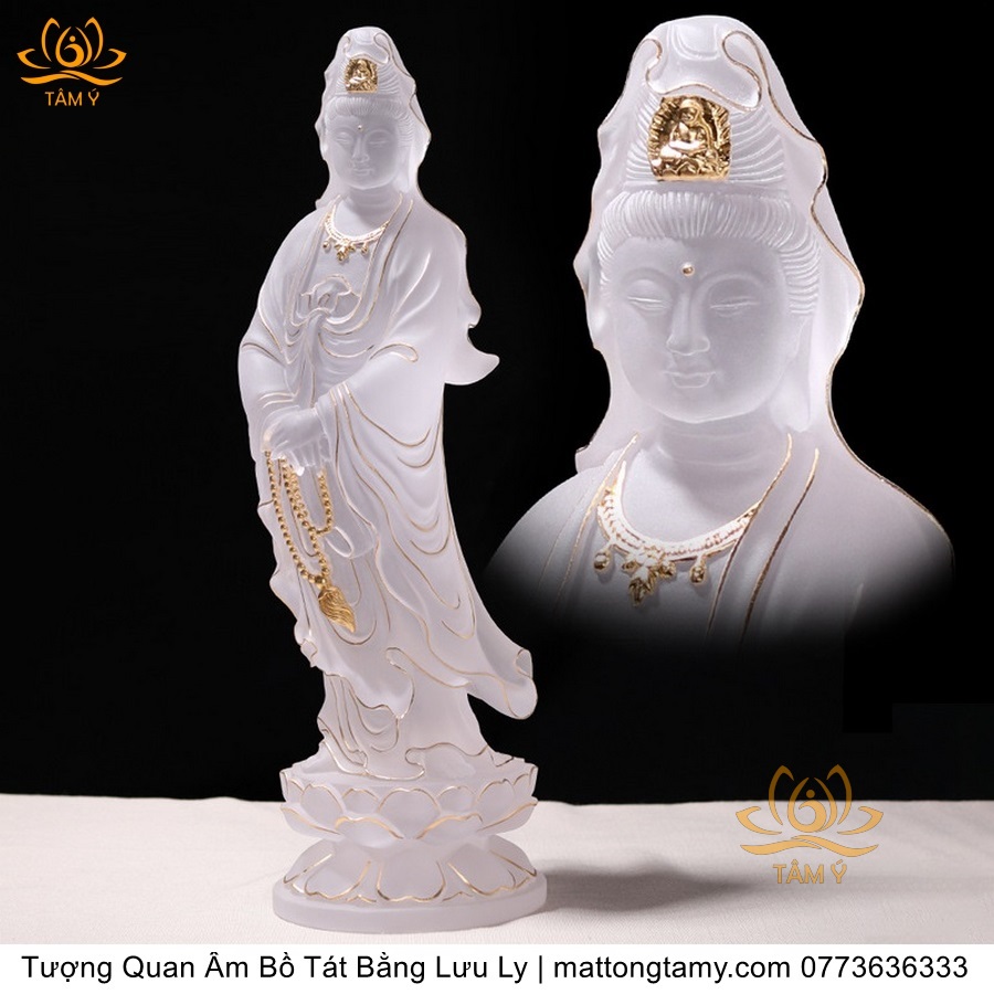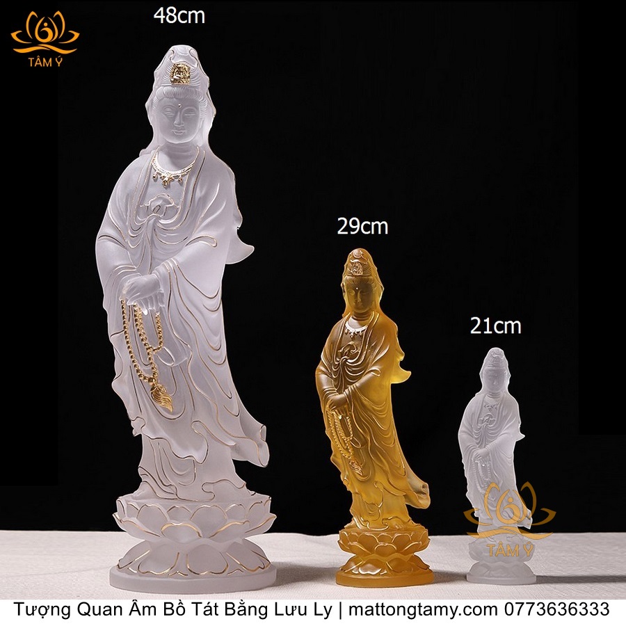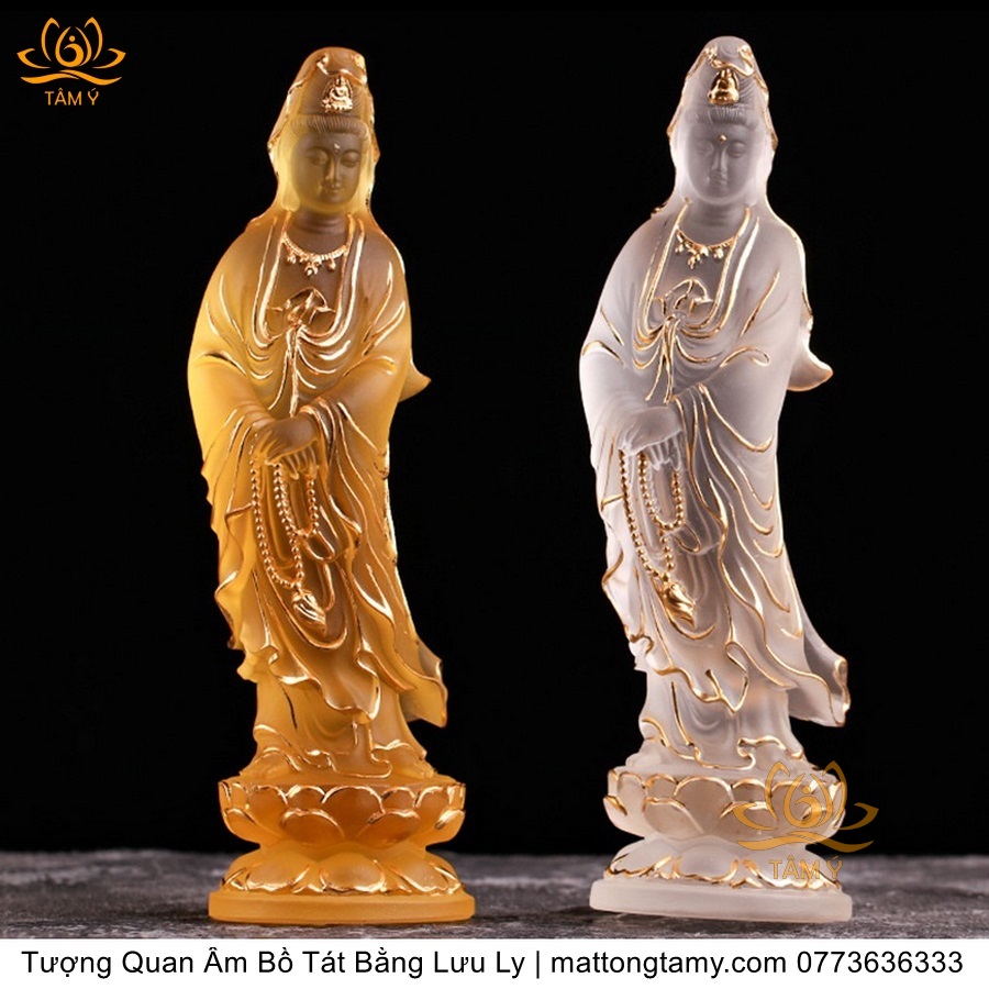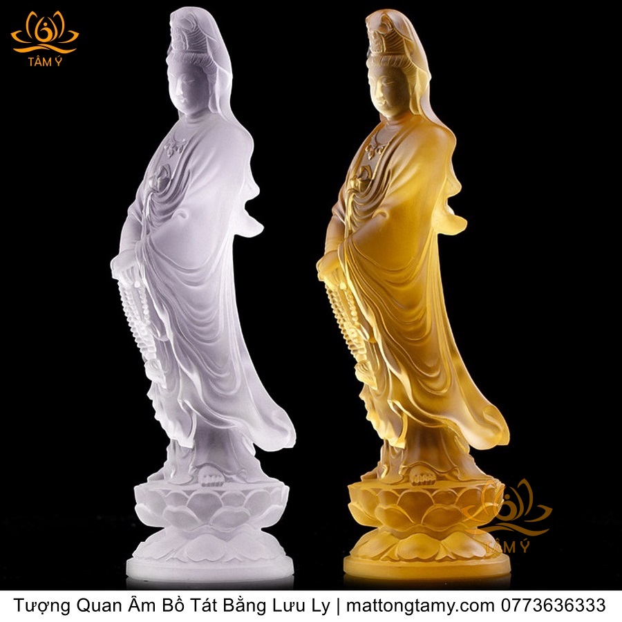 |Cao 46cm| Tượng Phật Quan Thế Âm Bồ Tát(Dáng Đứng) Bằng Lưu Ly Cao Cấp Màu Vàng Thiết Kế Sang Trọng TP208