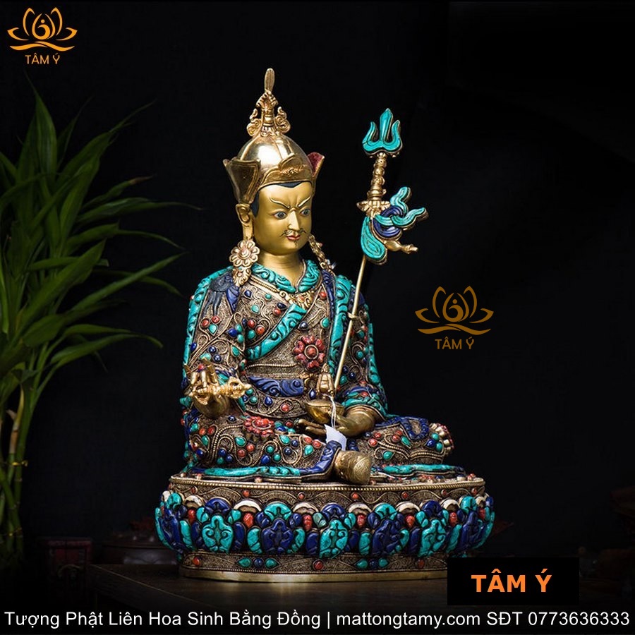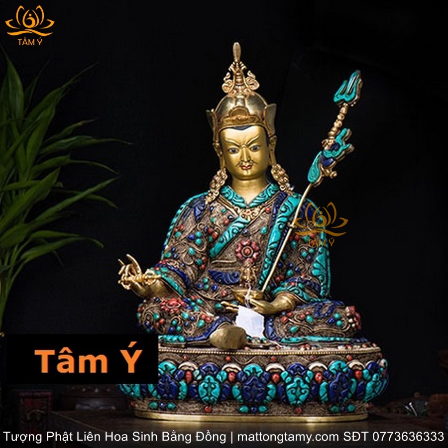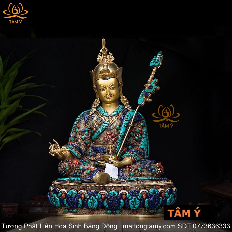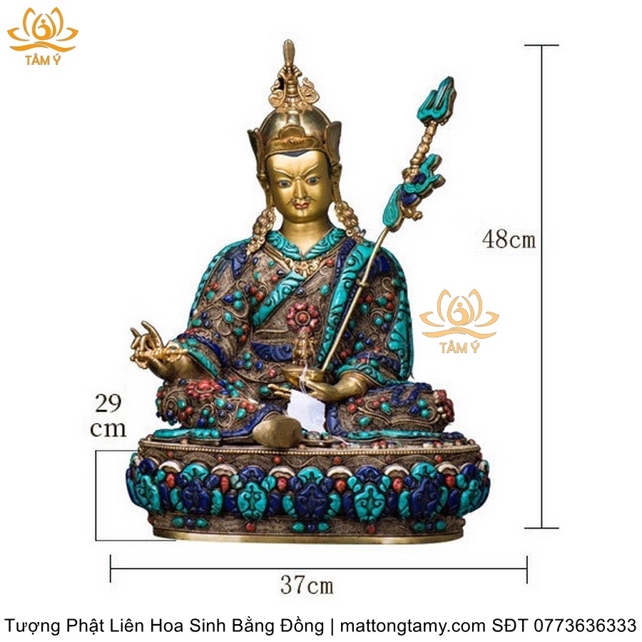 |Cao 48cm và 36cm| Tượng Phật Liên Hoa Sinh Bằng Đồng Nguyên Chất Nạm Ngọc TP30