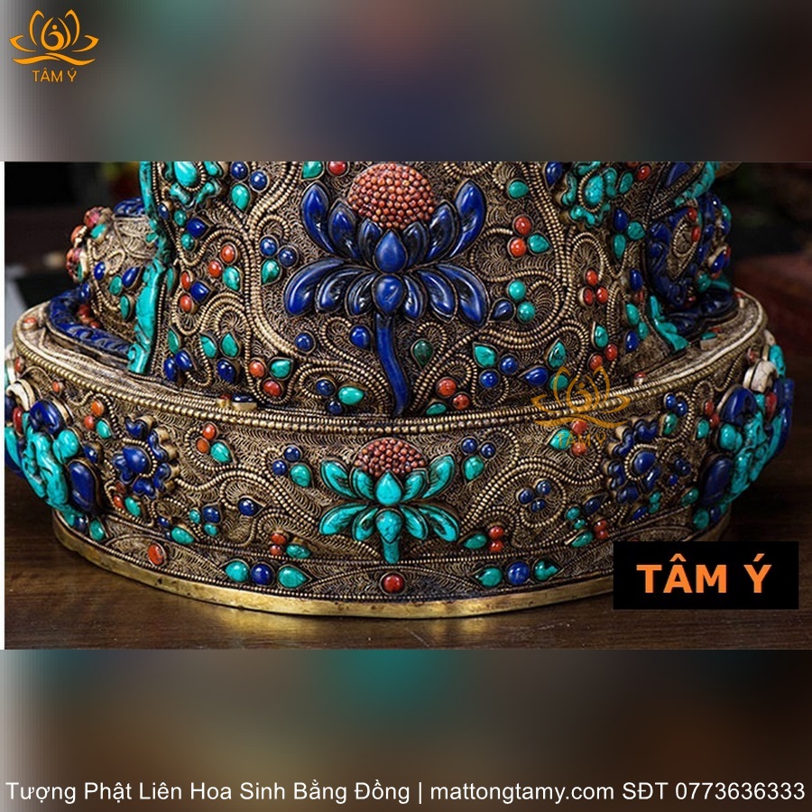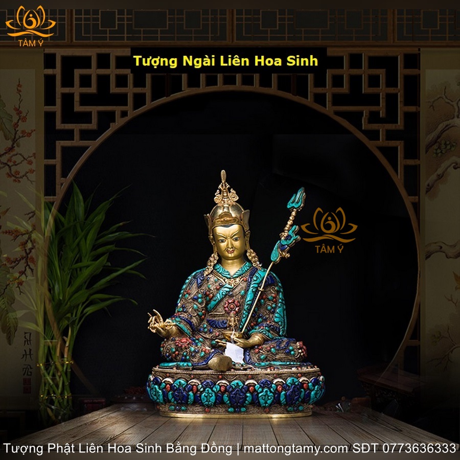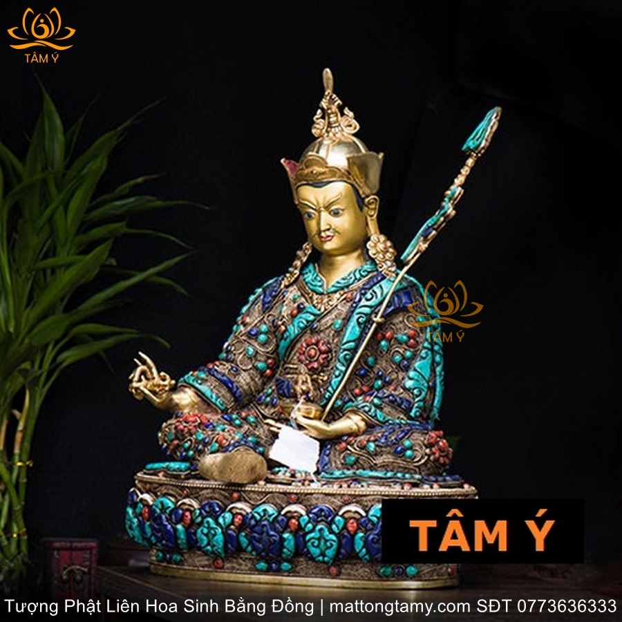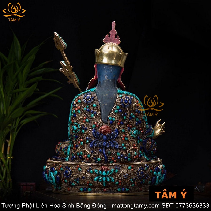 |Cao 48cm và 36cm| Tượng Phật Liên Hoa Sinh Bằng Đồng Nguyên Chất Nạm Ngọc TP30