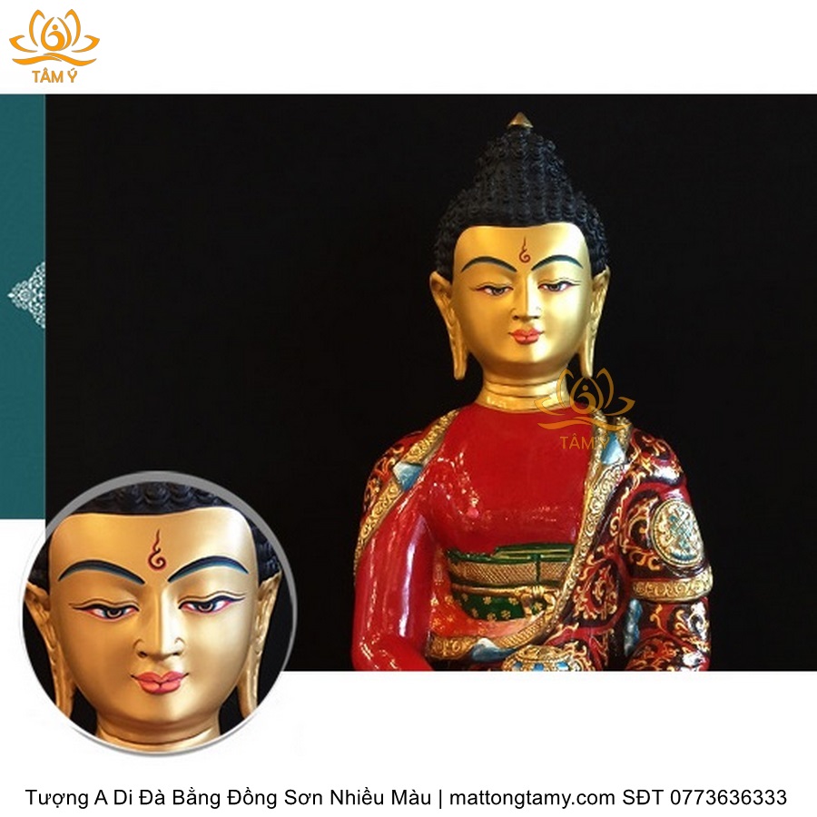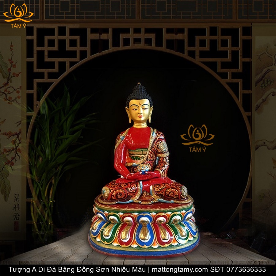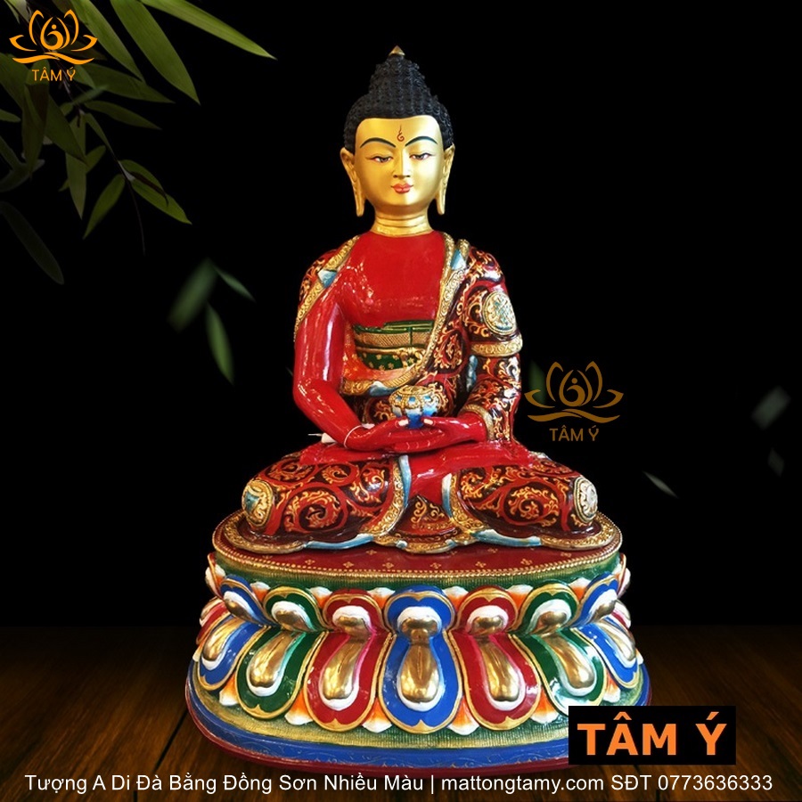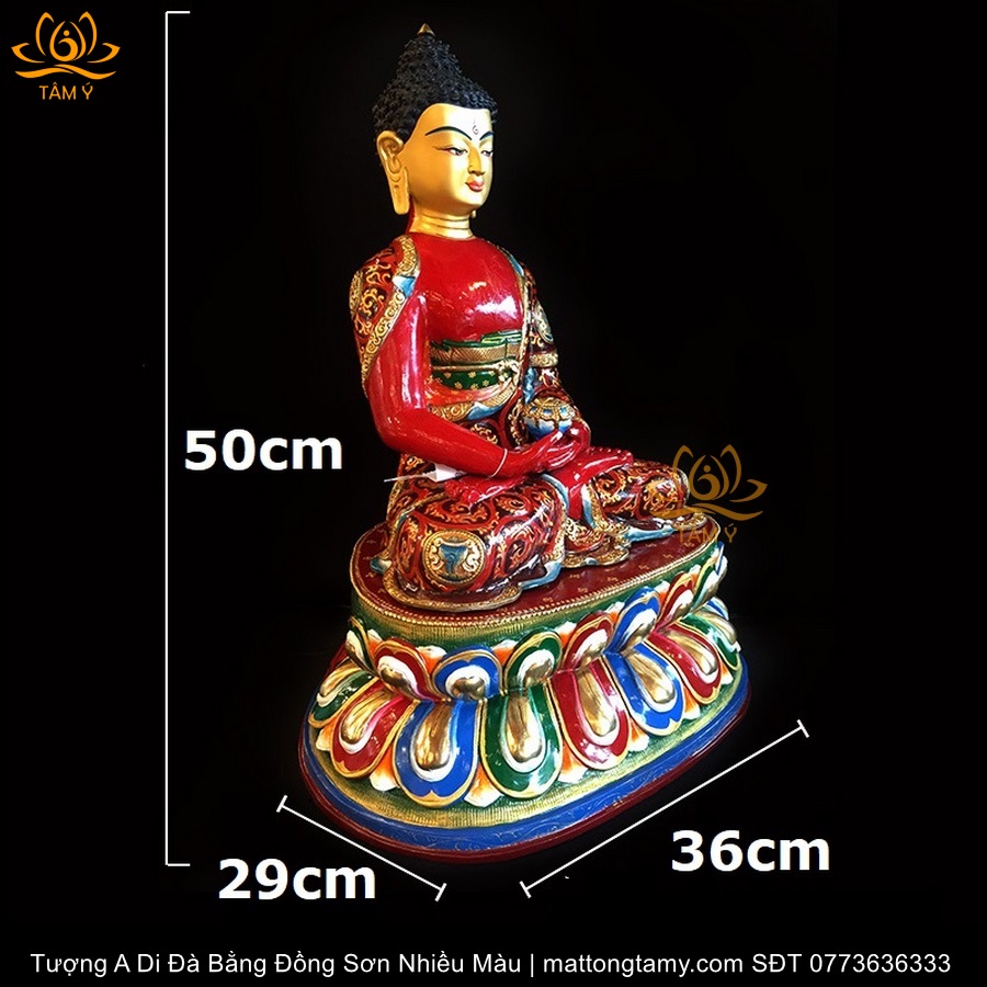 |Cao 50cm| Tượng Phật A Di Đà (Sơn Nhiều Màu) Bằng Đồng Nguyên Chất TP60