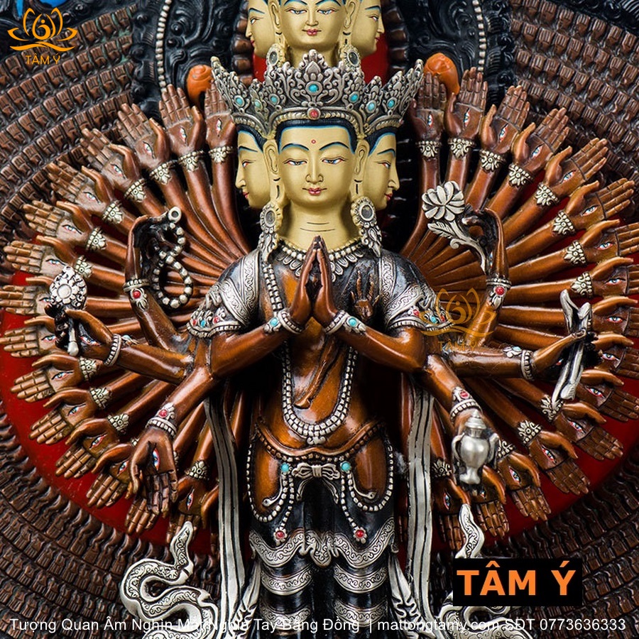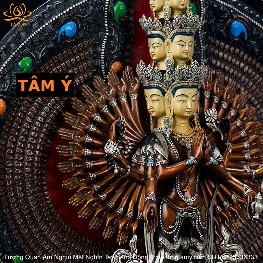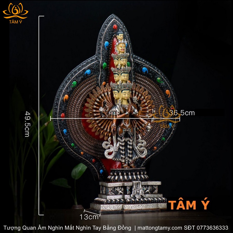|Cao 50cm| Tượng Phật Quan Âm Nghìn Mắt Nghìn Tay Bằng Đồng Đỏ Nguyên Chất TP50