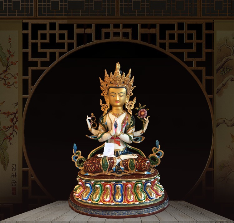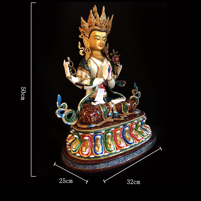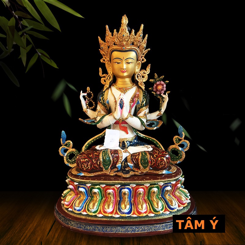 |Cao 50cm| Tượng Phật Quan Âm Tứ Thủ (Sơn Nhiều Màu) Bằng Đồng Nguyên Chất TP60