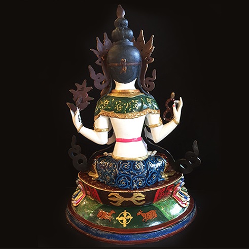 4. Bởi Ngài khẩn cầu mười phương chư Phật thực hành thiện hạnh liên tục cứu vớt, giúp đỡ và thức tỉnh chúng sinh nên tay của Ngài chắp lại trước ngực, trì giữ bảo châu Như ý để mong nguyện năng lực của Ngài cùng mười phương chư Phật sẽ đem lại sự viên mãn tâm nguyện cho tất cả chúng sinh.