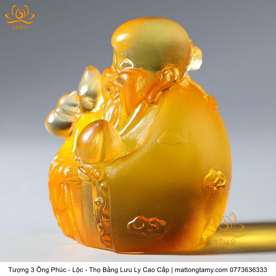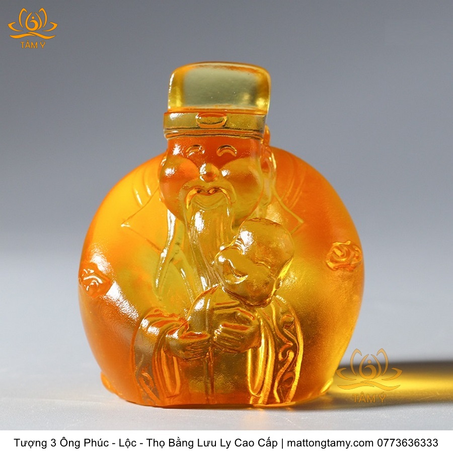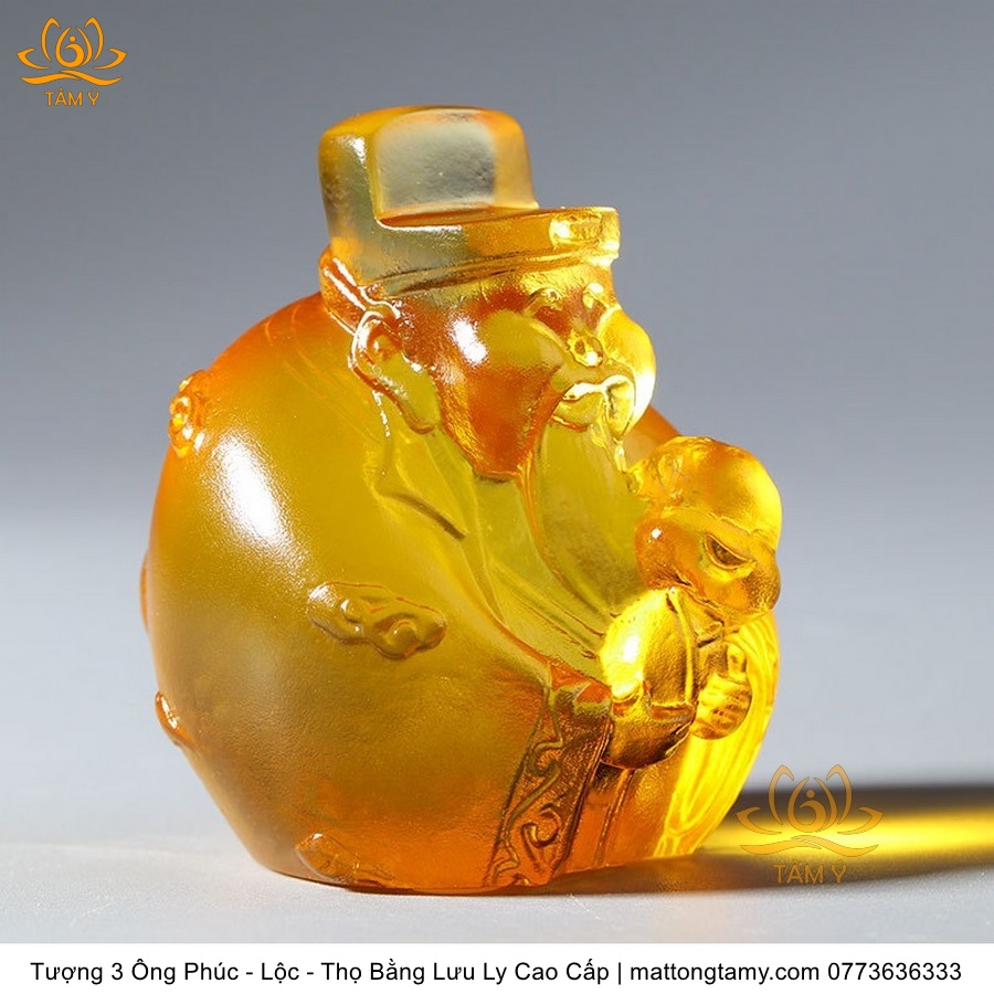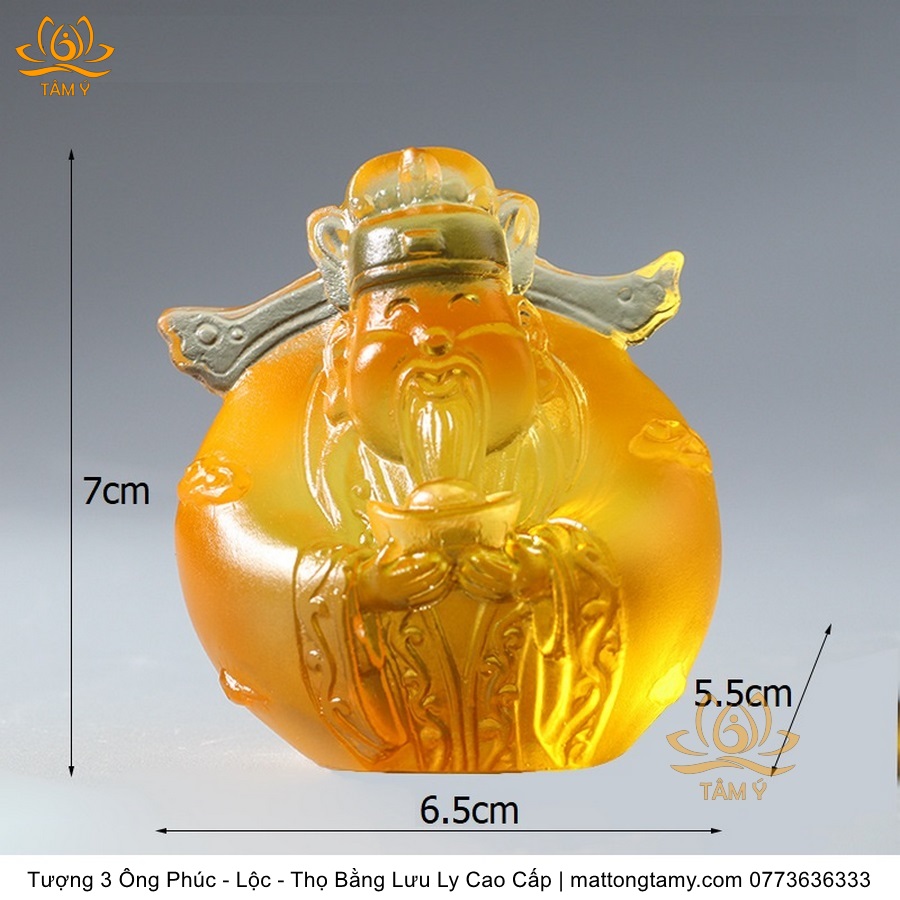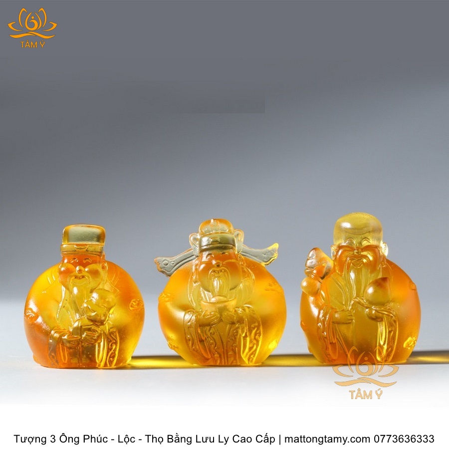 |Cao 7cm| Bộ 3 Tượng 3 Vị Ông Tam Đa Phúc - Lộc - Thọ Bằng Lưu Ly Cao Cấp Màu Hổ Phách Thiết Kế Ngộ Nghĩnh Mini Nhỏ Gọn TP217
