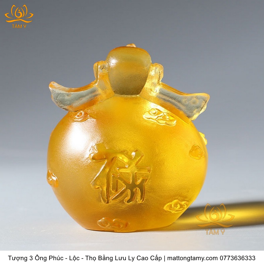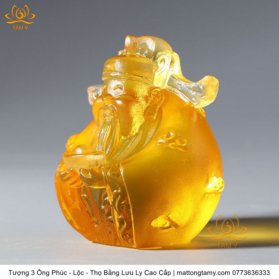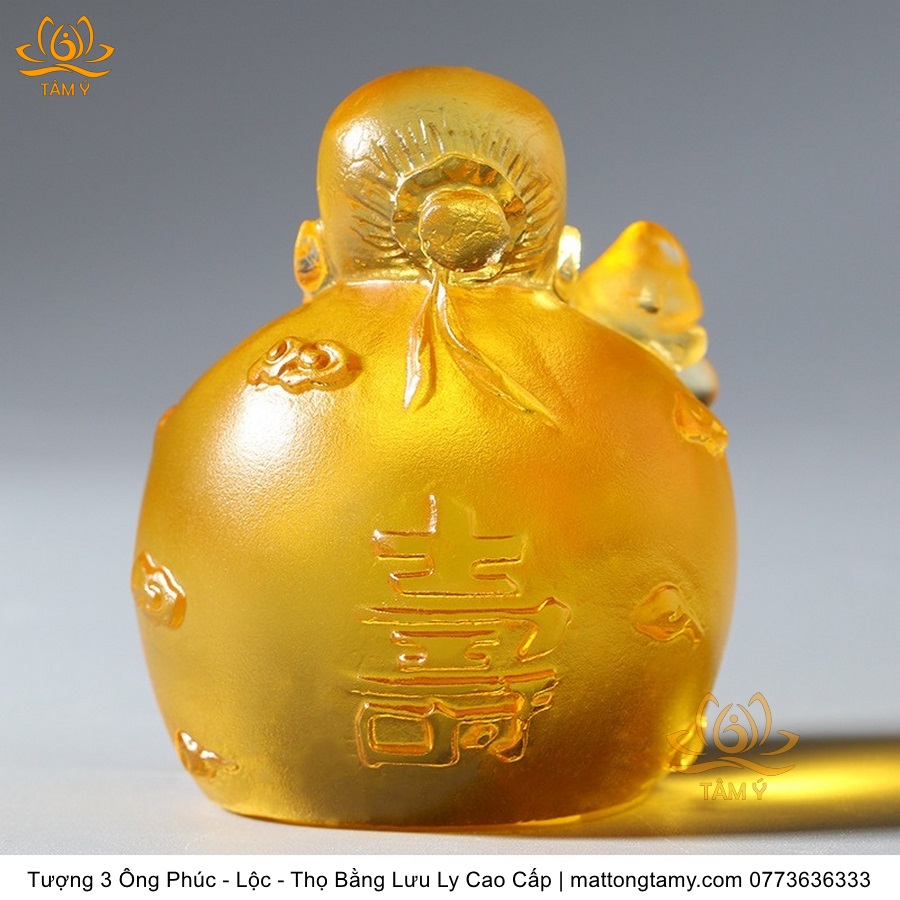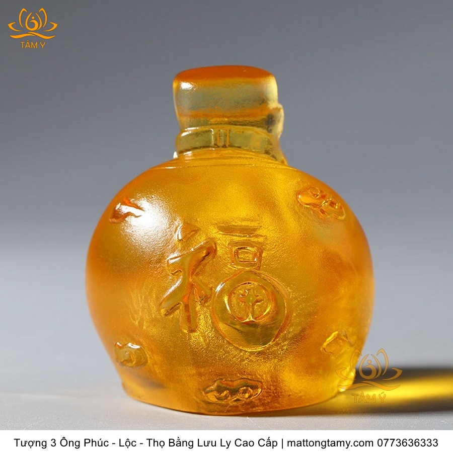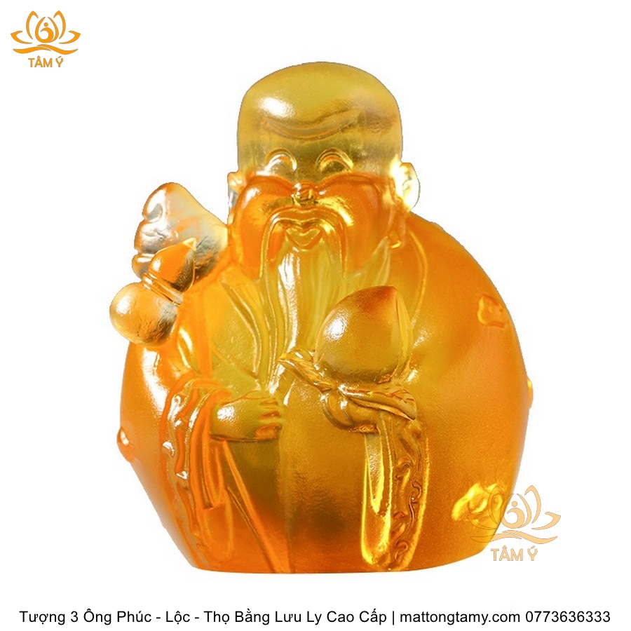 |Cao 7cm| Bộ 3 Tượng 3 Vị Ông Tam Đa Phúc - Lộc - Thọ Bằng Lưu Ly Cao Cấp Màu Hổ Phách Thiết Kế Ngộ Nghĩnh Mini Nhỏ Gọn TP217