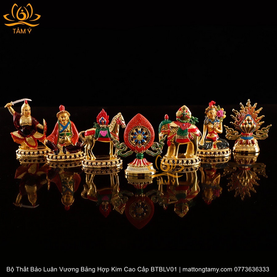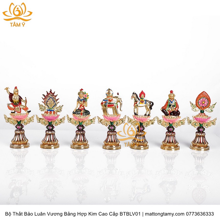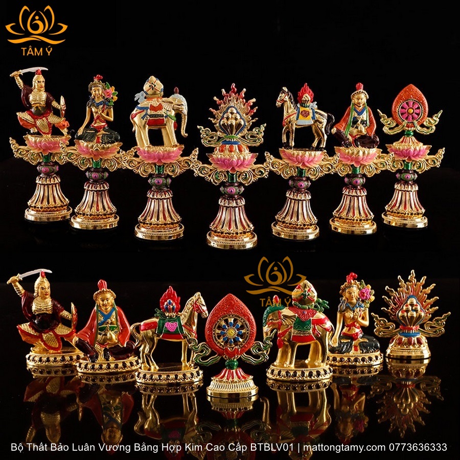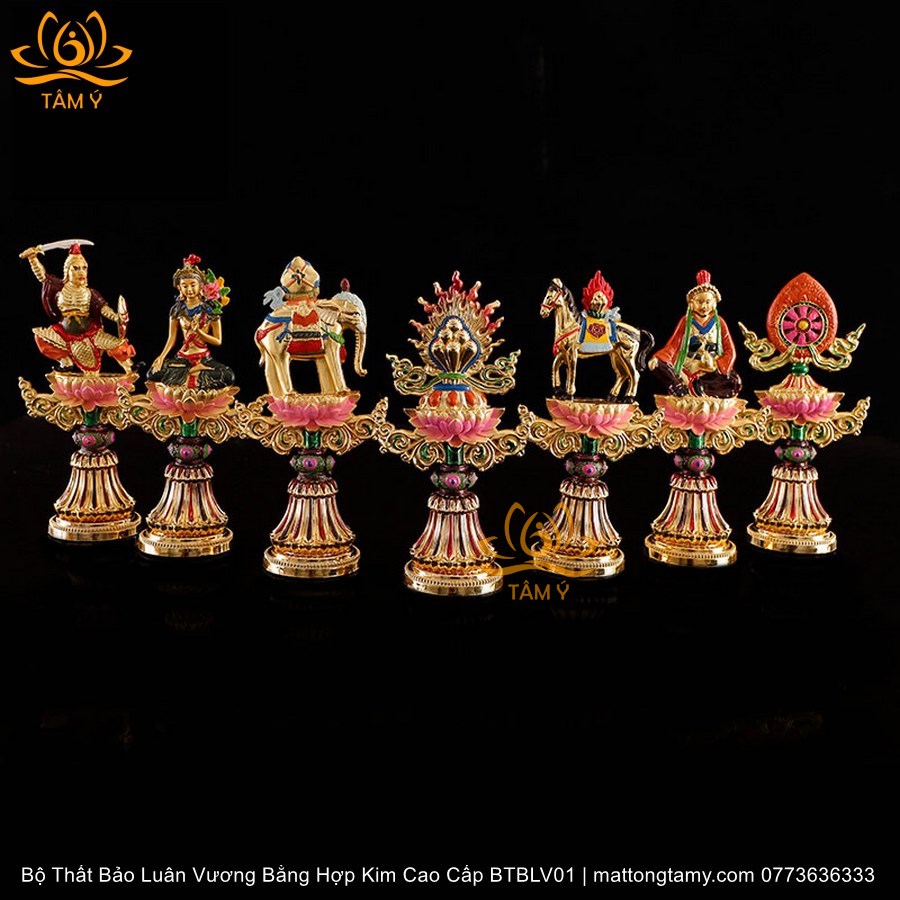 |Cao 8cm Và 17cm| Bộ Thất Bảo Luân Vương Bằng Hợp Kim Cao Cấp, Hoàn Thiên Thủ Công BTBLV01