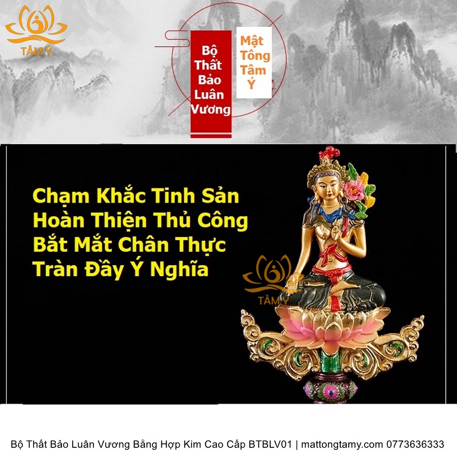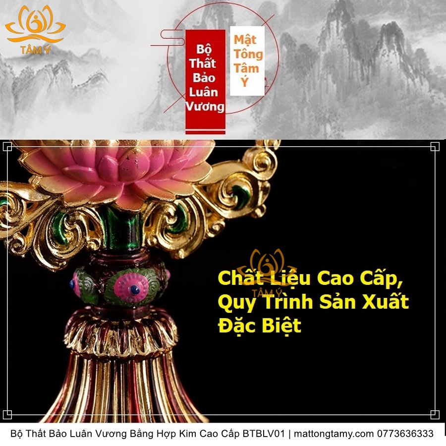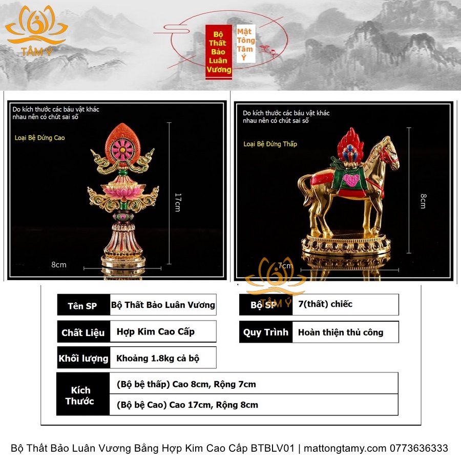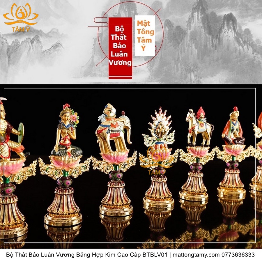 |Cao 8cm Và 17cm| Bộ Thất Bảo Luân Vương Bằng Hợp Kim Cao Cấp, Hoàn Thiên Thủ Công BTBLV01