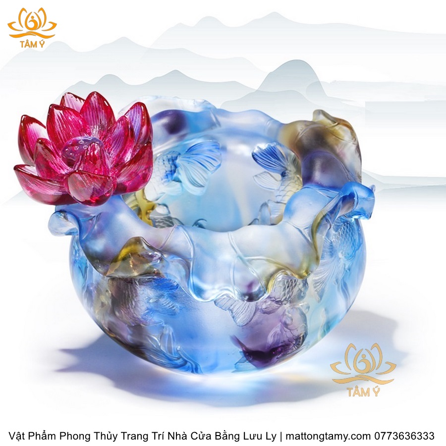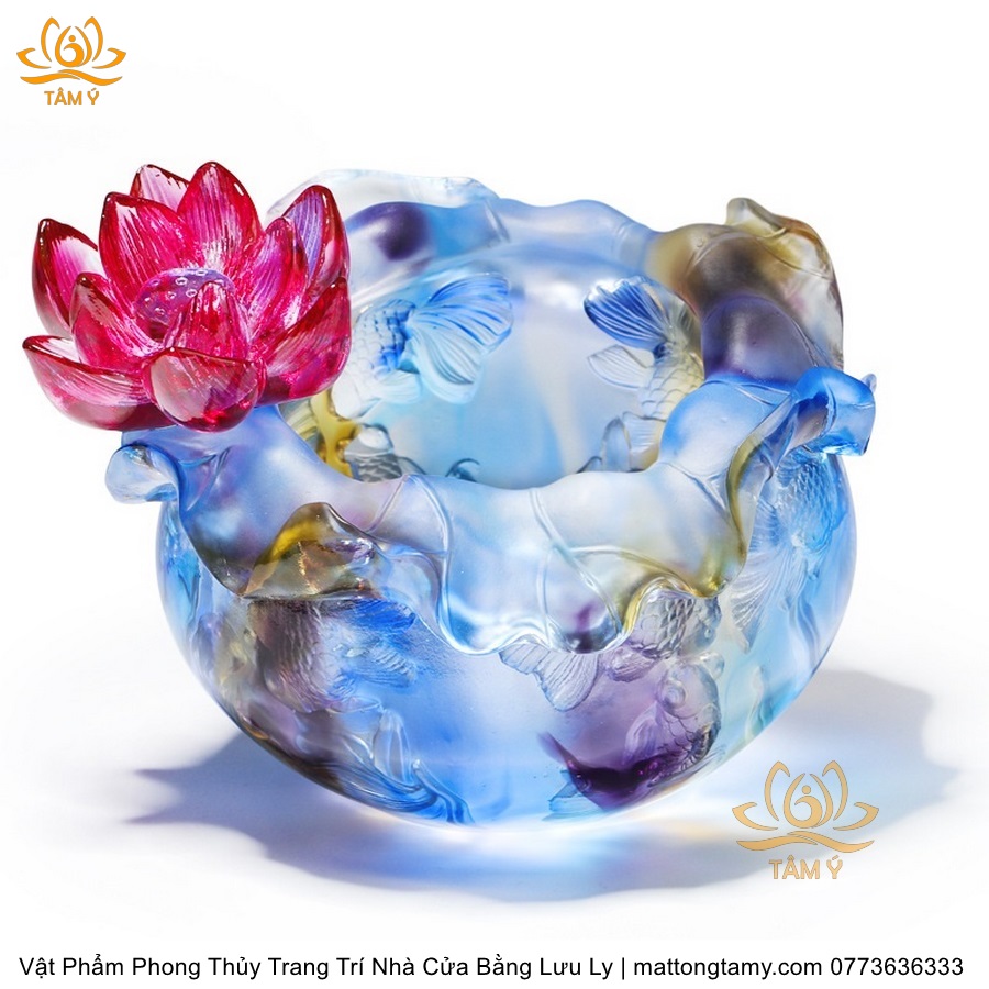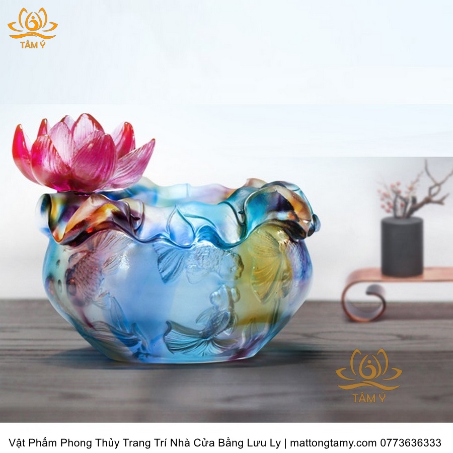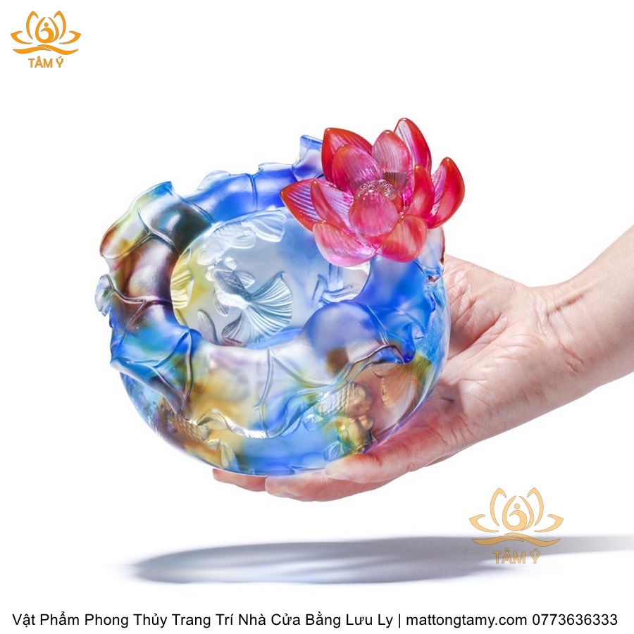 Chậu - Bát - Bể Cá Đính Bông Sen Bằng Lưu Ly Cao Cấp Vật Phẩm Phong Thủy Trang Trí Nhà Cửa, DTT105