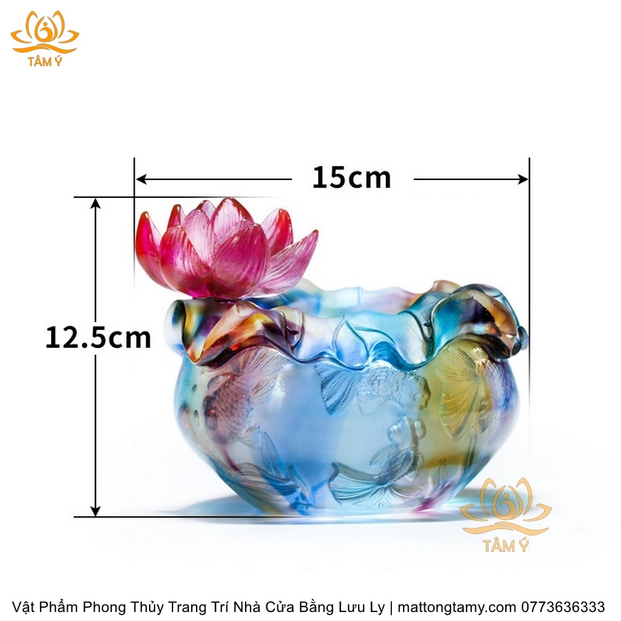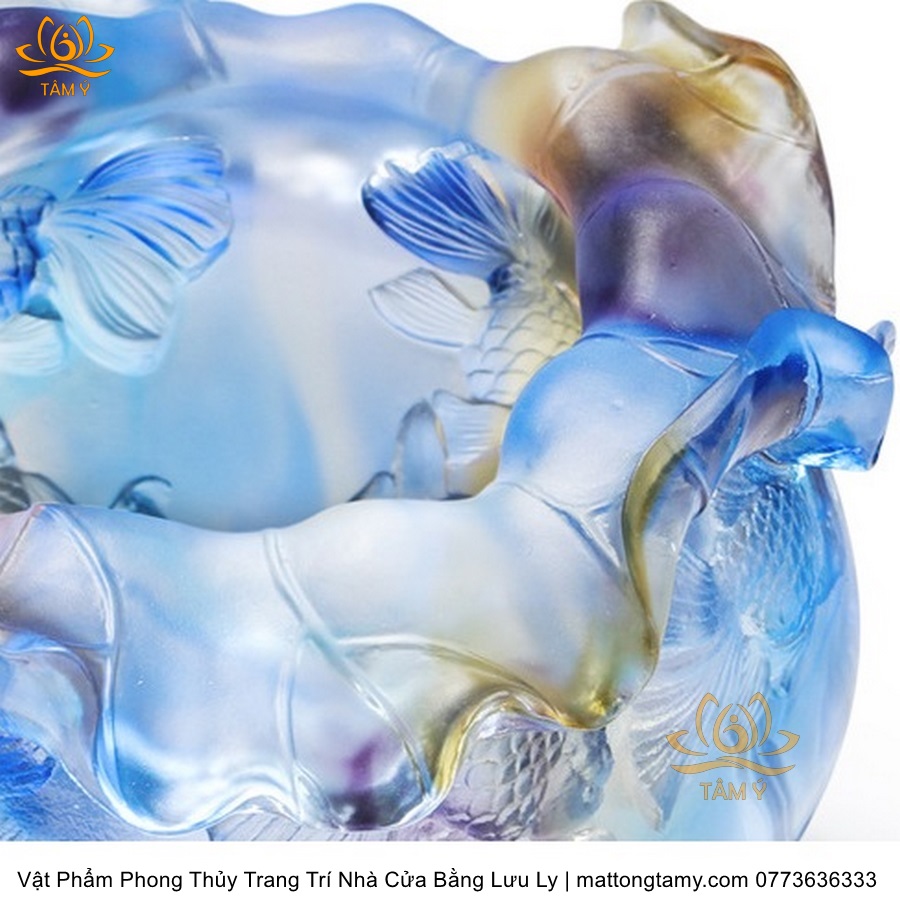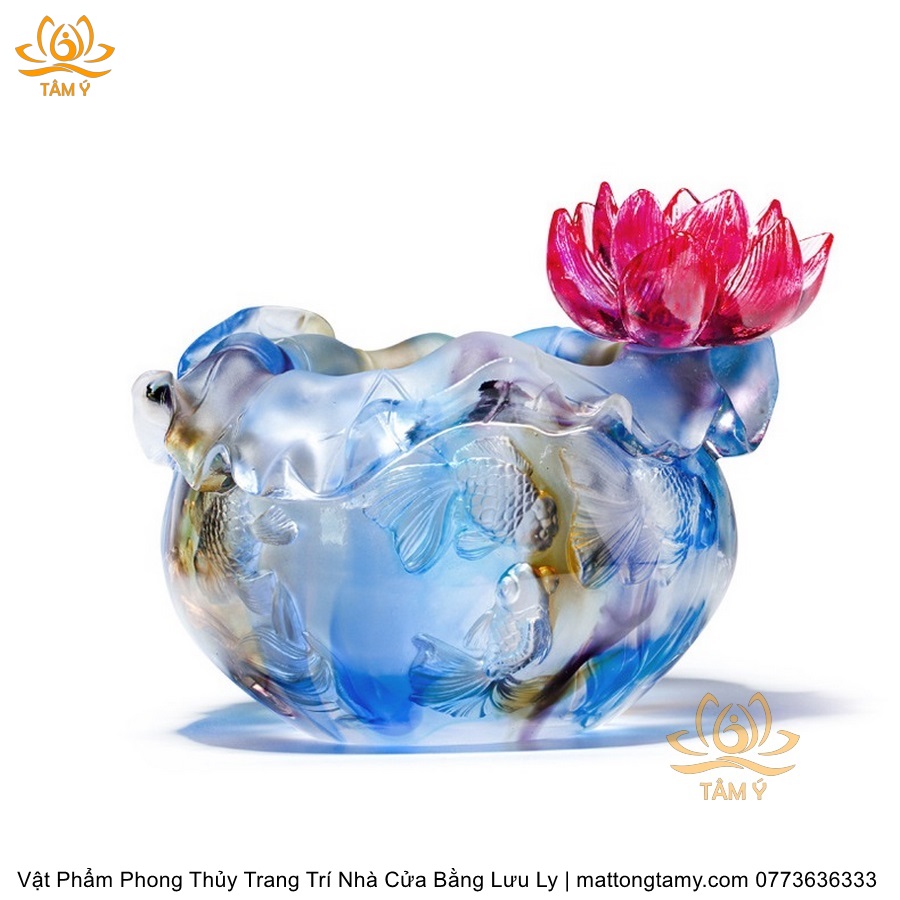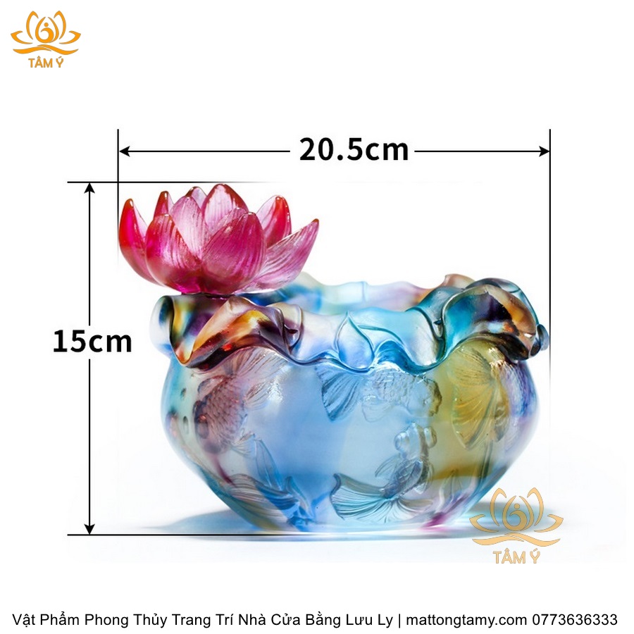 Chậu - Bát - Bể Cá Đính Bông Sen Bằng Lưu Ly Cao Cấp Vật Phẩm Phong Thủy Trang Trí Nhà Cửa, DTT105