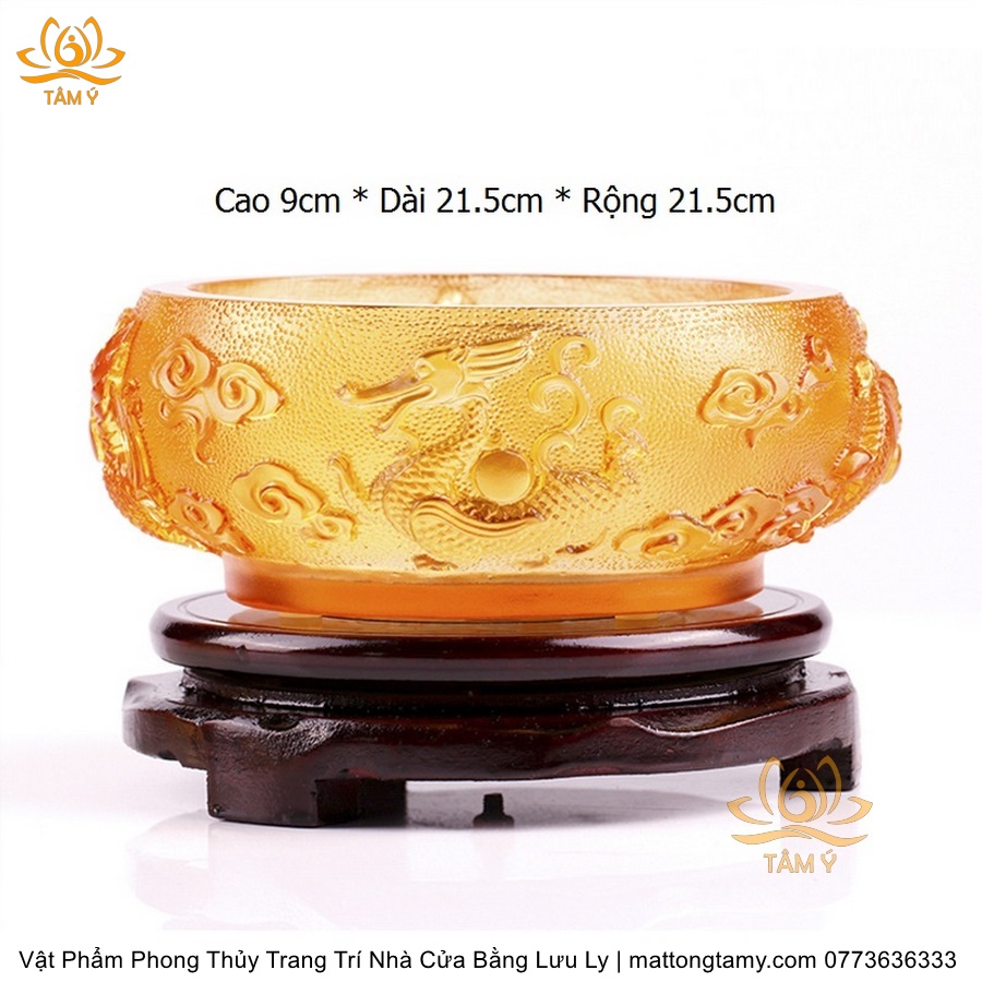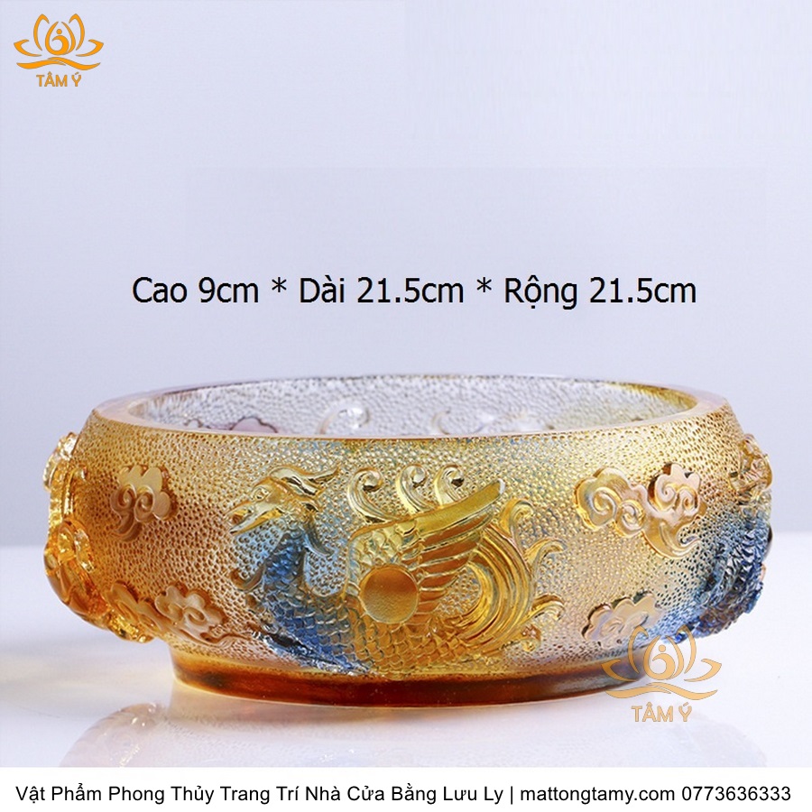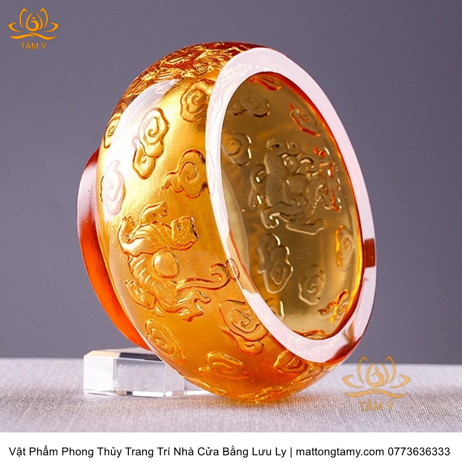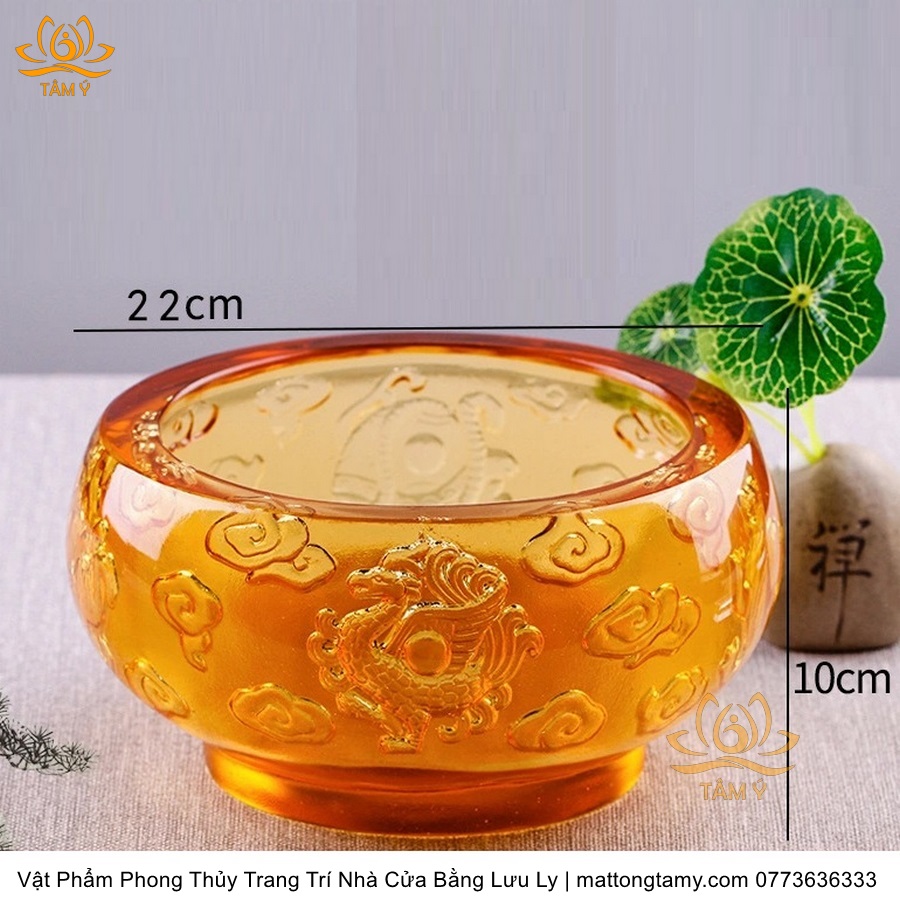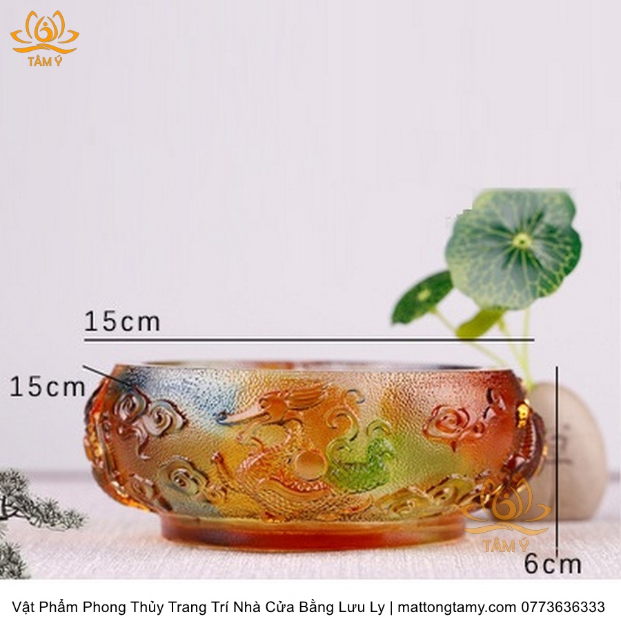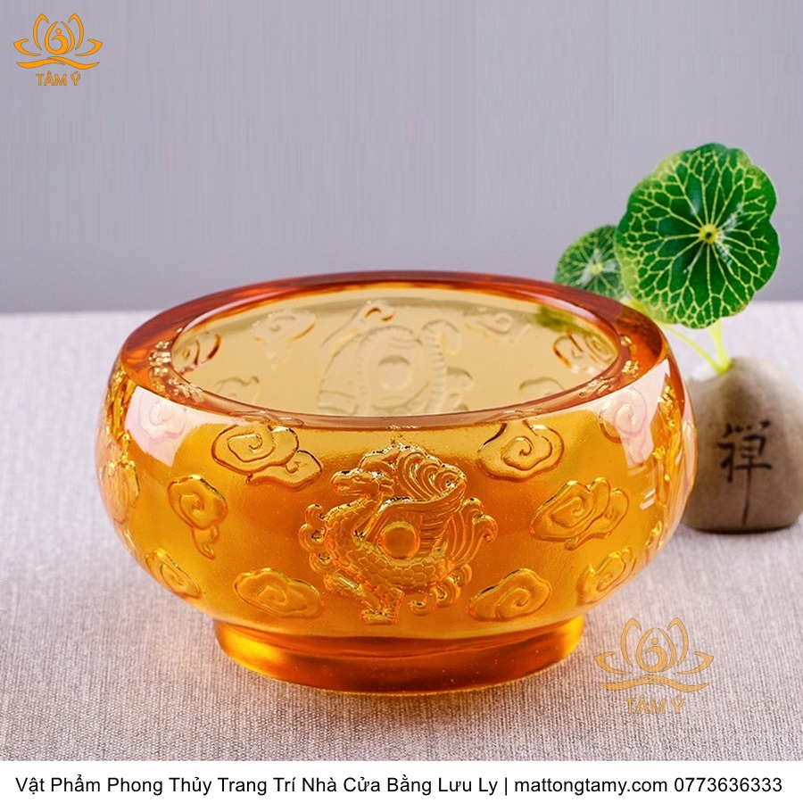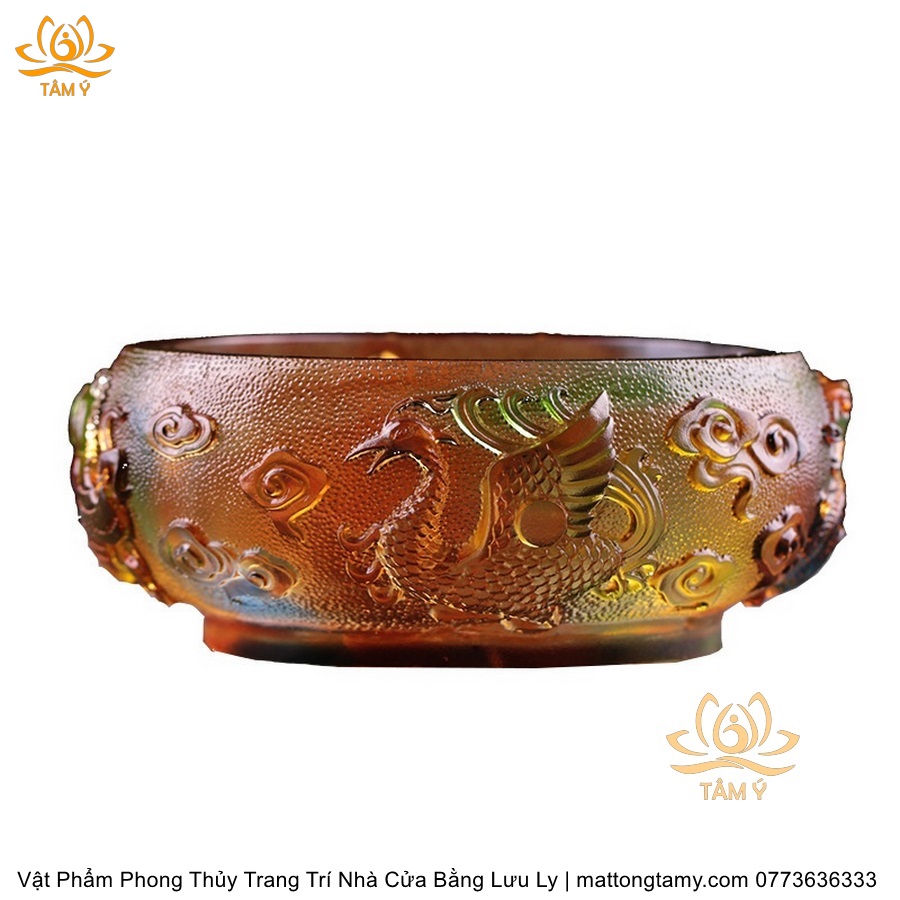 Chậu - Bát Khắc Chìm - Nổi Hình Rồng Bằng Lưu Ly Cao Cấp Trang Trí Nhà Cửa Vật Phẩm Phong Thủy DTT195