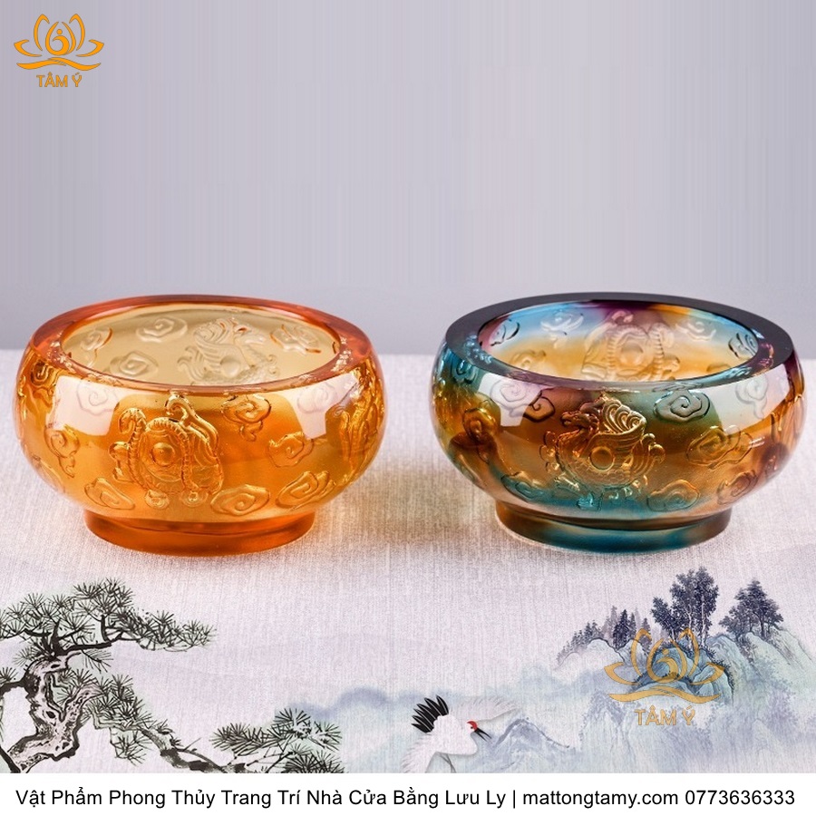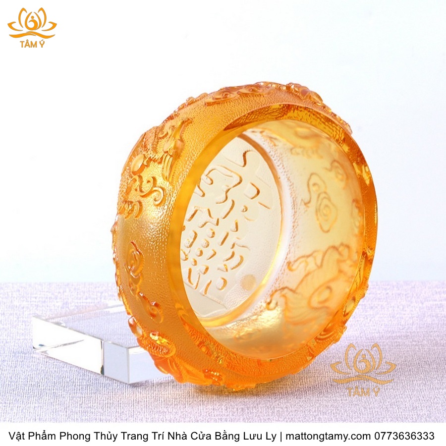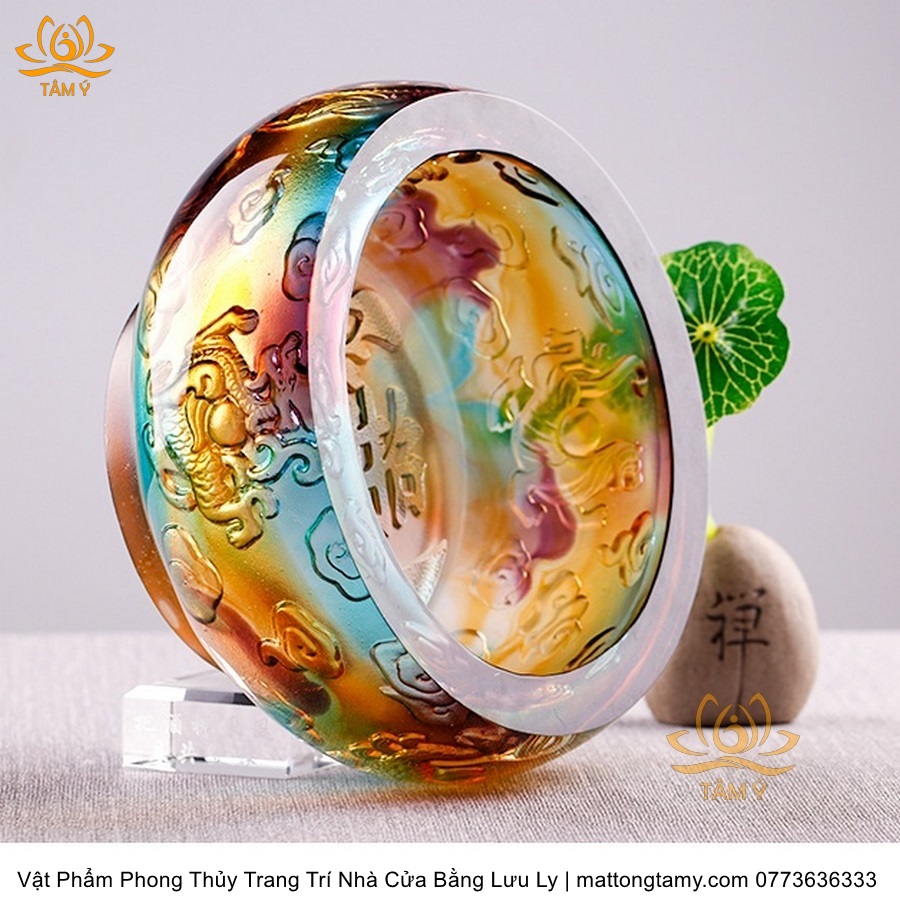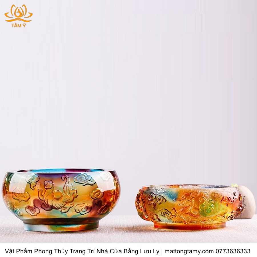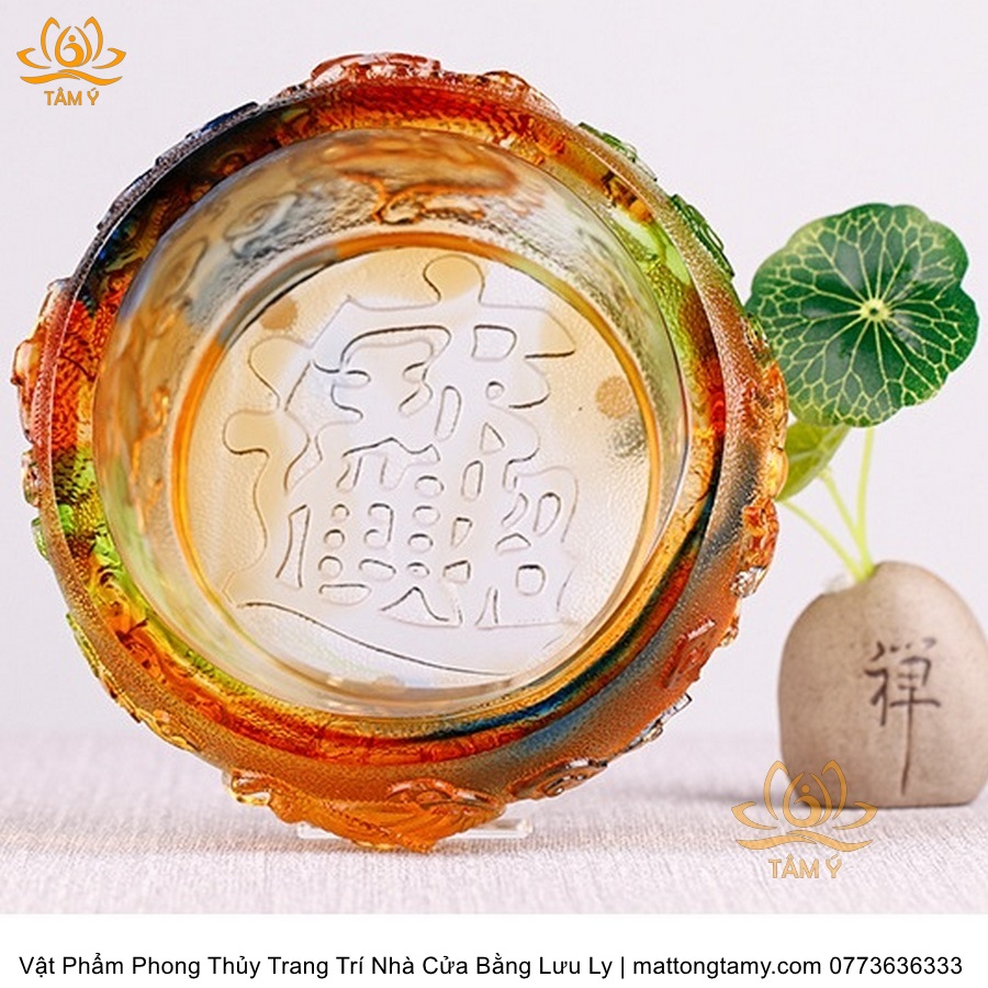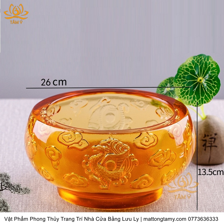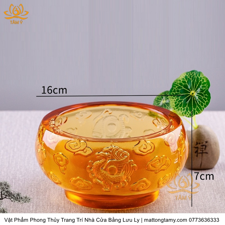 Chậu - Bát Khắc Chìm - Nổi Hình Rồng Bằng Lưu Ly Cao Cấp Trang Trí Nhà Cửa Vật Phẩm Phong Thủy DTT195