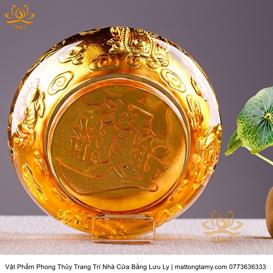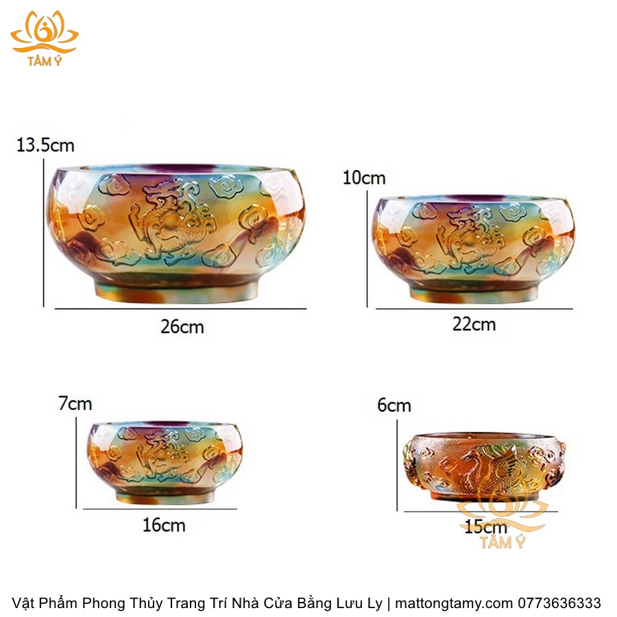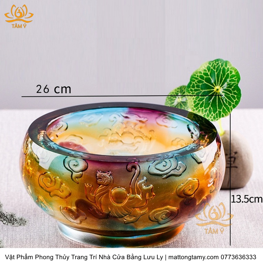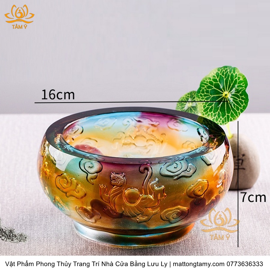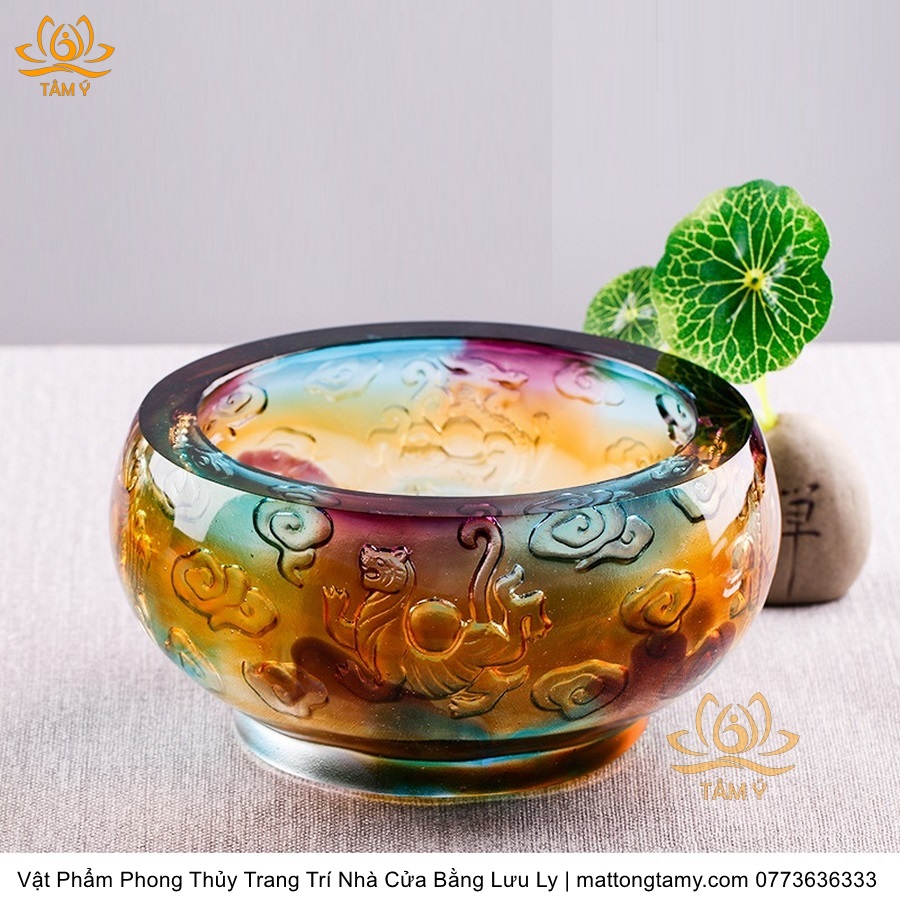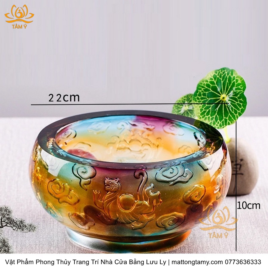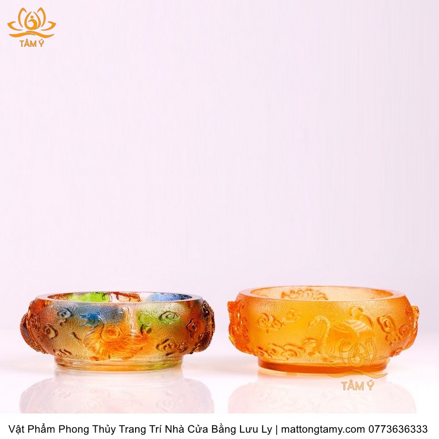 Chậu - Bát Khắc Chìm - Nổi Hình Rồng Bằng Lưu Ly Cao Cấp Trang Trí Nhà Cửa Vật Phẩm Phong Thủy DTT195