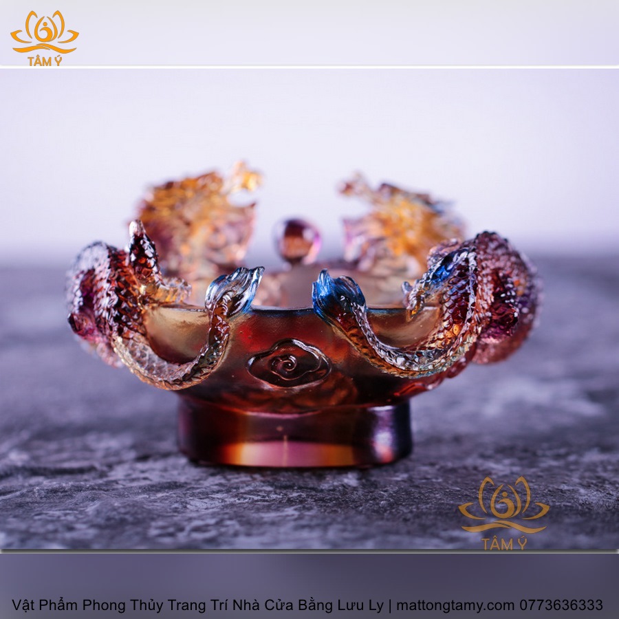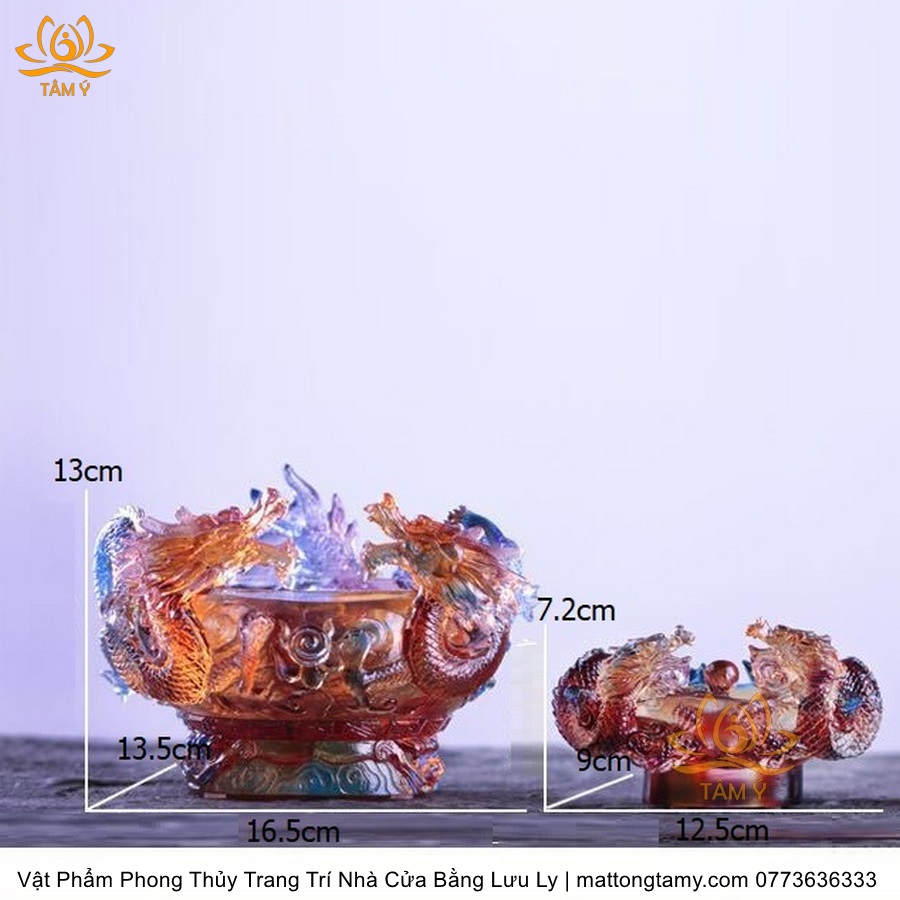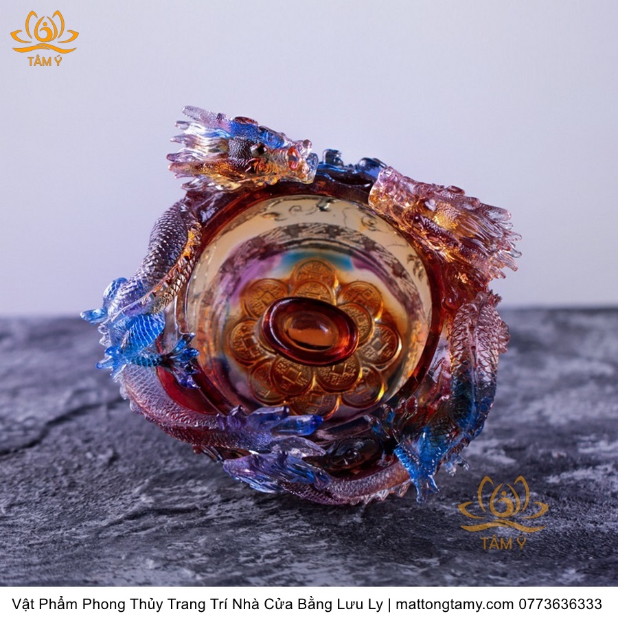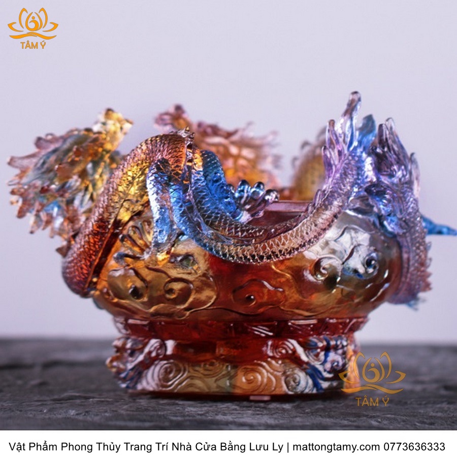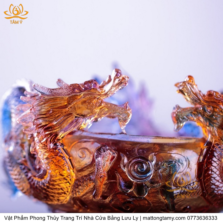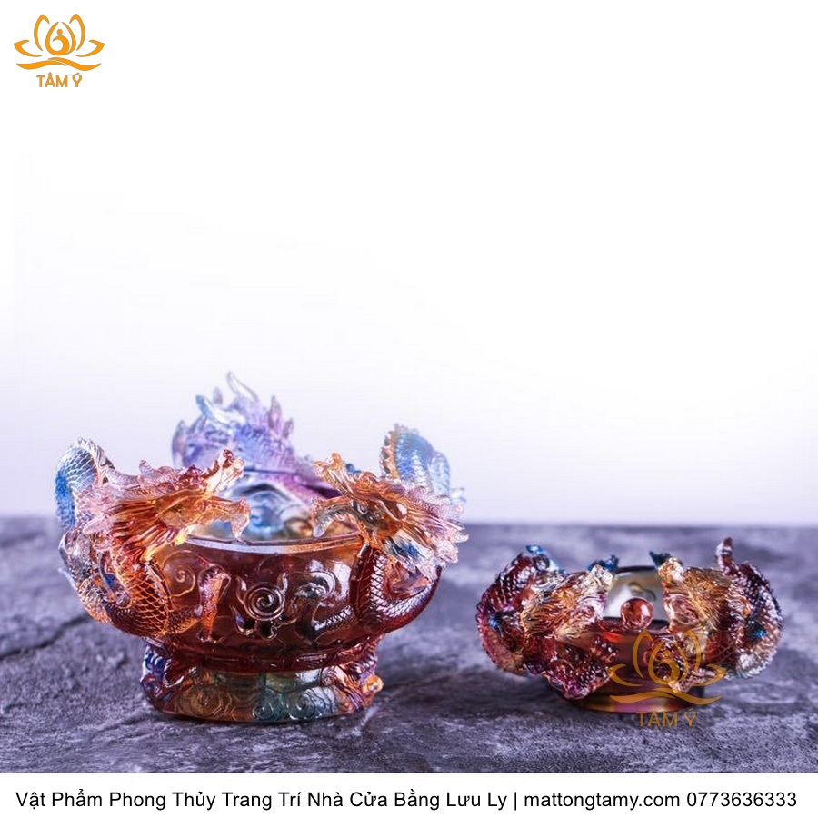 Chậu - Bát Khắc Hình Đôi Rồng Nhả Ngọc Ngũ Sắc Bằng Lưu Ly Cao Cấp Trang Trí Nhà Cửa Vật Phẩm Phong Thủy DTT247