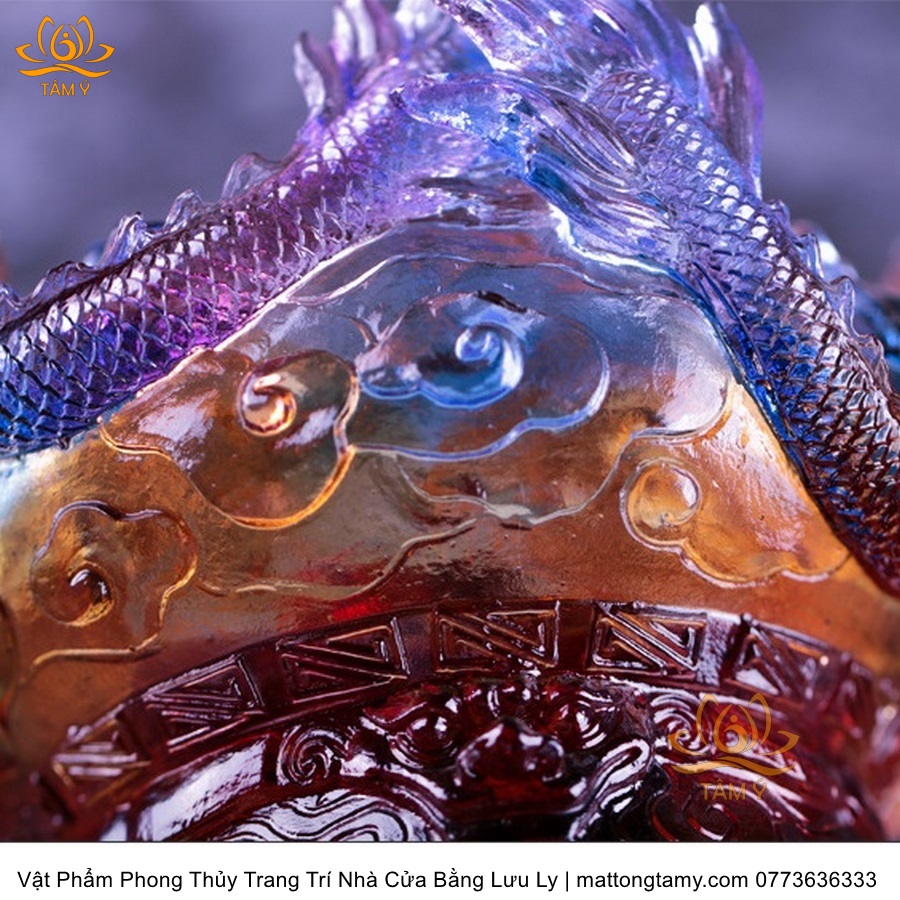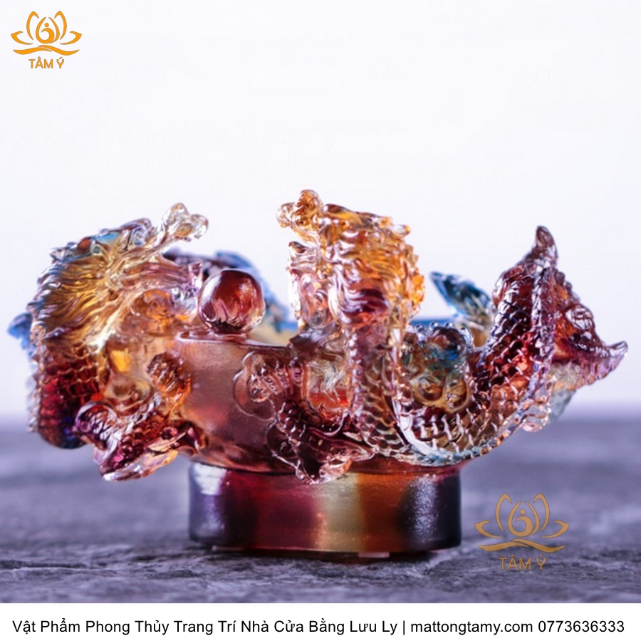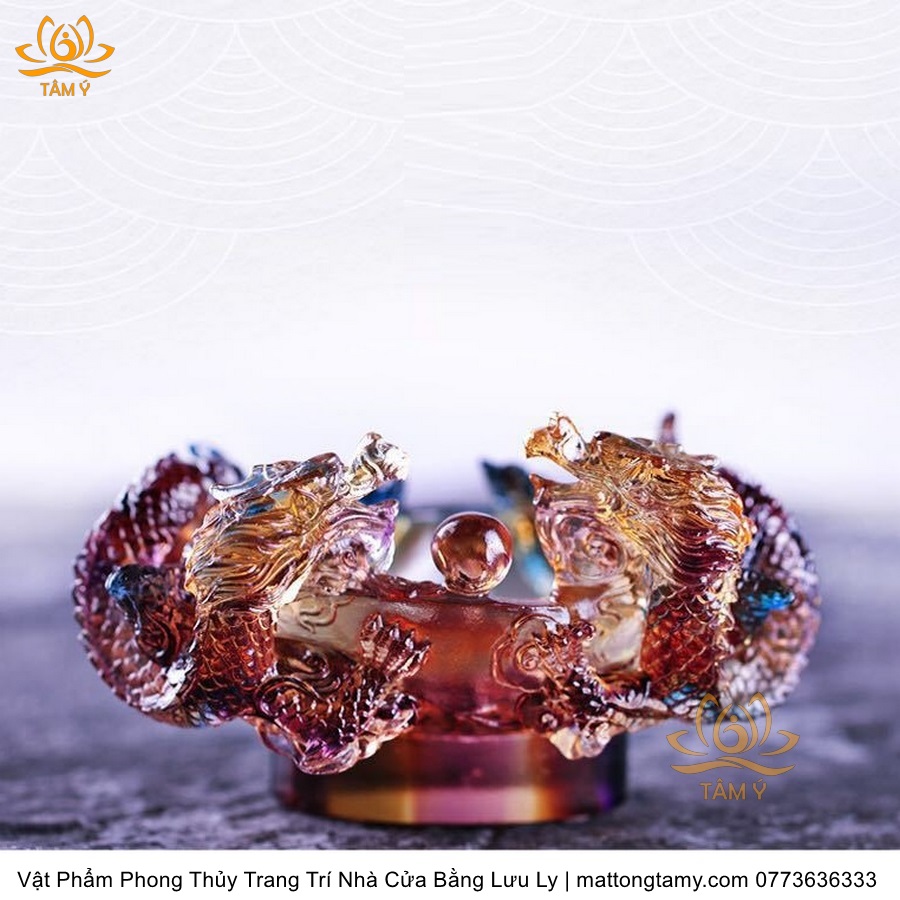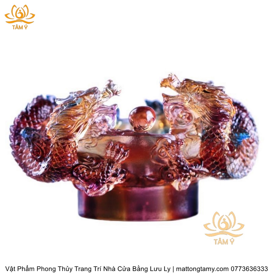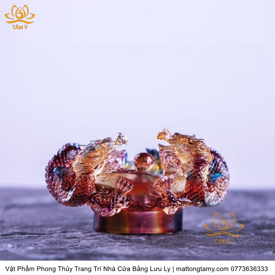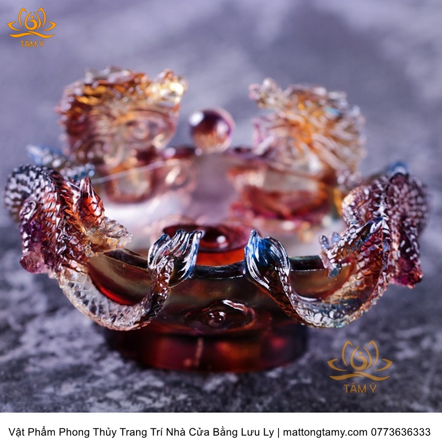 Chậu - Bát Khắc Hình Đôi Rồng Nhả Ngọc Ngũ Sắc Bằng Lưu Ly Cao Cấp Trang Trí Nhà Cửa Vật Phẩm Phong Thủy DTT247
