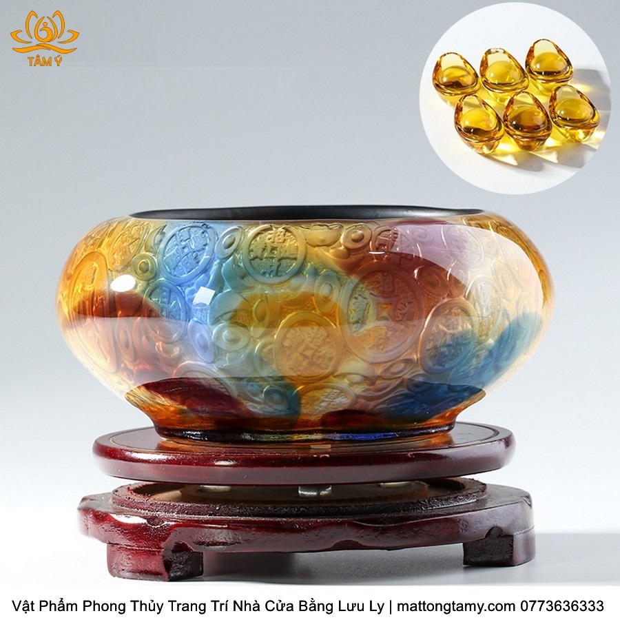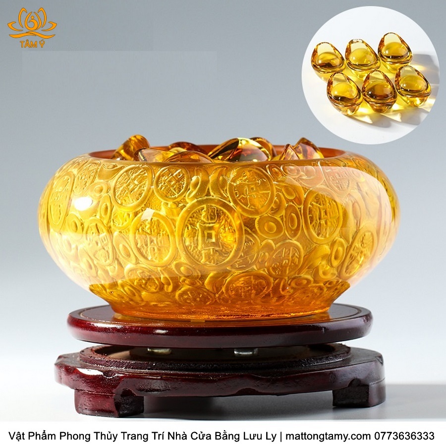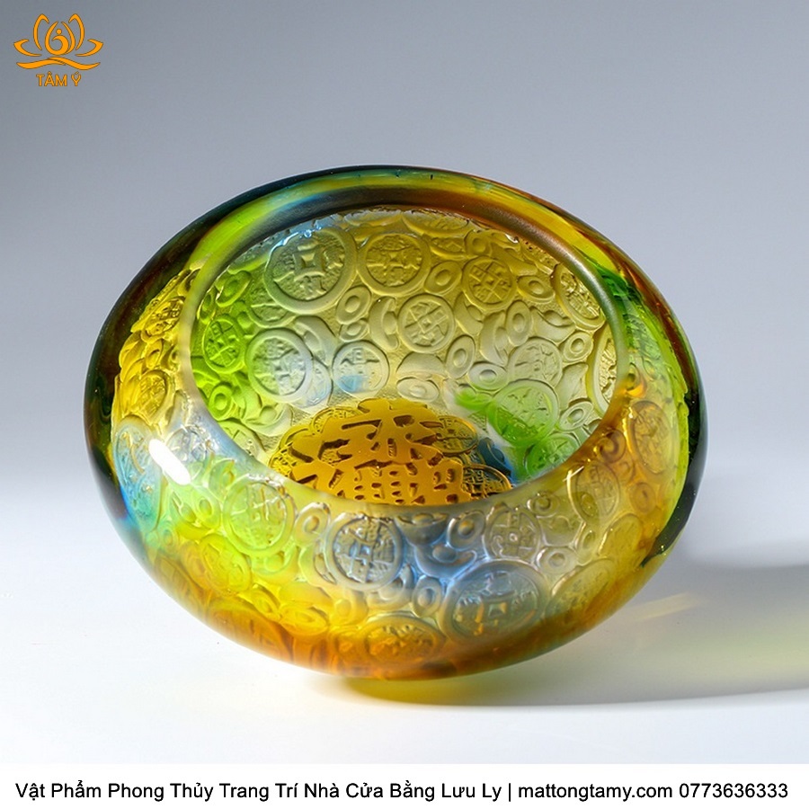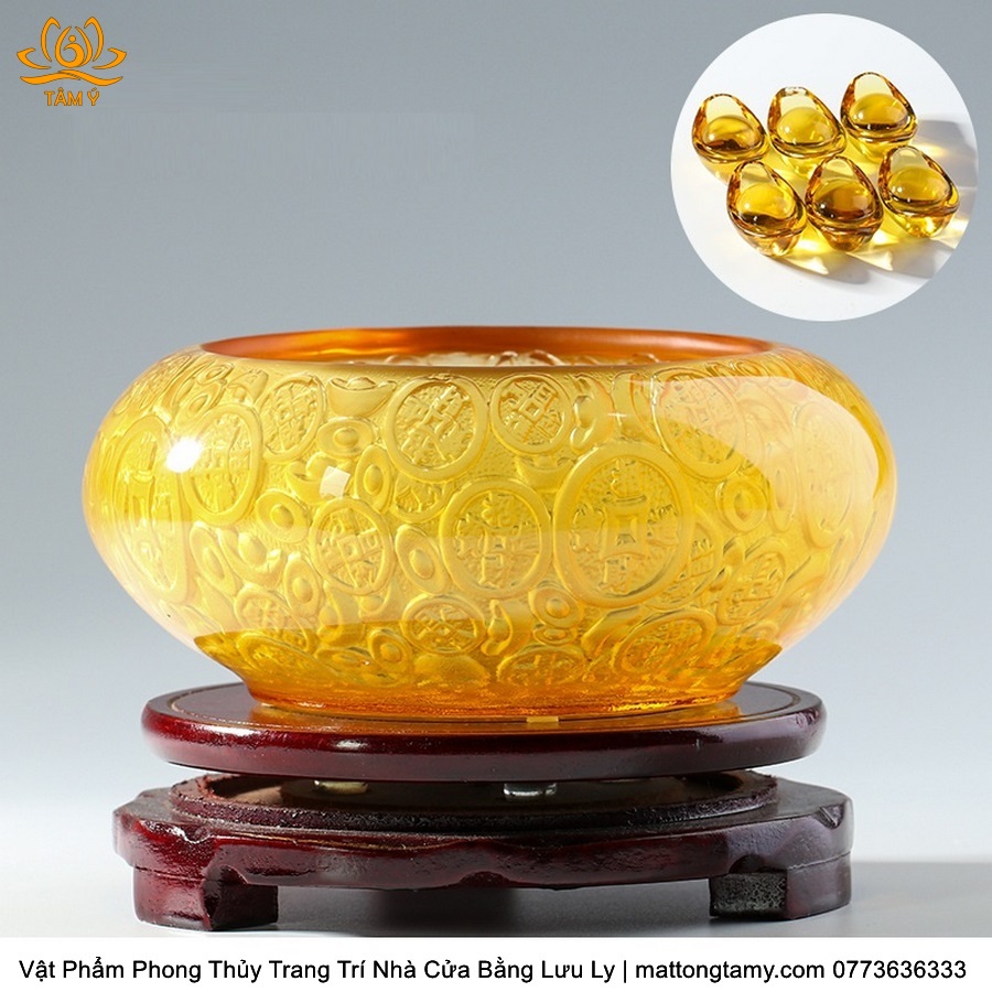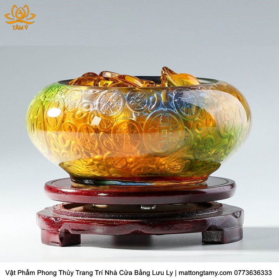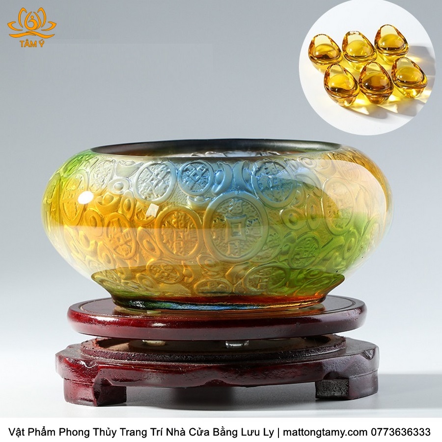 Chậu - Bát - Khắc Tiền Vàng Trang Trí Nhà Cửa Vật Phẩm Phong Thủy Bằng Lưu Ly Cao Cấp DTT133