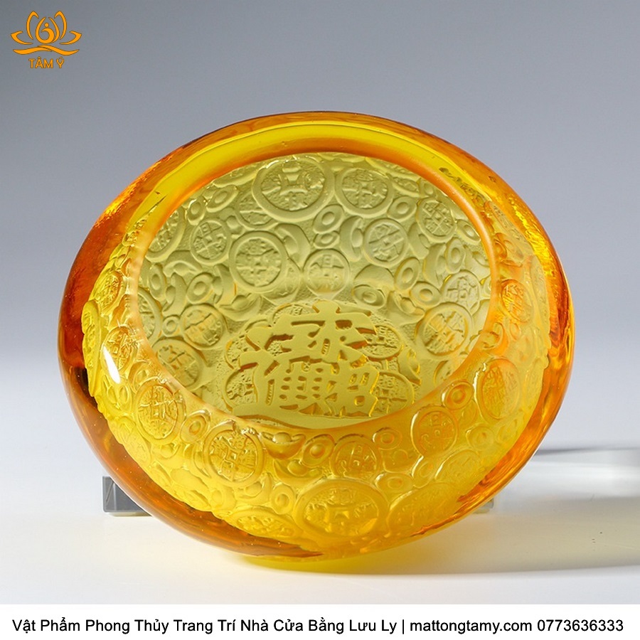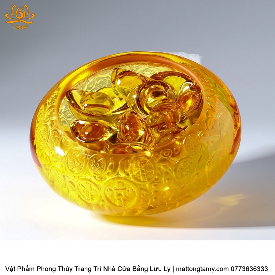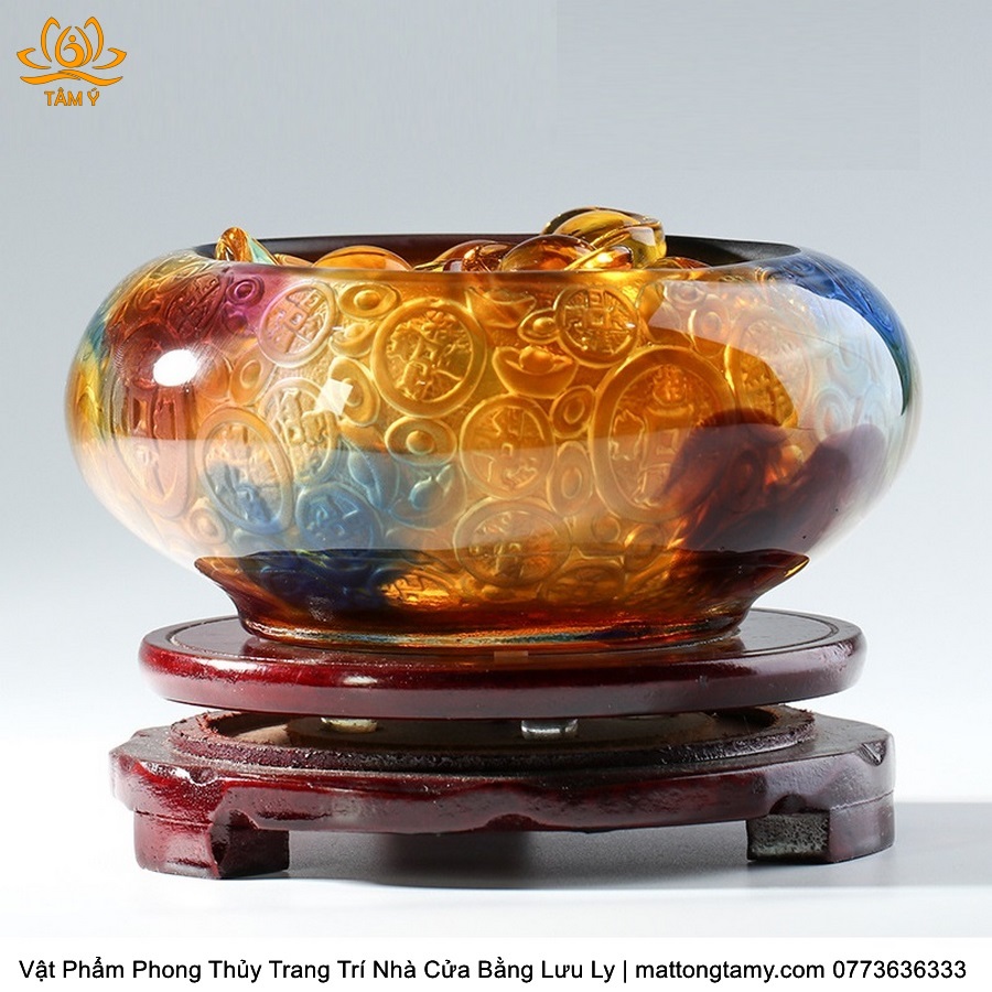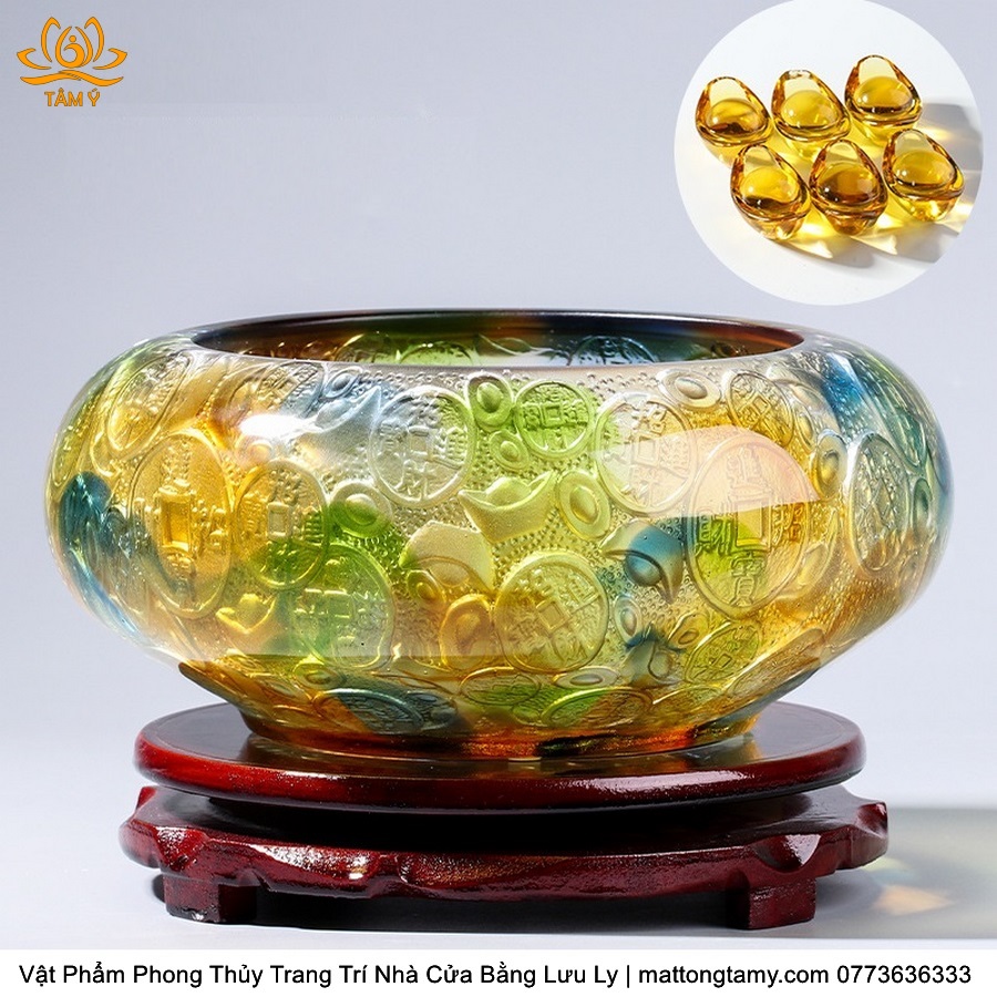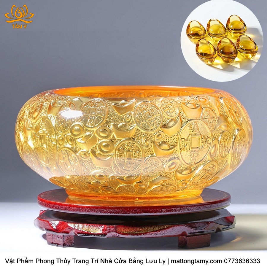 Chậu - Bát - Khắc Tiền Vàng Trang Trí Nhà Cửa Vật Phẩm Phong Thủy Bằng Lưu Ly Cao Cấp DTT133