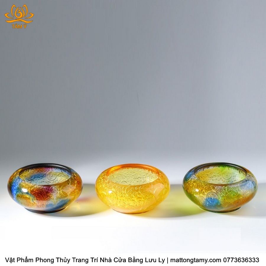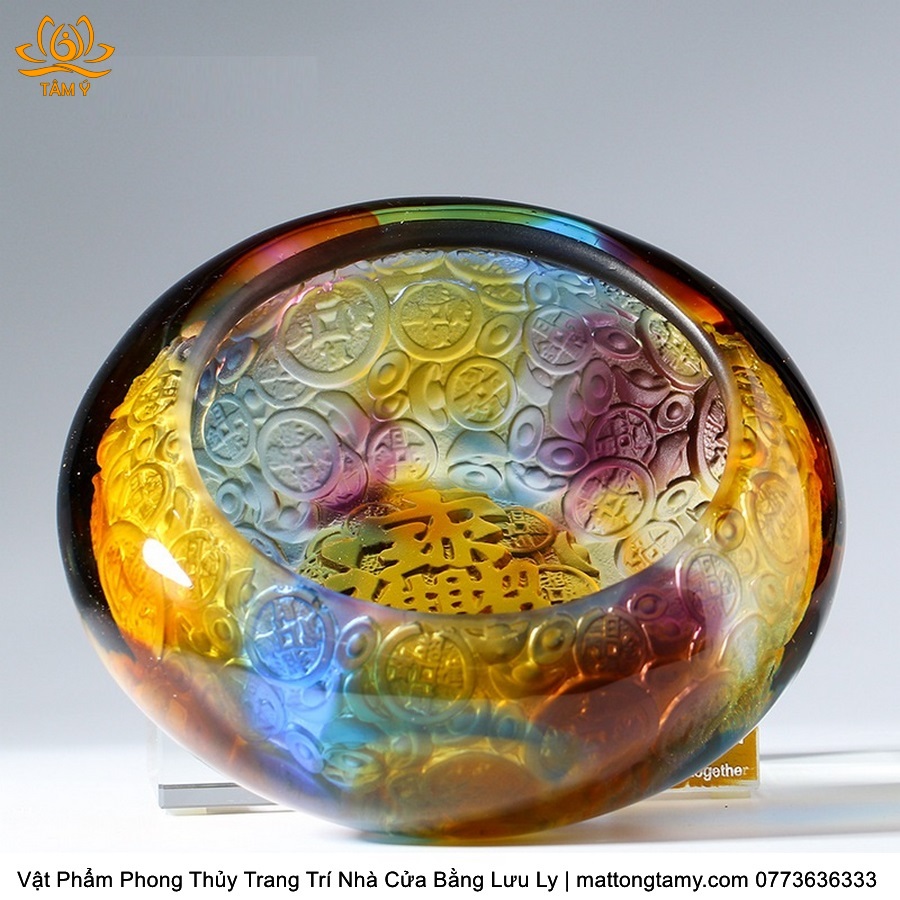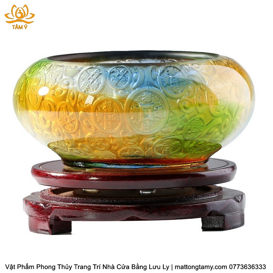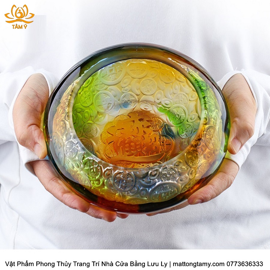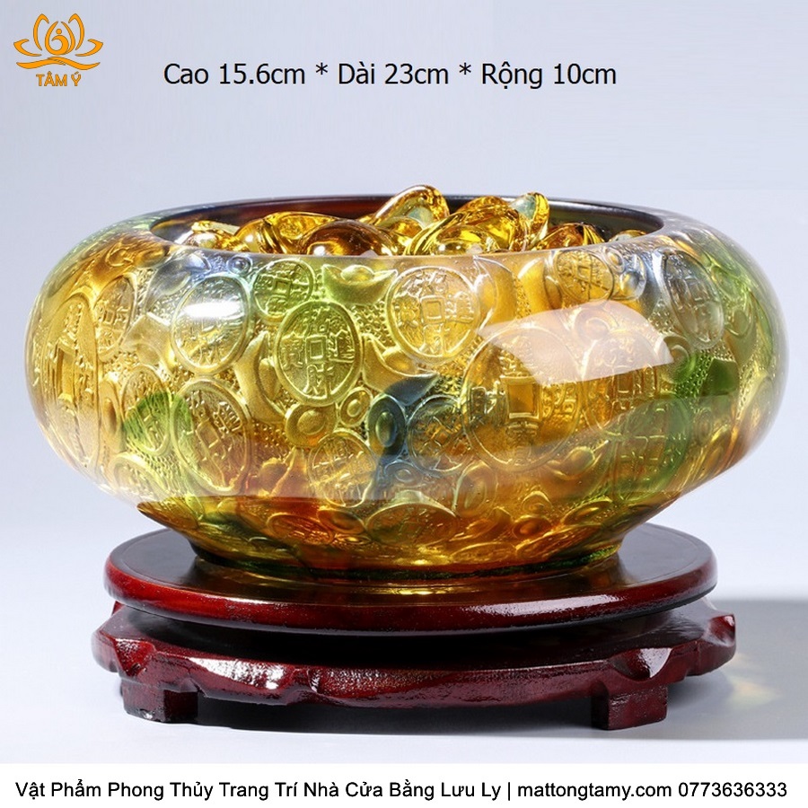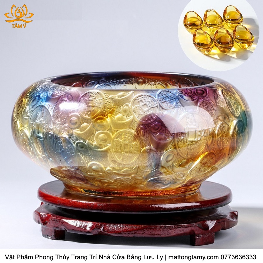 Chậu - Bát - Khắc Tiền Vàng Trang Trí Nhà Cửa Vật Phẩm Phong Thủy Bằng Lưu Ly Cao Cấp DTT133