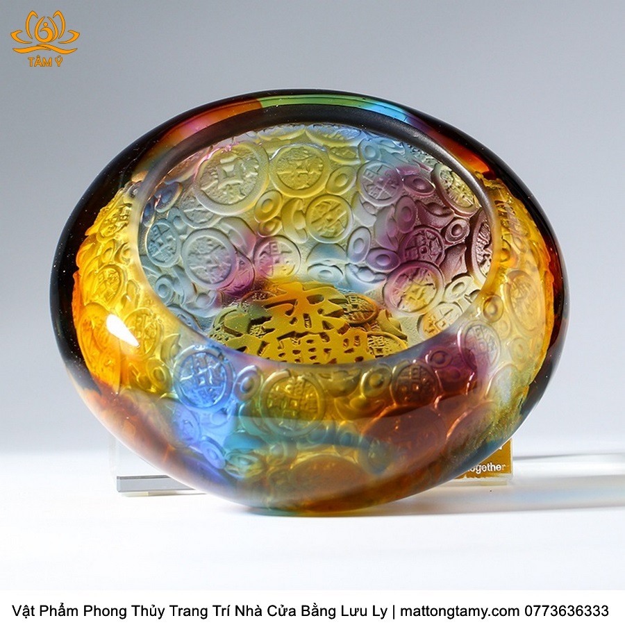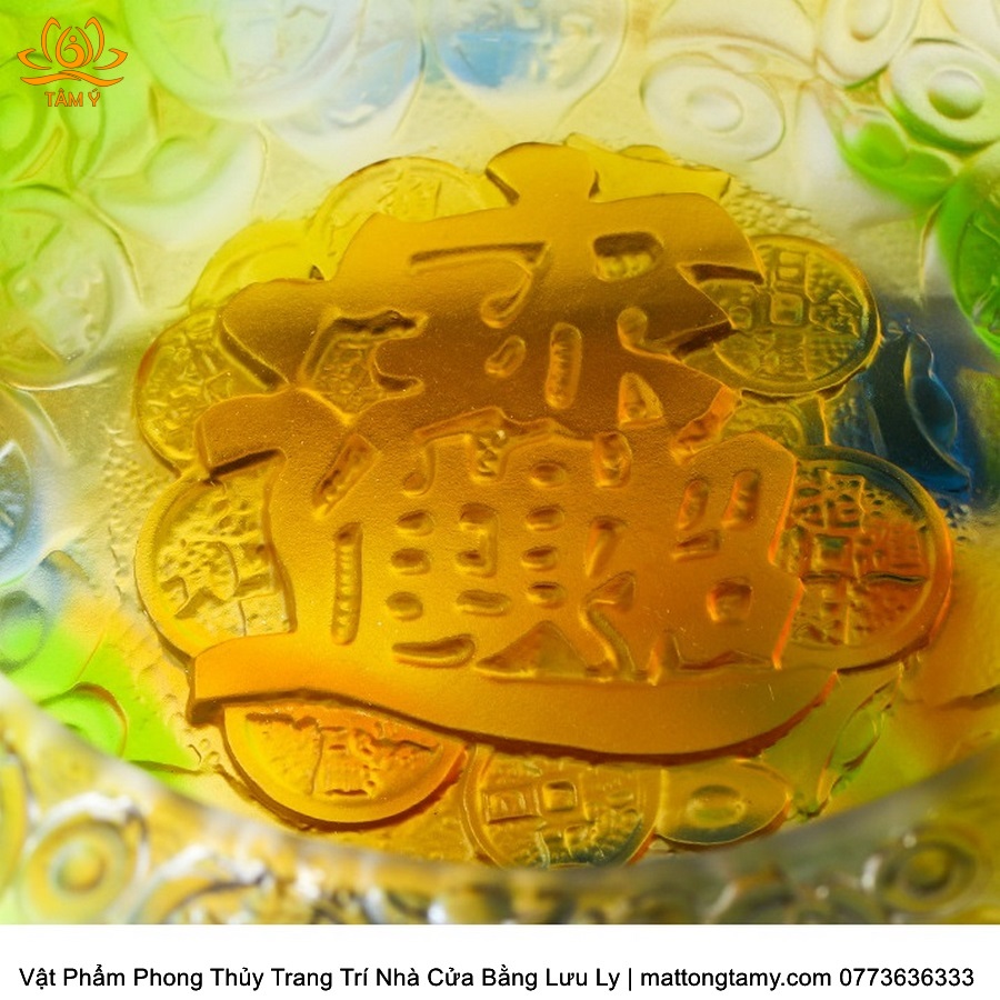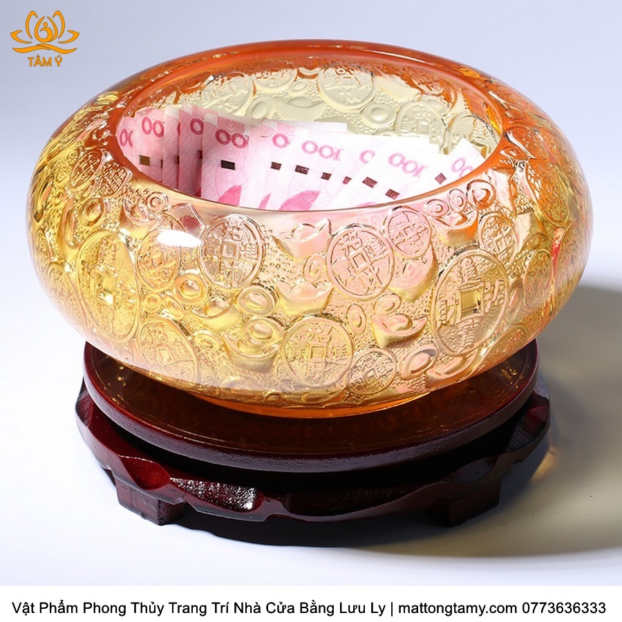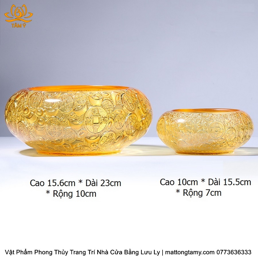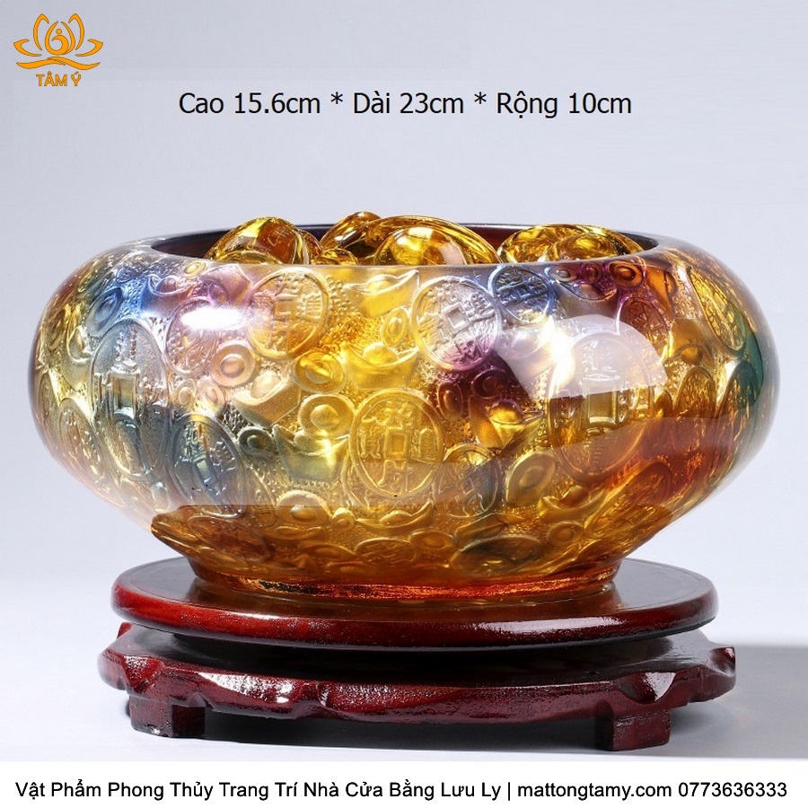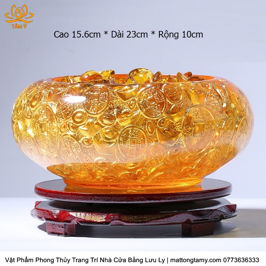 Chậu - Bát - Khắc Tiền Vàng Trang Trí Nhà Cửa Vật Phẩm Phong Thủy Bằng Lưu Ly Cao Cấp DTT133