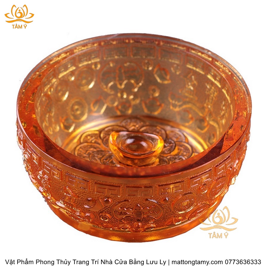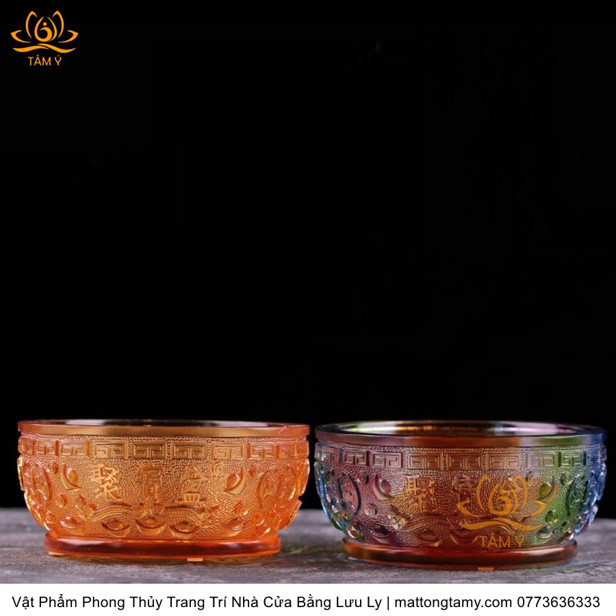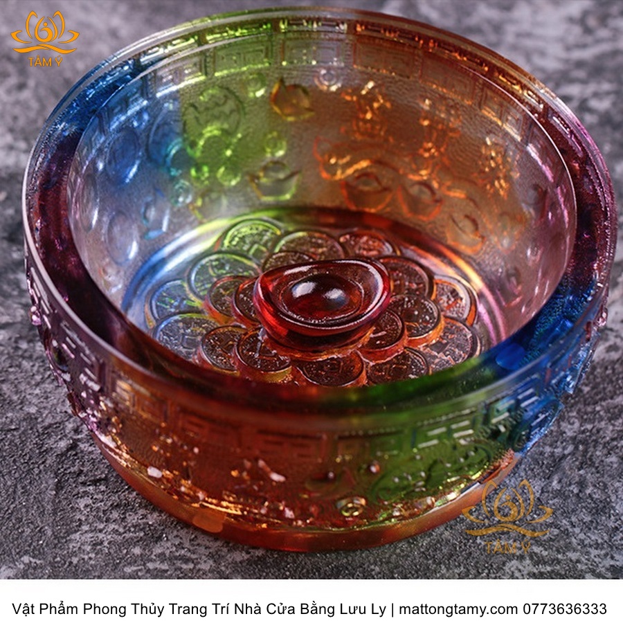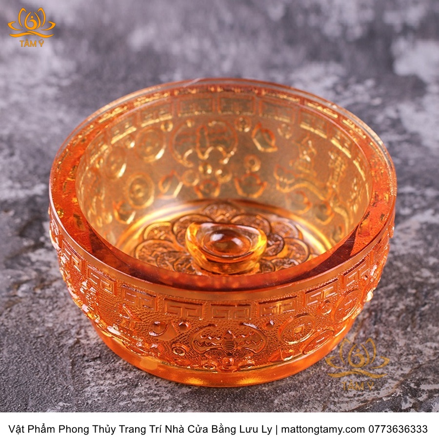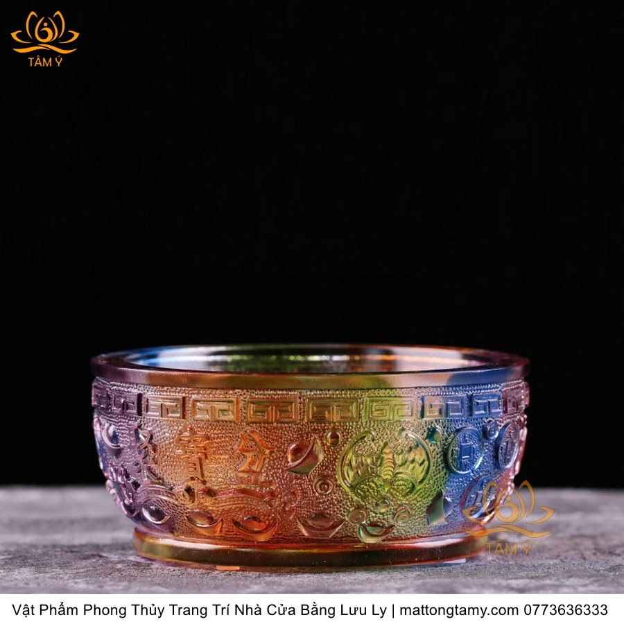Chậu - Bát - Khắc Tiền Vàng Trang Trí Nhà Cửa Vật Phẩm Phong Thủy Bằng Lưu Ly Cao Cấp DTT141