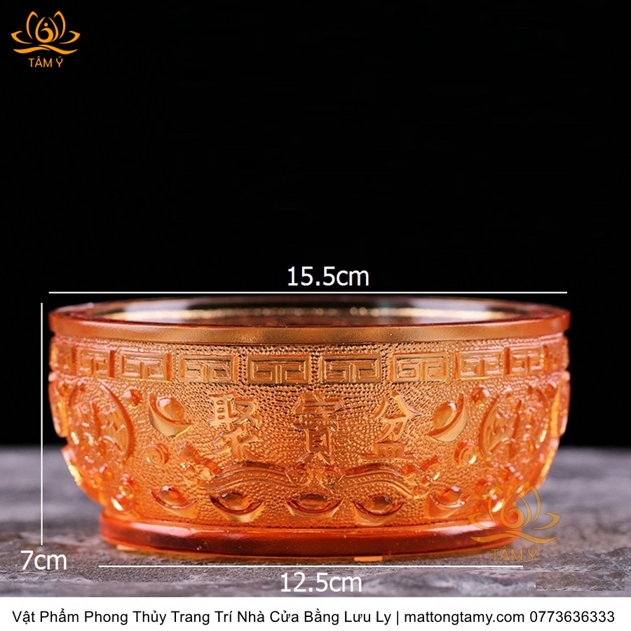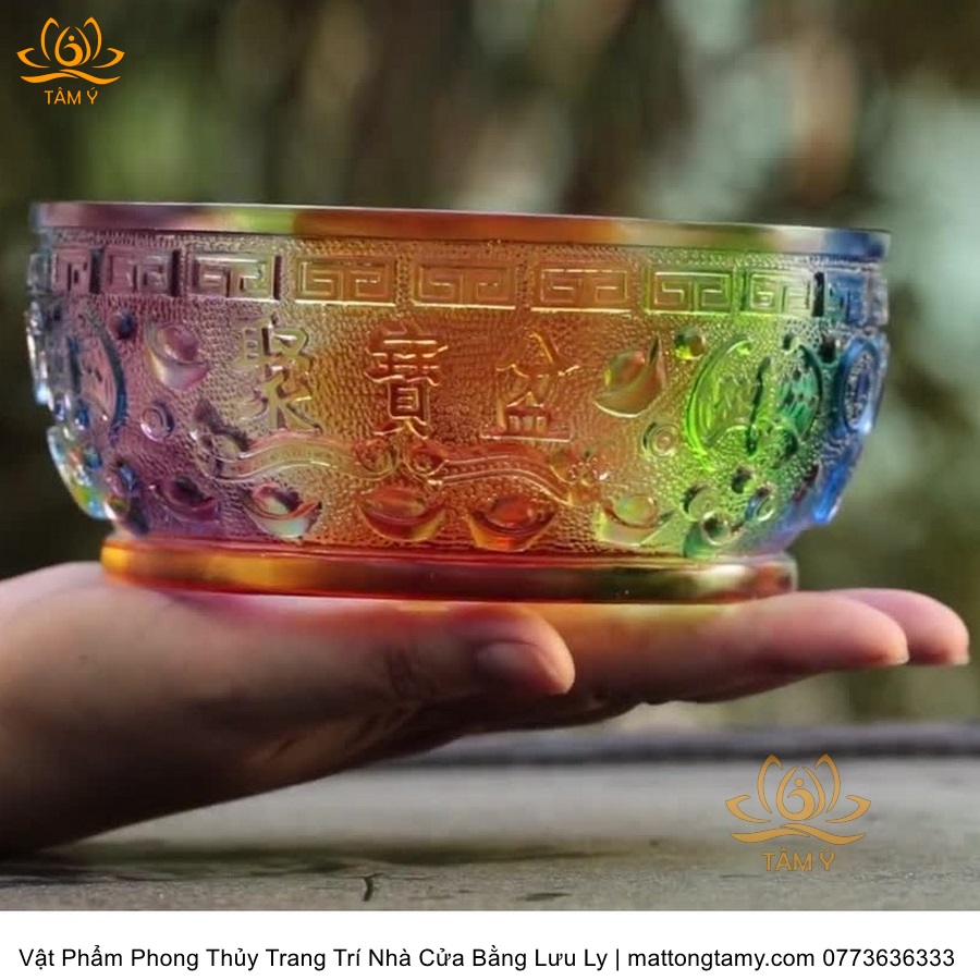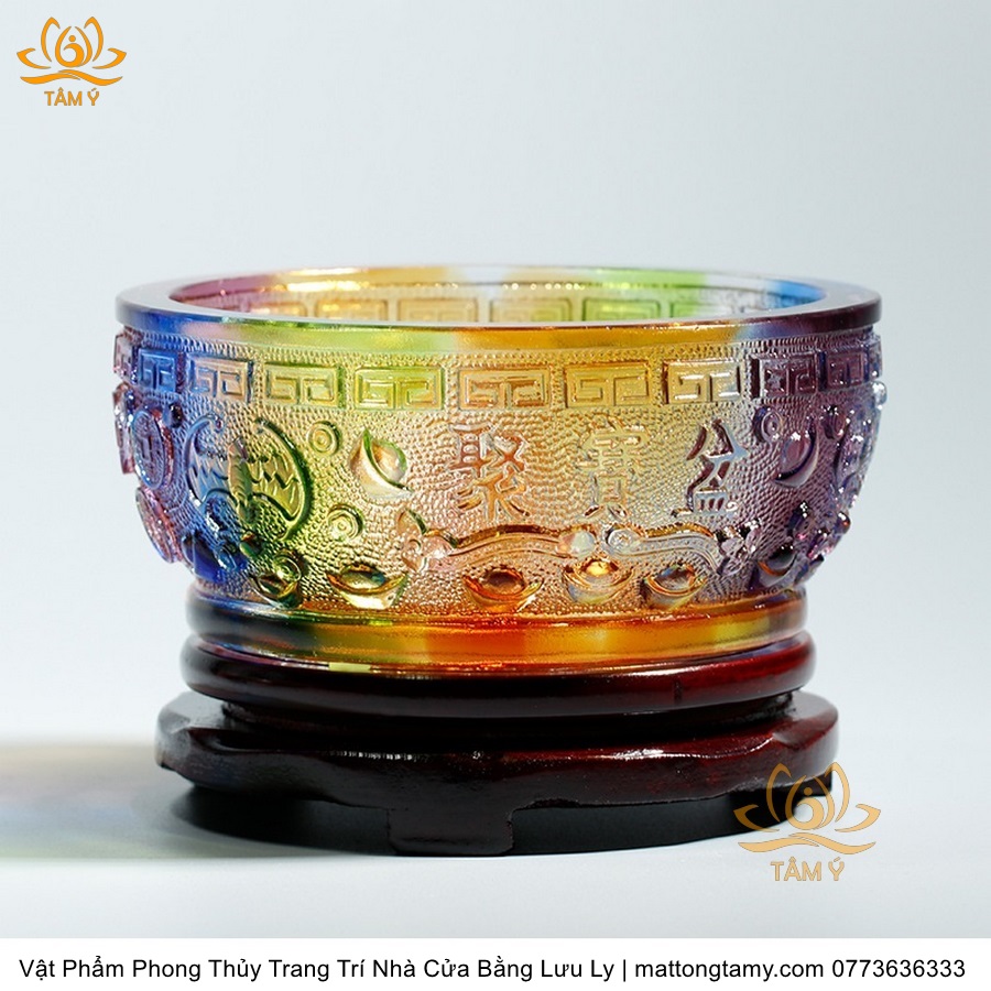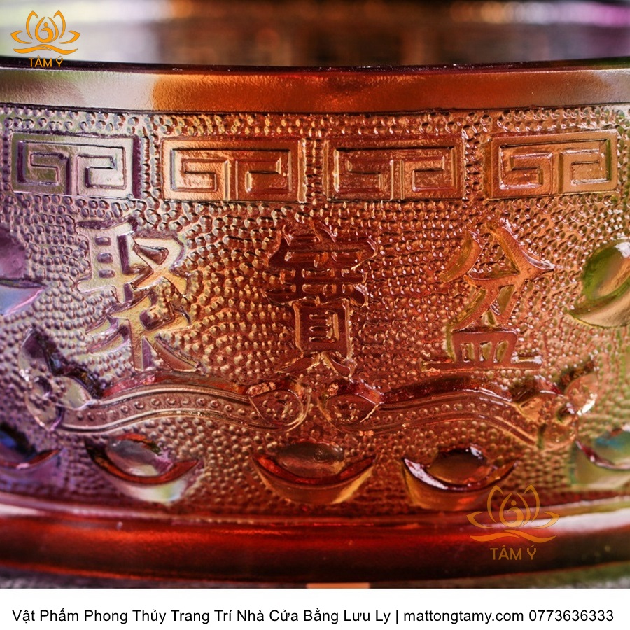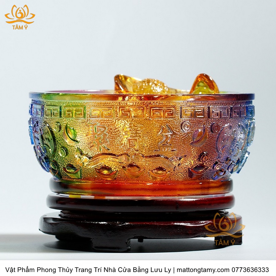 Chậu - Bát - Khắc Tiền Vàng Trang Trí Nhà Cửa Vật Phẩm Phong Thủy Bằng Lưu Ly Cao Cấp DTT141