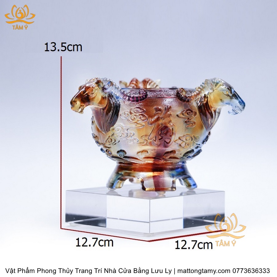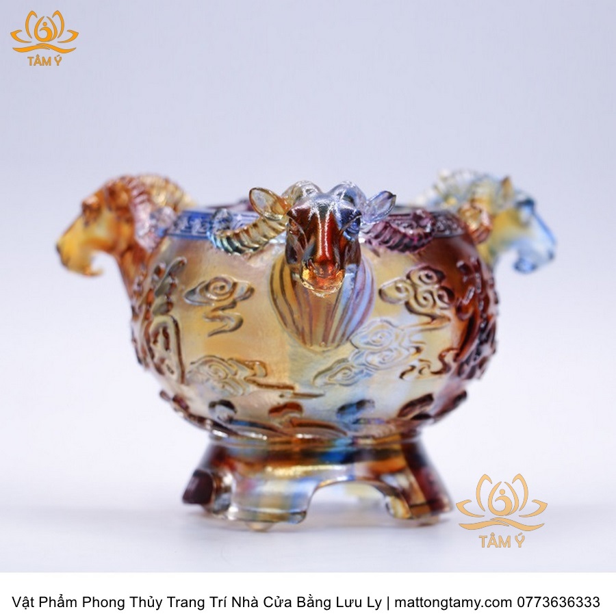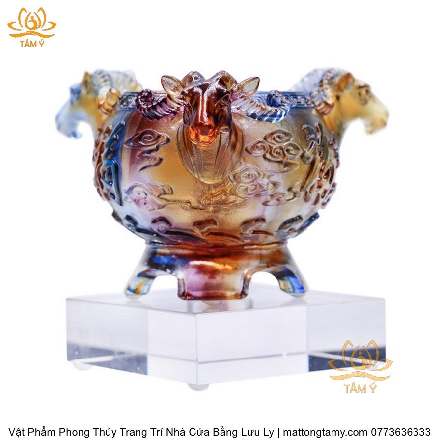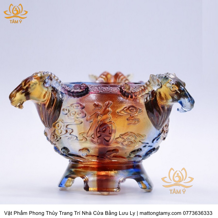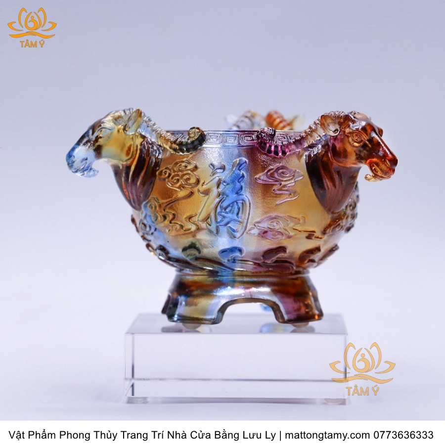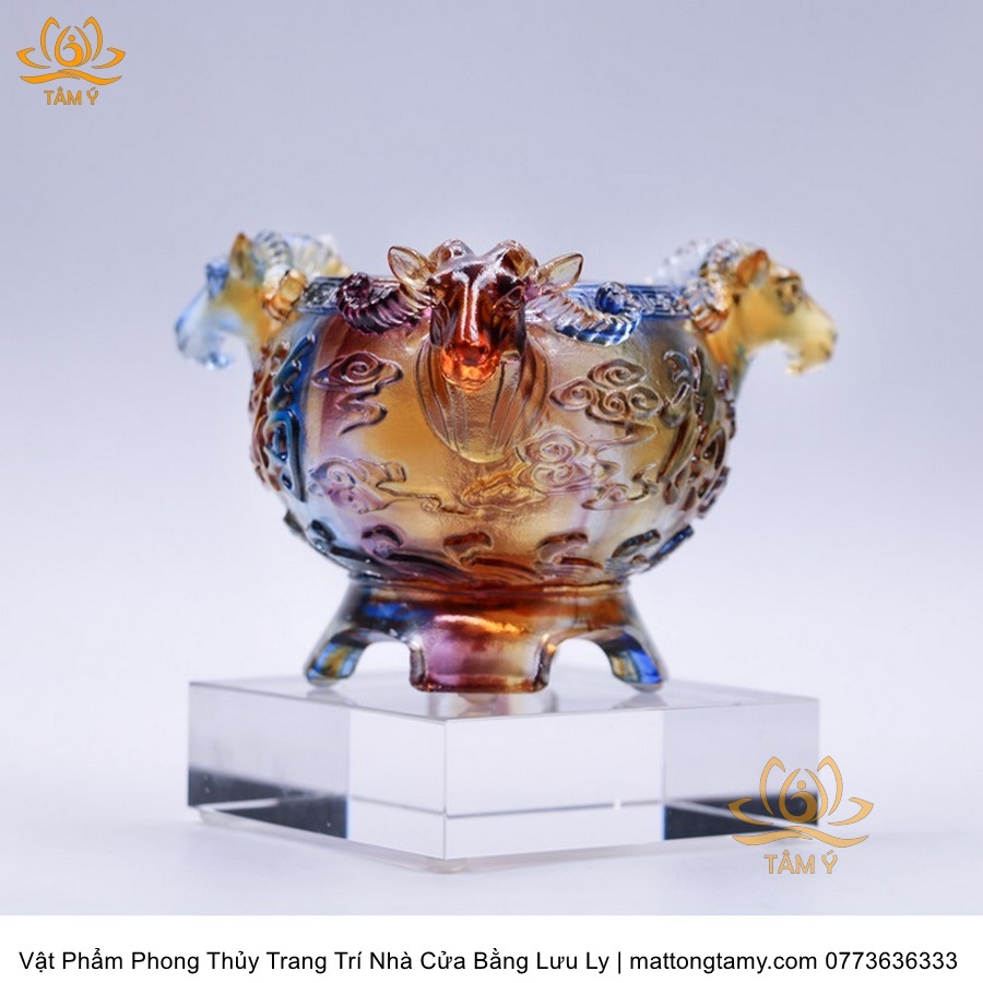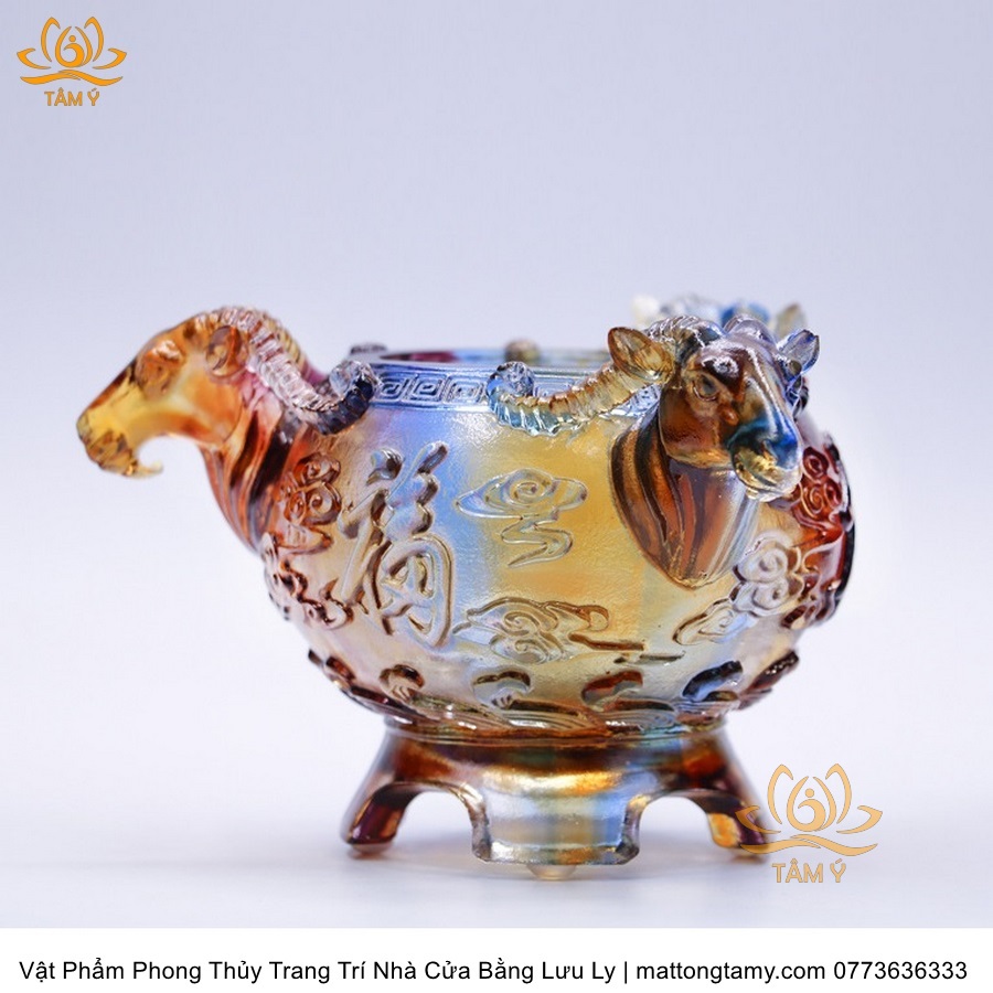 Chậu - Bát - Lư Khắc Quai Hình Đầu Dê Bằng Lưu Ly Cao Cấp Trang Trí Nhà Cửa Vật Phẩm Phong Thủy DTT126