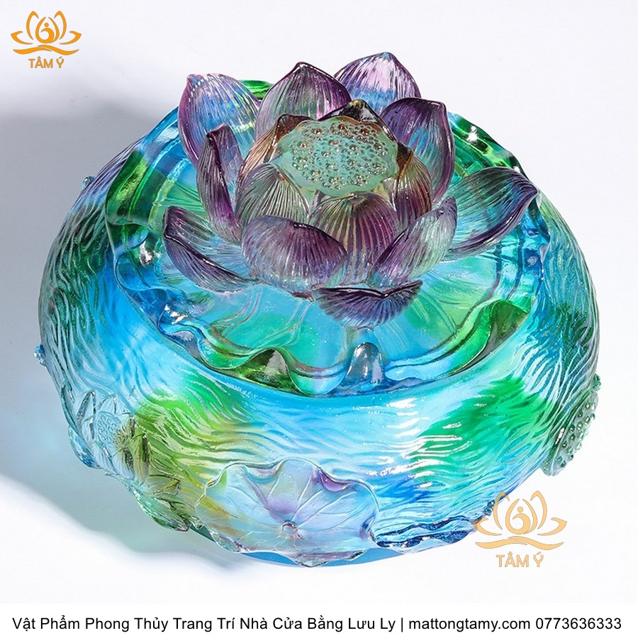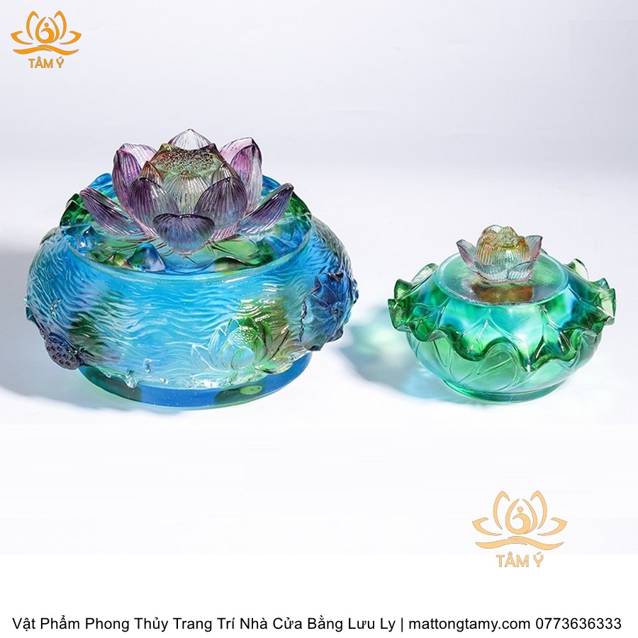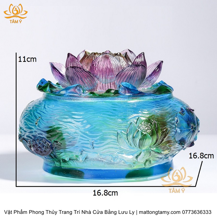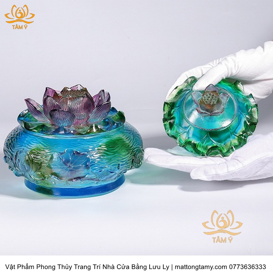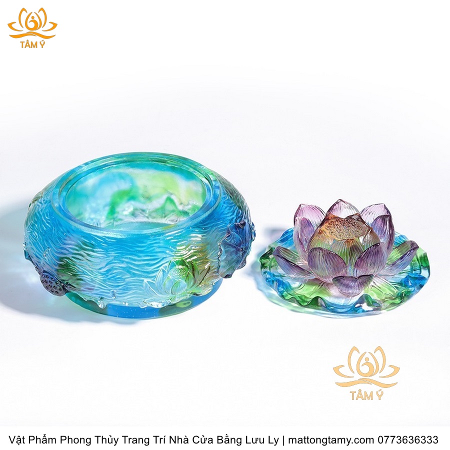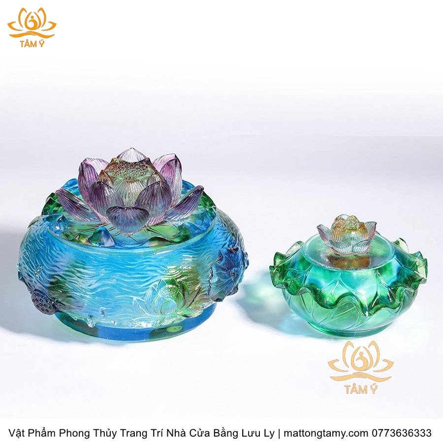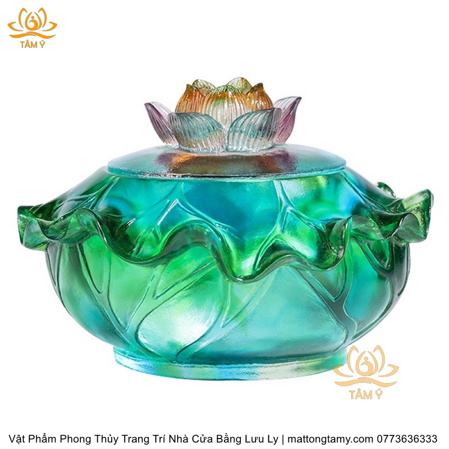 Chậu - Bát Nắp Bằng Khắc Thủy Sinh Có Lưu Ly Cao Cấp Trang Trí Nhà Cửa Vật Phẩm Phong Thủy DTT191