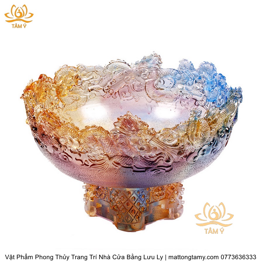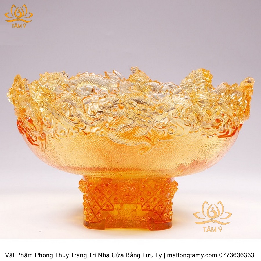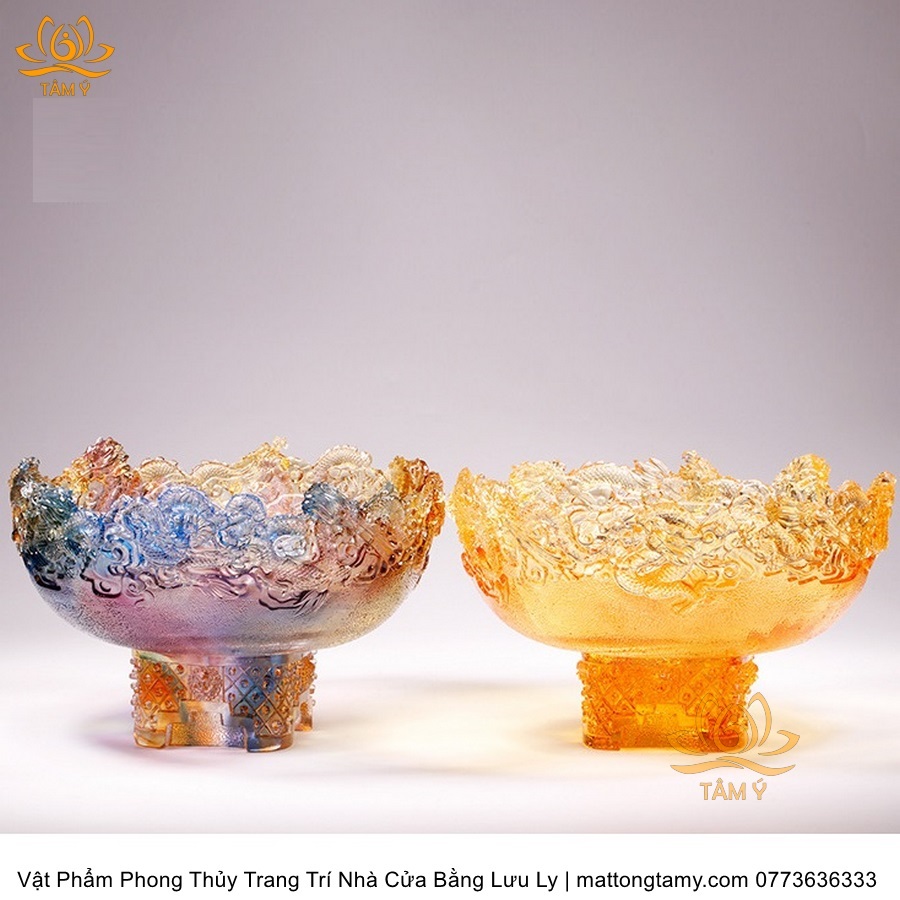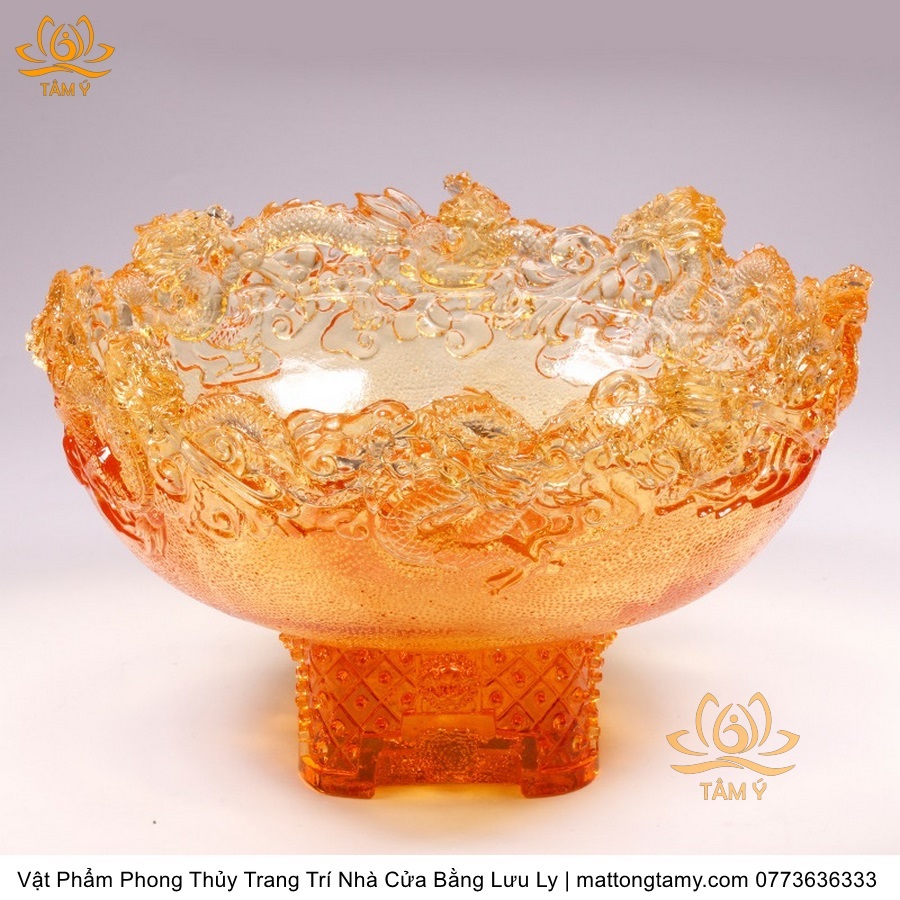 Chậu Khắc Rồng Vật Phẩm Phong Thủy Trang Trí Nhà Cửa Bằng Lưu Ly Cao Cấp, DTT54