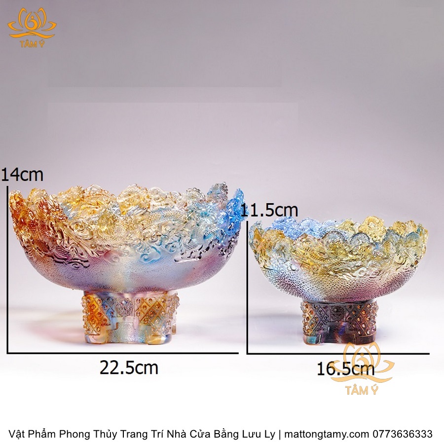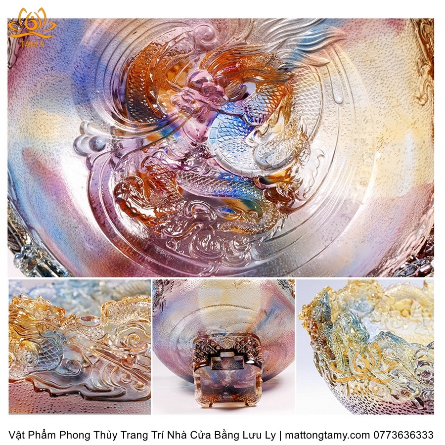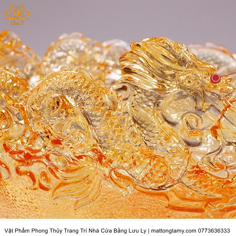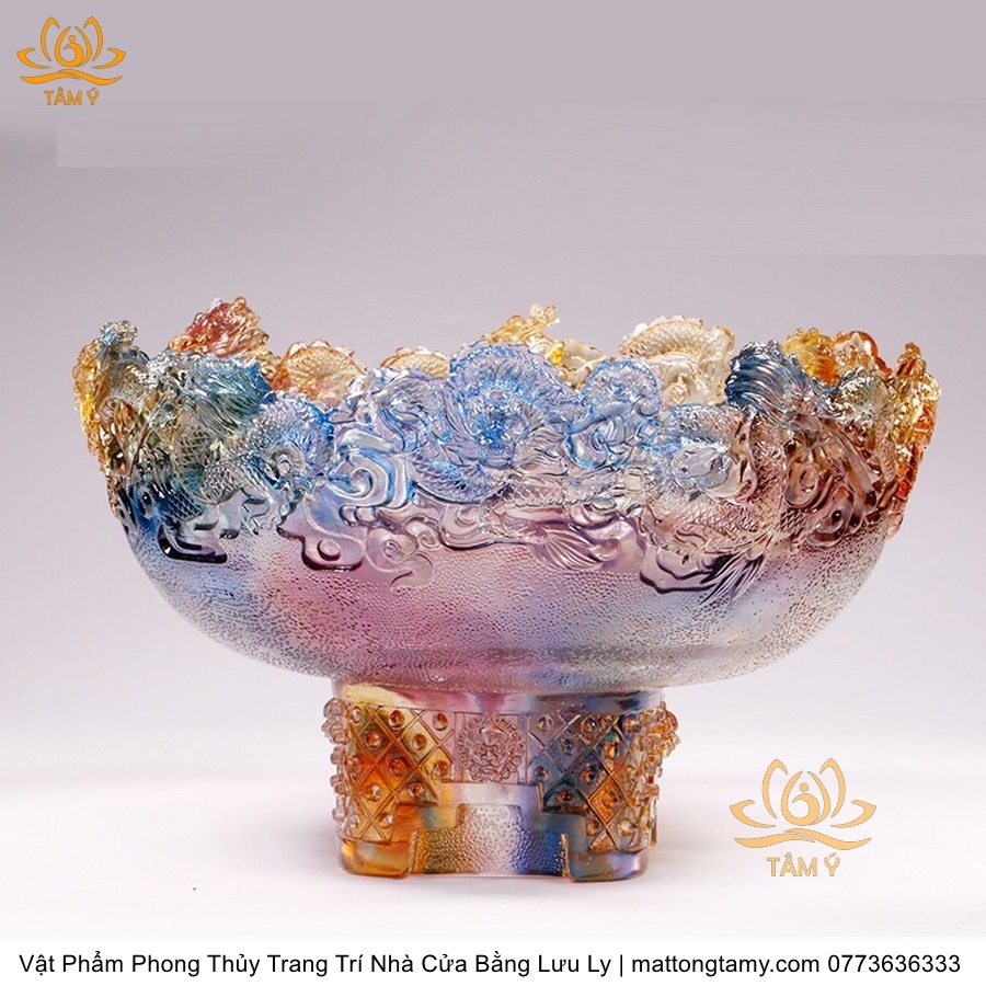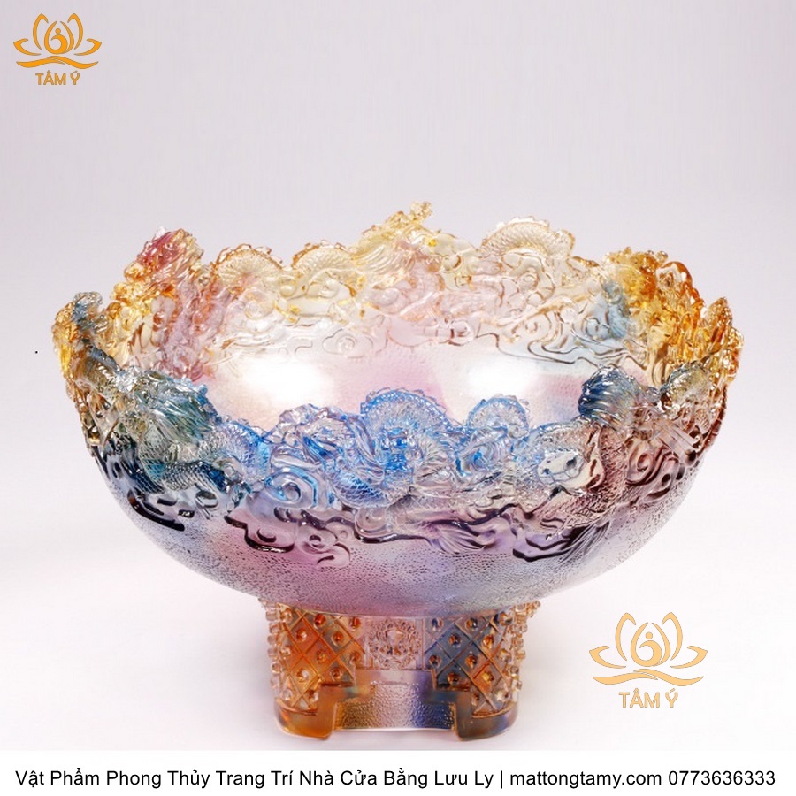 Chậu Khắc Rồng Vật Phẩm Phong Thủy Trang Trí Nhà Cửa Bằng Lưu Ly Cao Cấp, DTT54