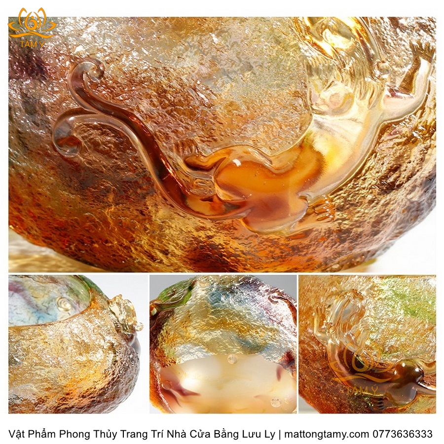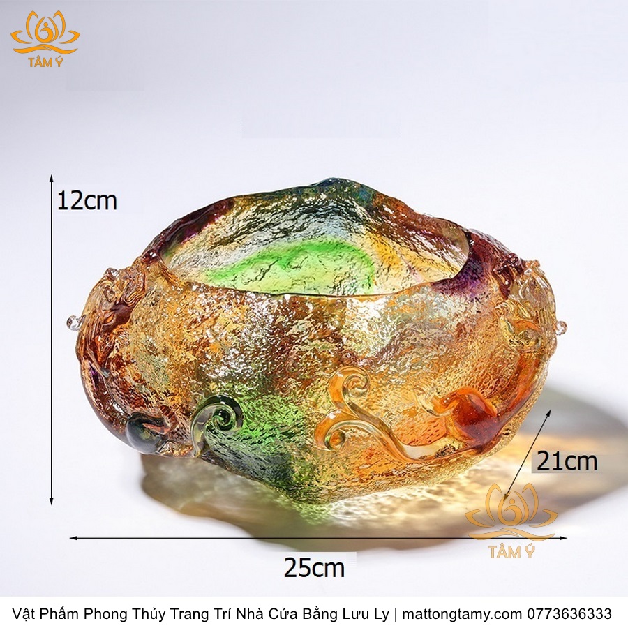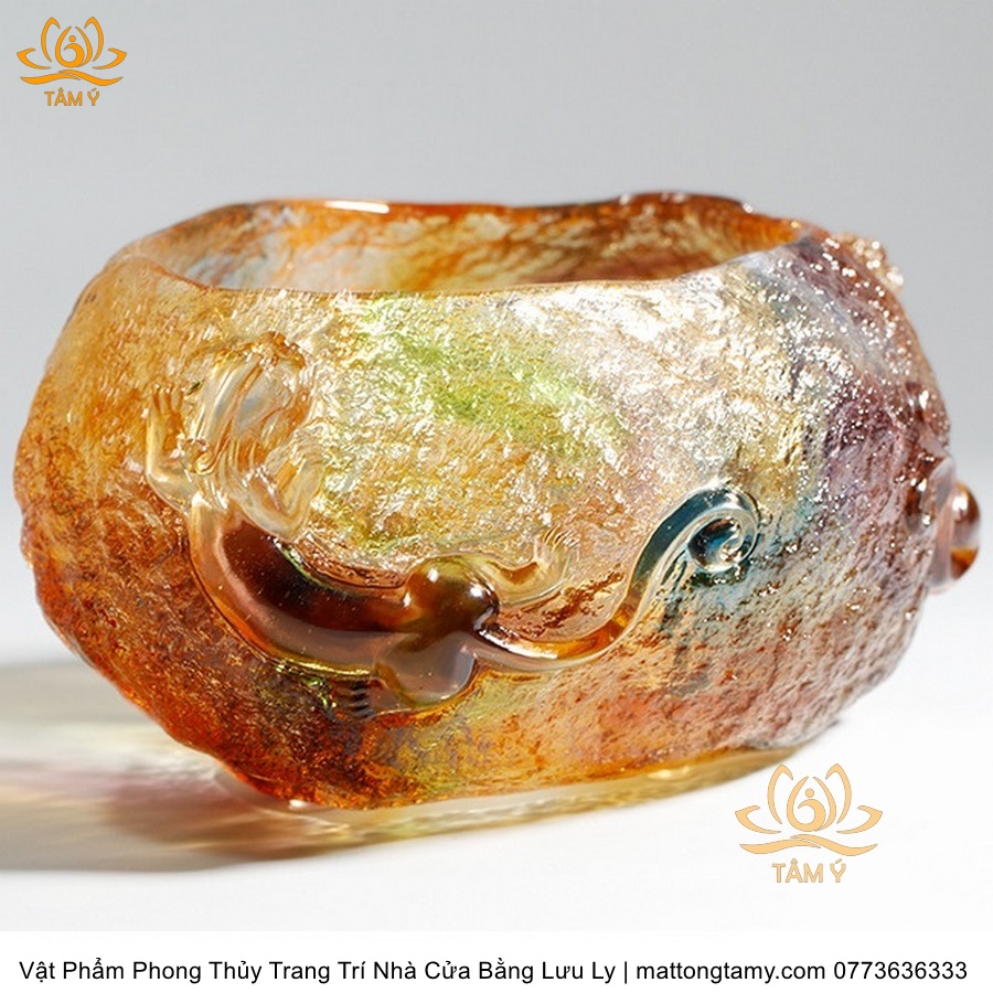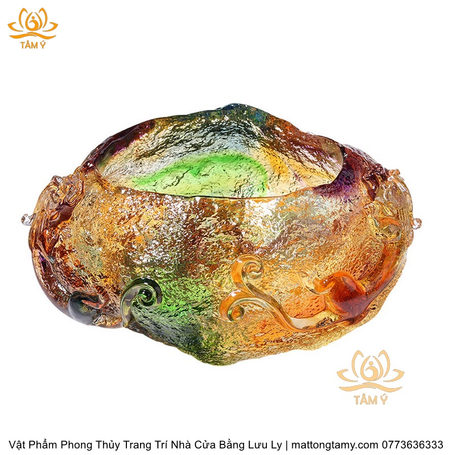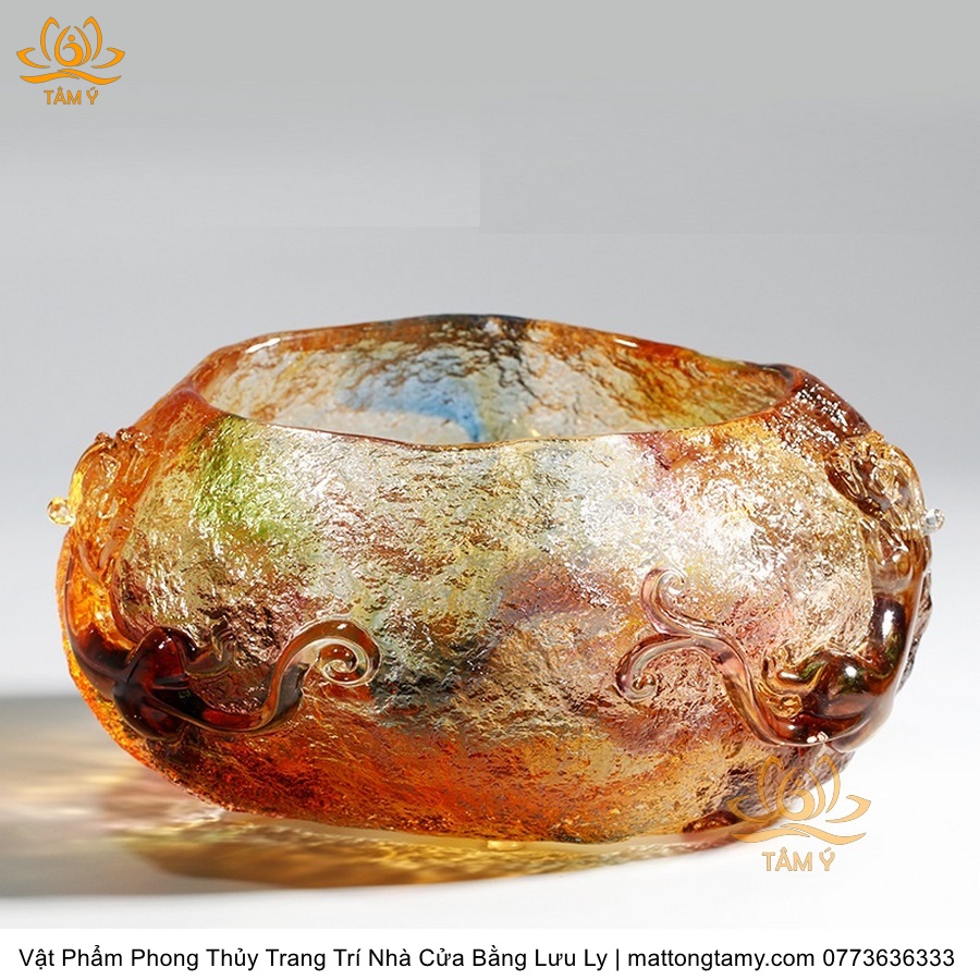 Chậu Phong Thủy Trang Trí Nhà Cửa Thiết Kế Họa Tiết Kiểu Đá Quý Bằng Lưu Ly Cao Cấp DTT35