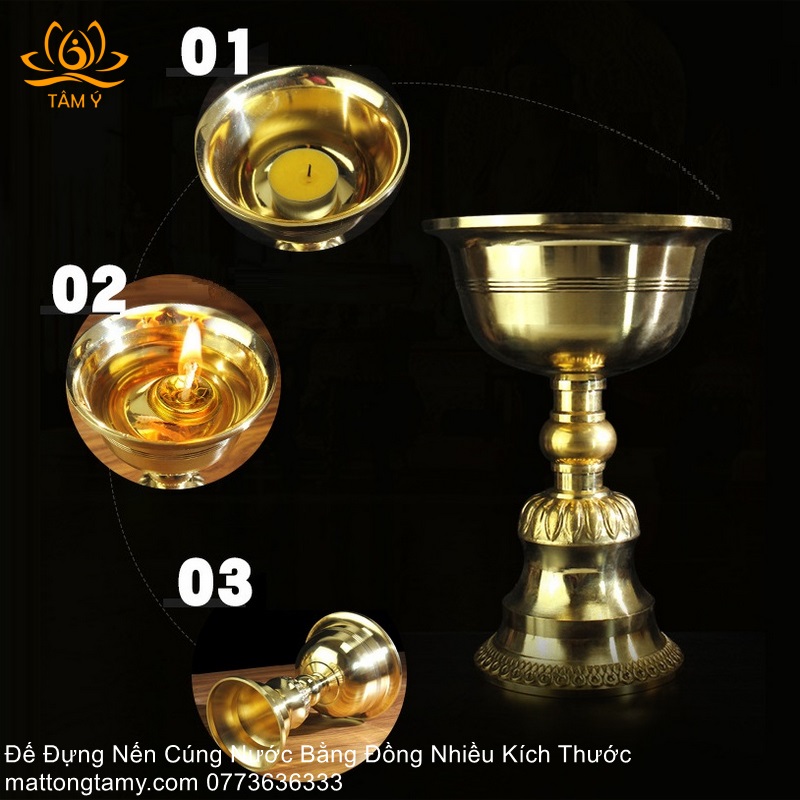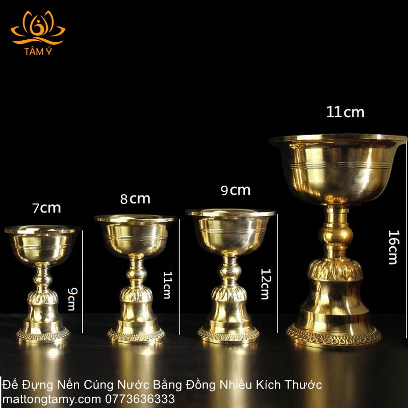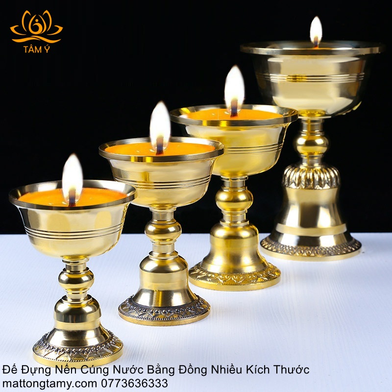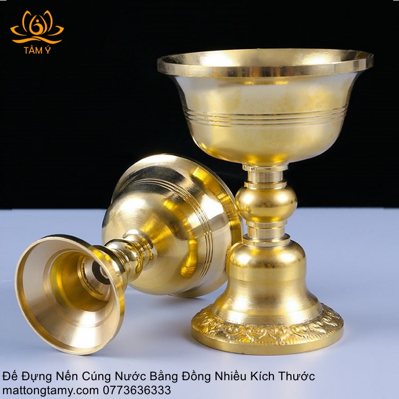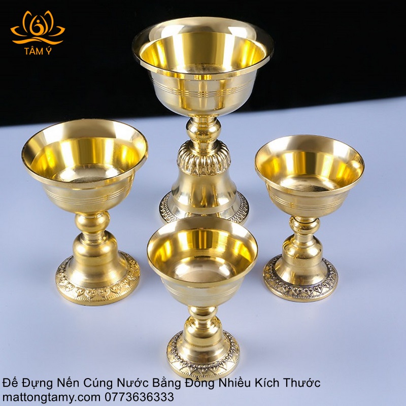 Chén Đựng Nến Và Nước Cúng Bằng Đồng, Họa Tiết Bắt Mắt, Nhiều Kích Thước