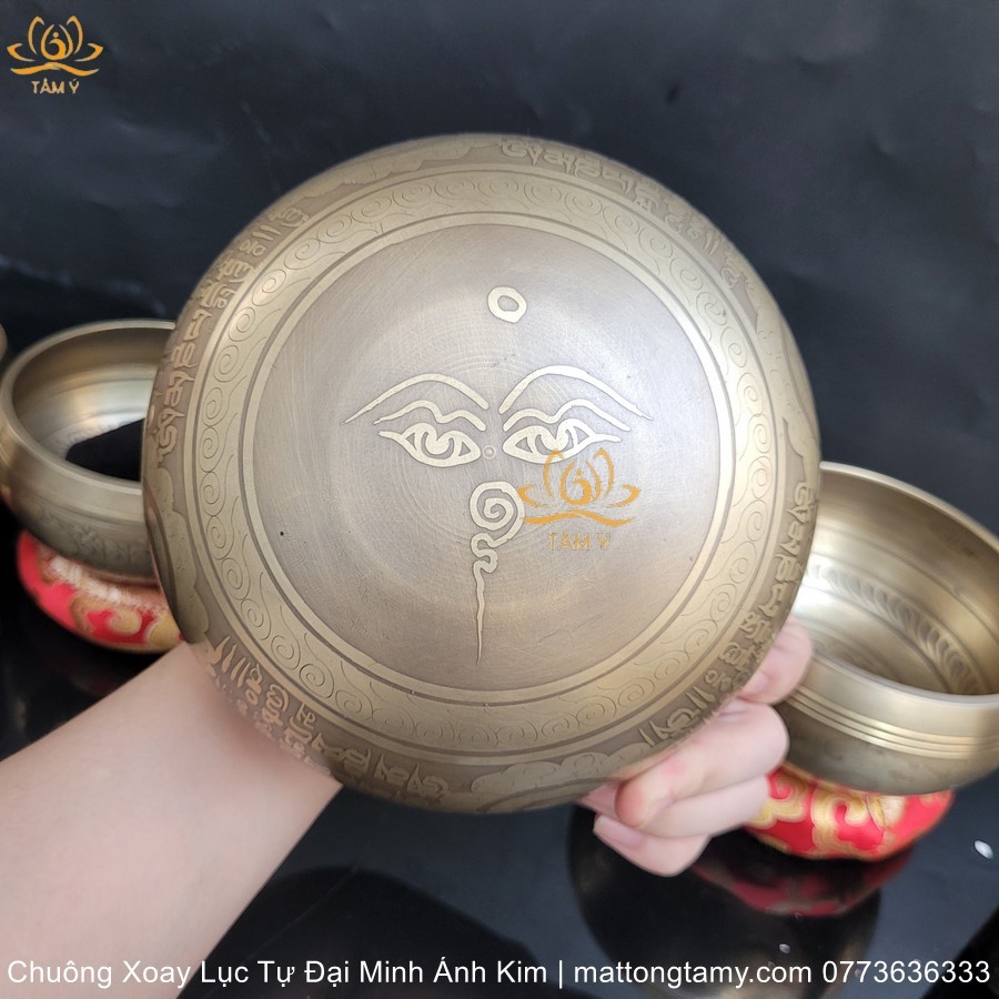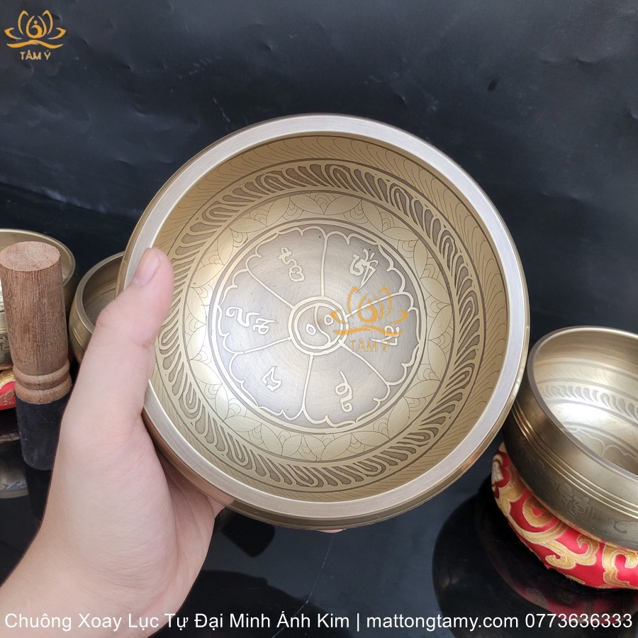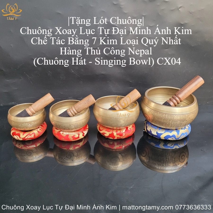|Tặng Lót Chuông| Chuông Xoay Lục Tự Đại Minh Bằng Đồng Hàng Thủ Công Nepal (Chuông Hát - Singing Bowl) CX04