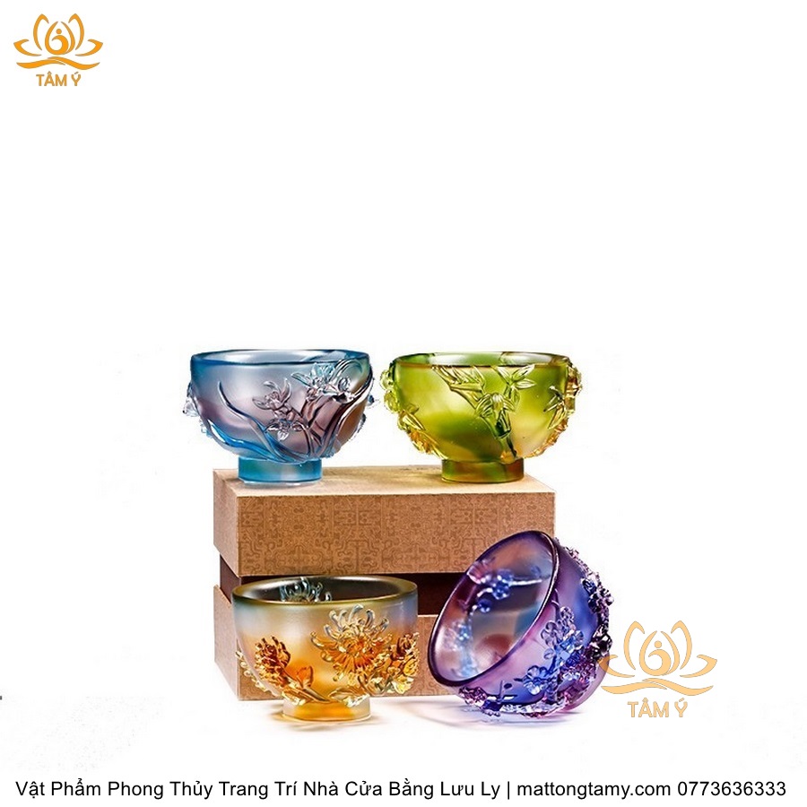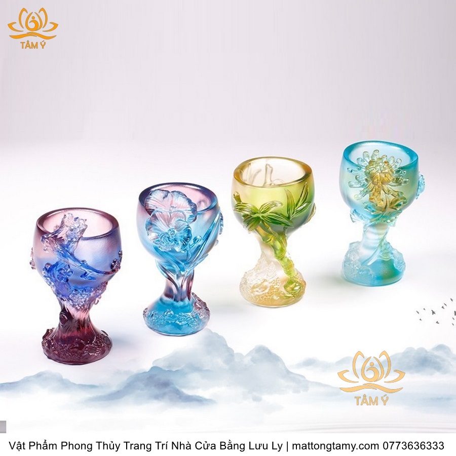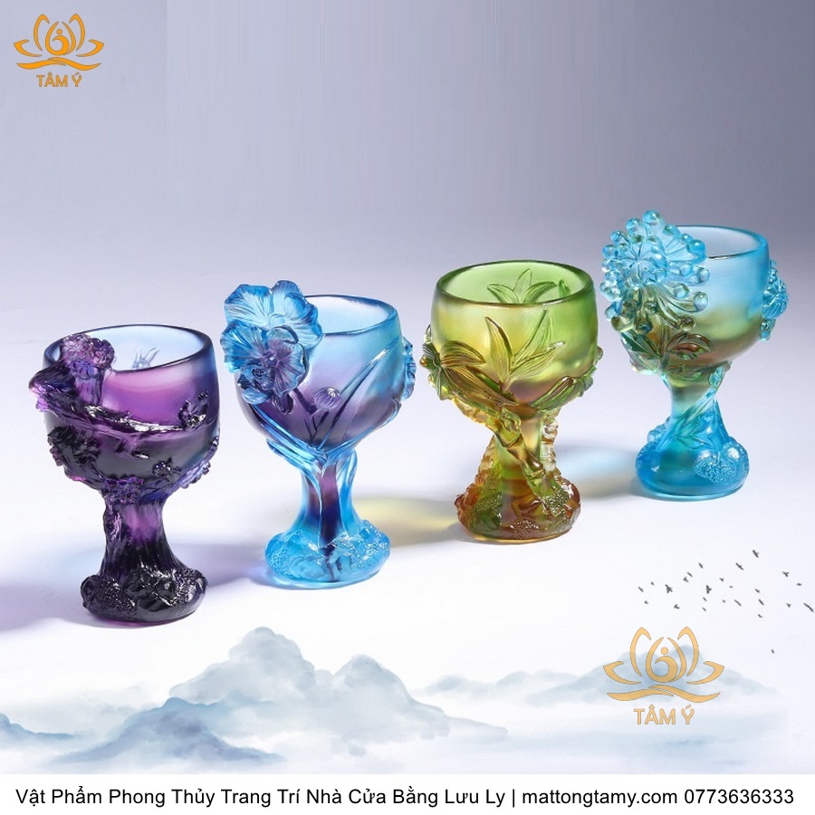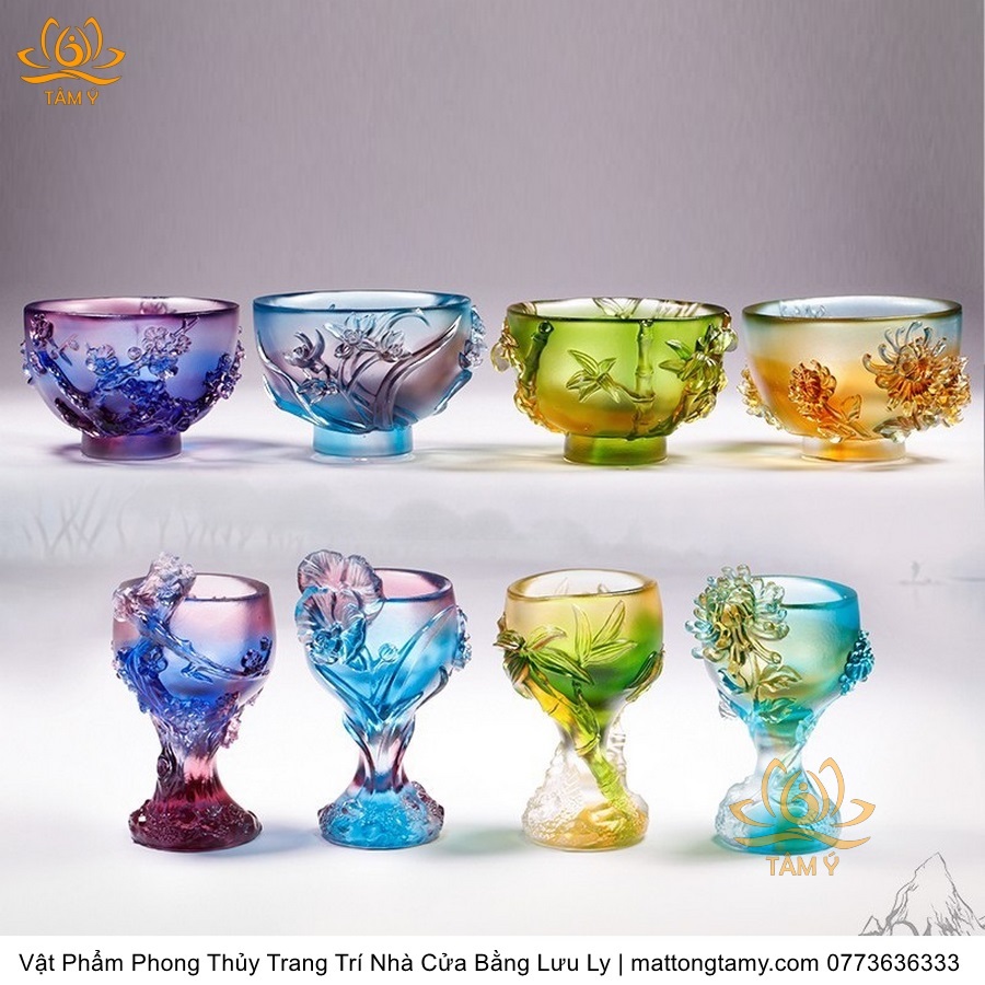 Cốc - Chén Uống Dạng Hiện Đại Bằng Lưu Ly Cao Cấp Vật Phẩm Phong Thủy Trang Trí Nhà Cửa DTT305
