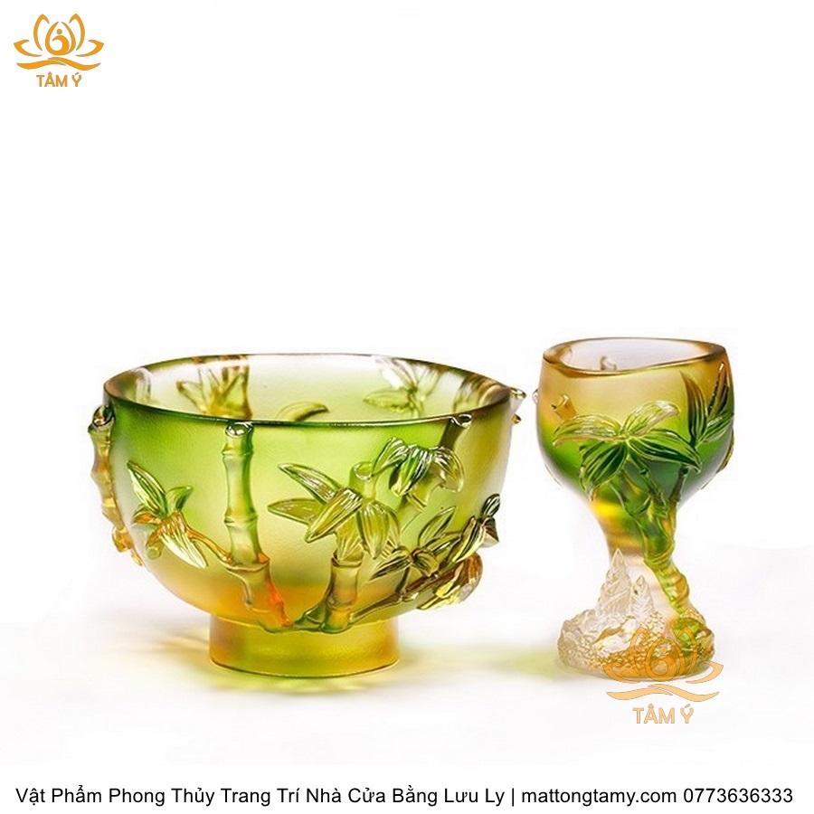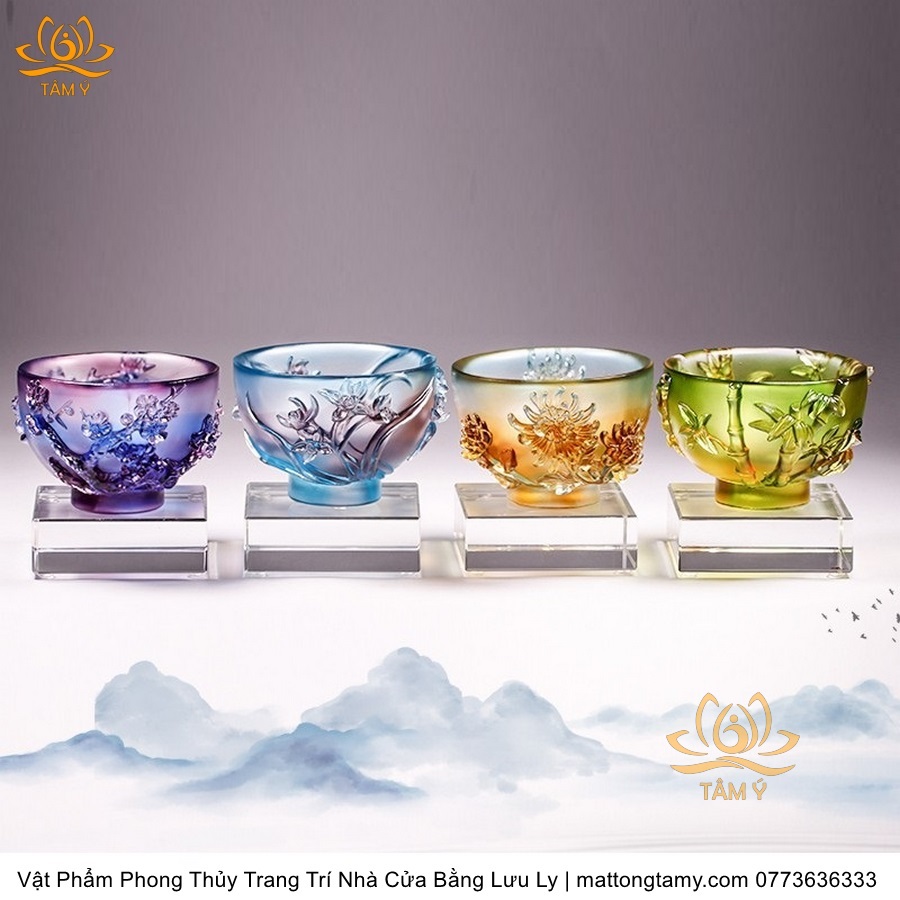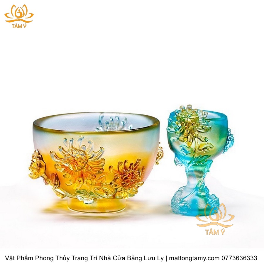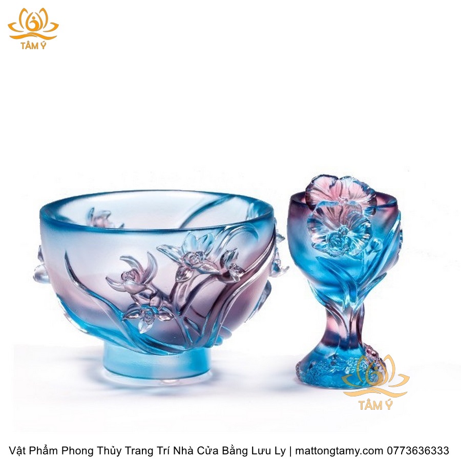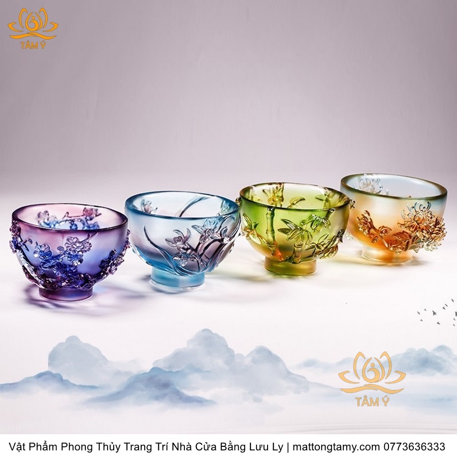 Cốc - Chén Uống Dạng Hiện Đại Bằng Lưu Ly Cao Cấp Vật Phẩm Phong Thủy Trang Trí Nhà Cửa DTT305