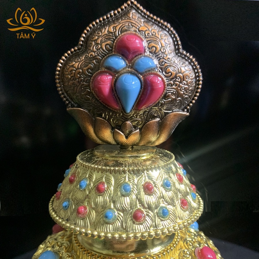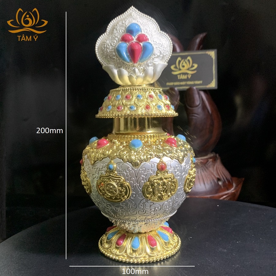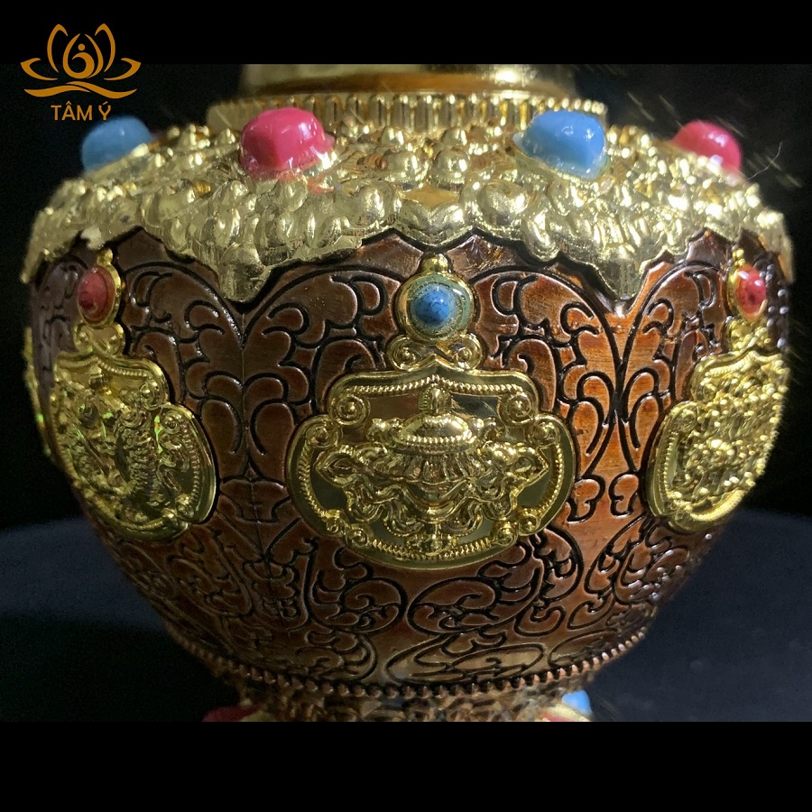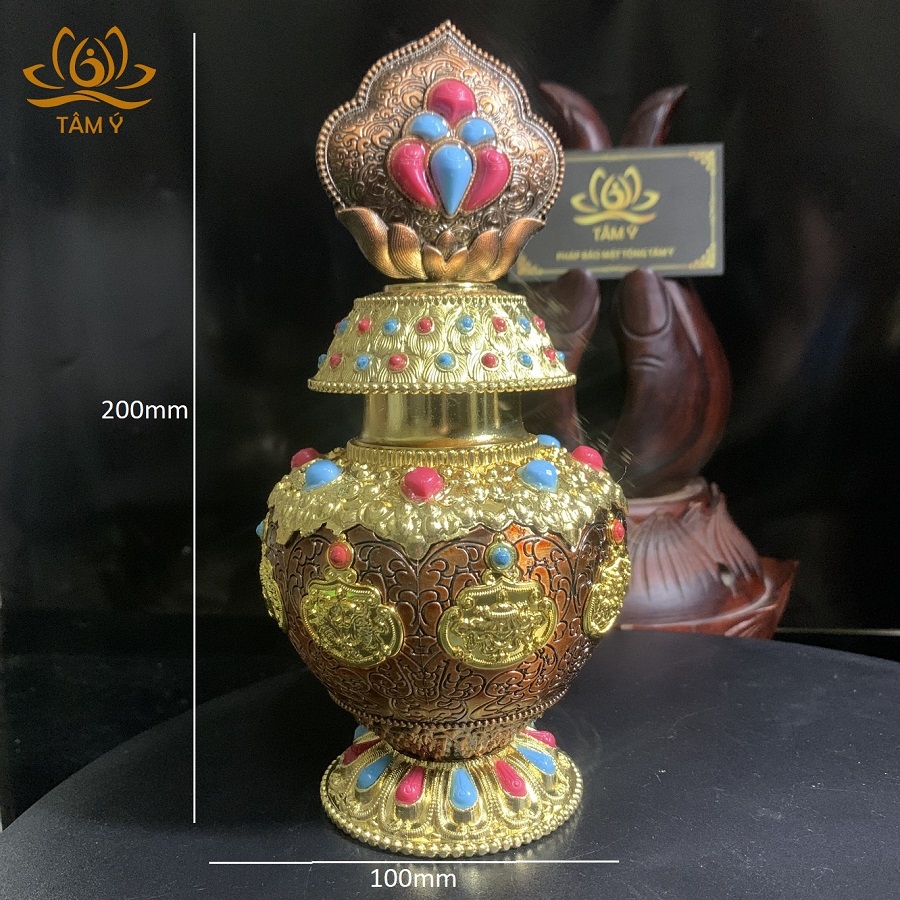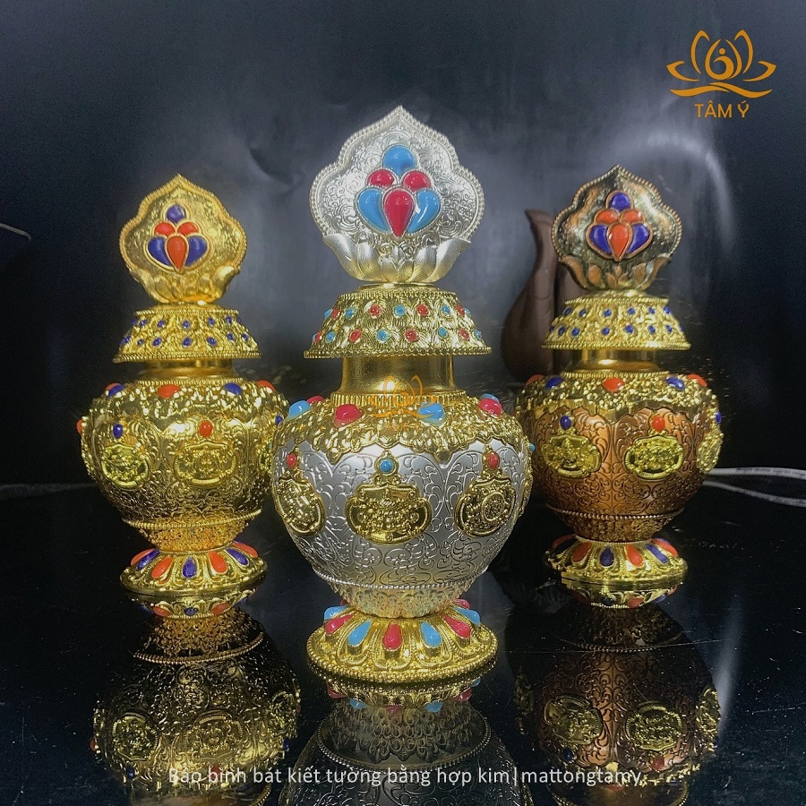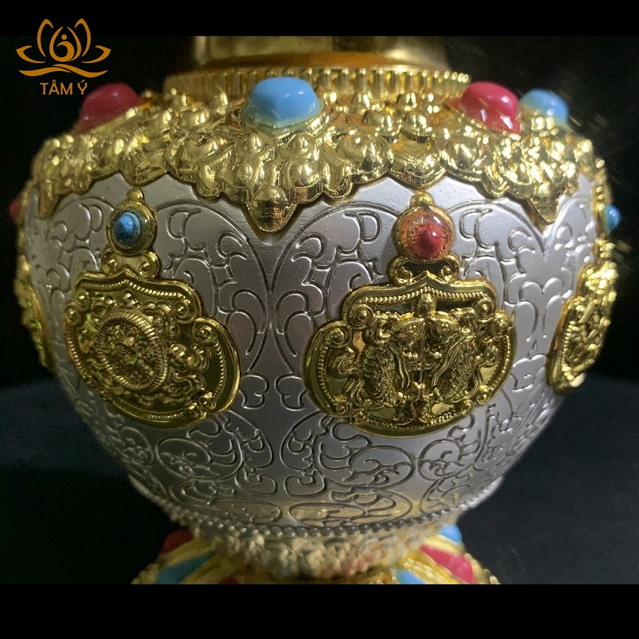 Bảo Bình Bát Kiết Tường Họa Tiết Tinh Xảo, Màu Sắc Rực Rỡ, Chất Liệu Hợp Kim, Pháp Bảo Kim Cang Thừa Mật Tông Tâm Ý