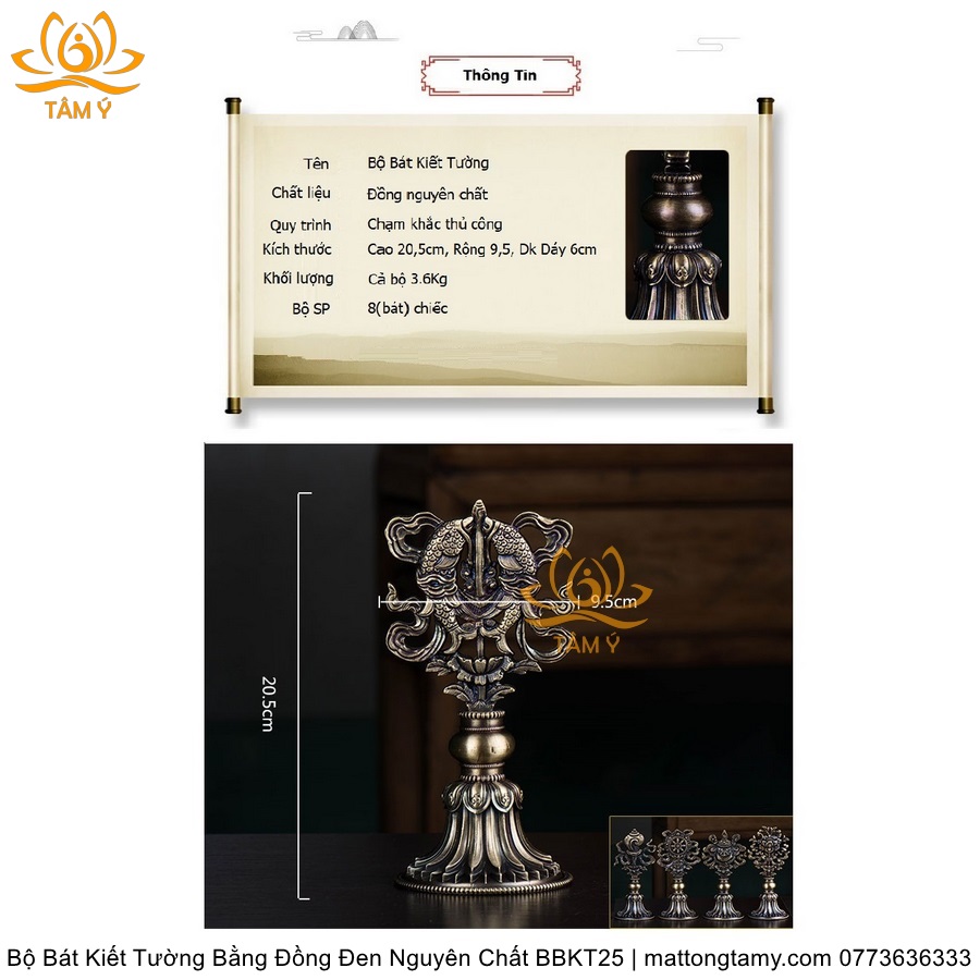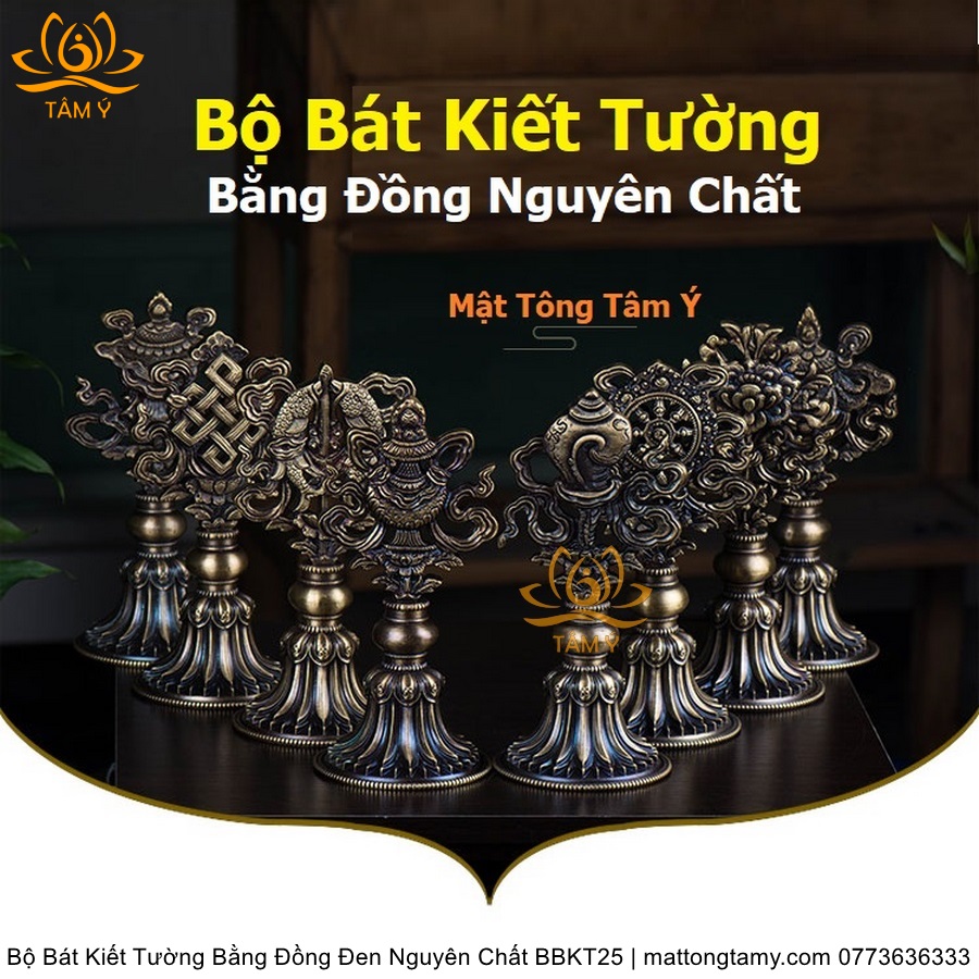Bộ Bát Kiết Tường (Bát Đại Cát Tường - Tám Tướng Cát Tường) Cao 20.5cm Bằng Đồng Đen Nguyên Chất, Hoàn Thiện Thủ Công BBKT25