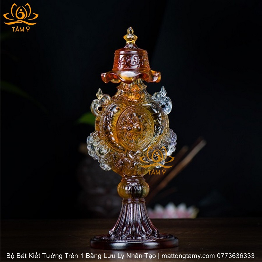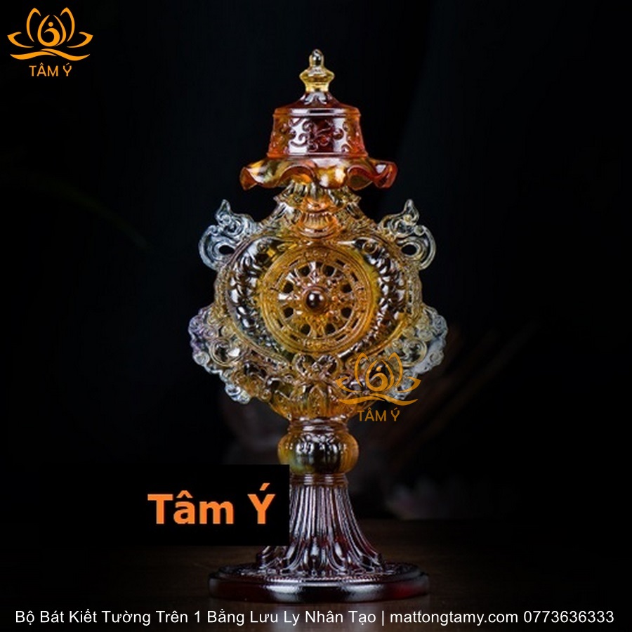 [Cao 23cm Và 17.5cm] Bộ Tổng Hợp Bát Kiết Tường 8 trên 1 (Bát Đại Cát Tường - Tám Tướng Cát Tường) Bằng Lưu Ly Cao Cấp B03