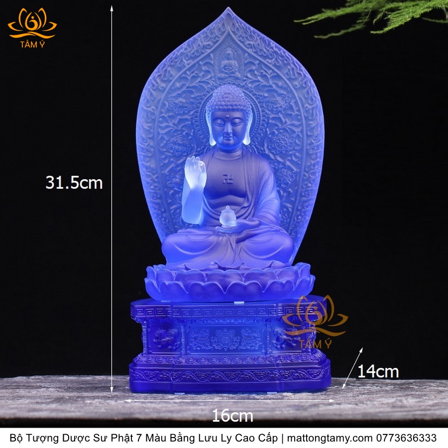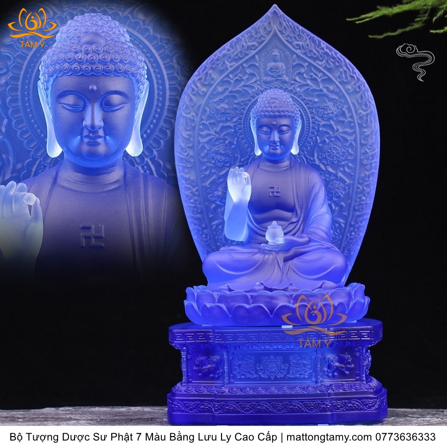 |Cao 23cm - Nhiều Màu| Tượng Dược Sư Phật Bằng Lưu Ly Cao Cấp Thiết Kế Sang Trọng TP124