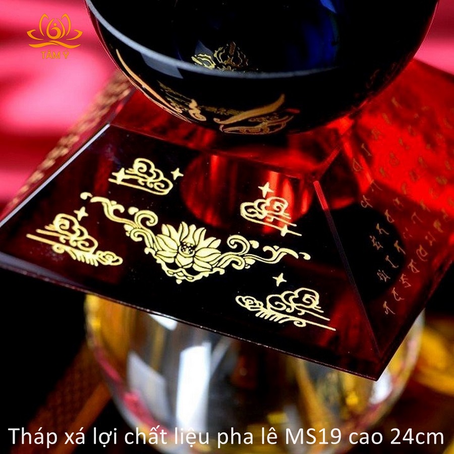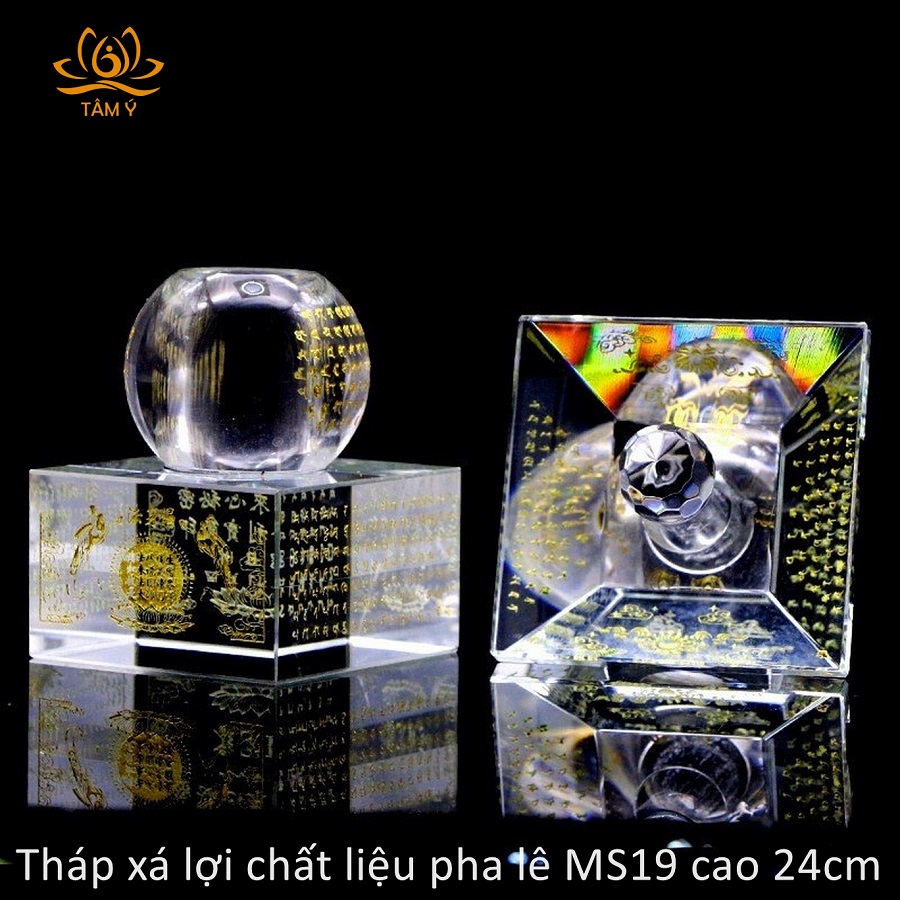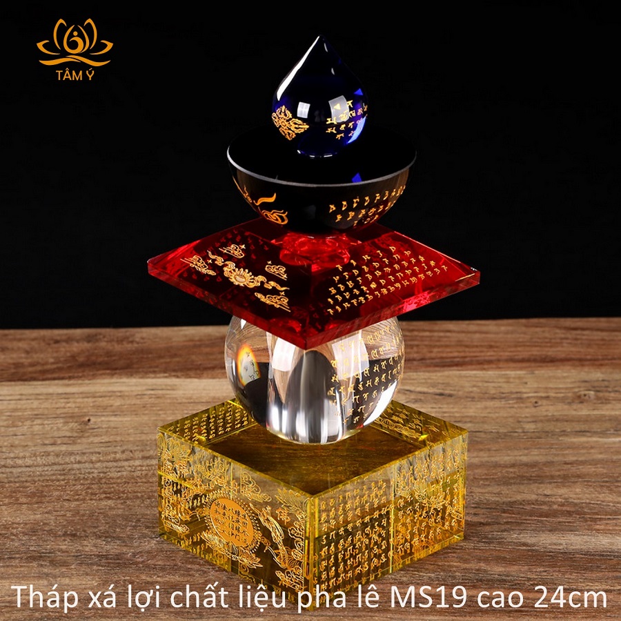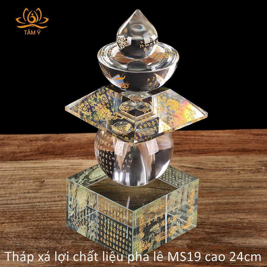 |Cao 24cm| Tháp xá lợi Bảo Khiếp Ấn Đà-la-ni chất liệu pha lê MS19 Kinh Nhất Thiết Như Lai Tâm Bí Mật Toàn Thân Xá Lợi